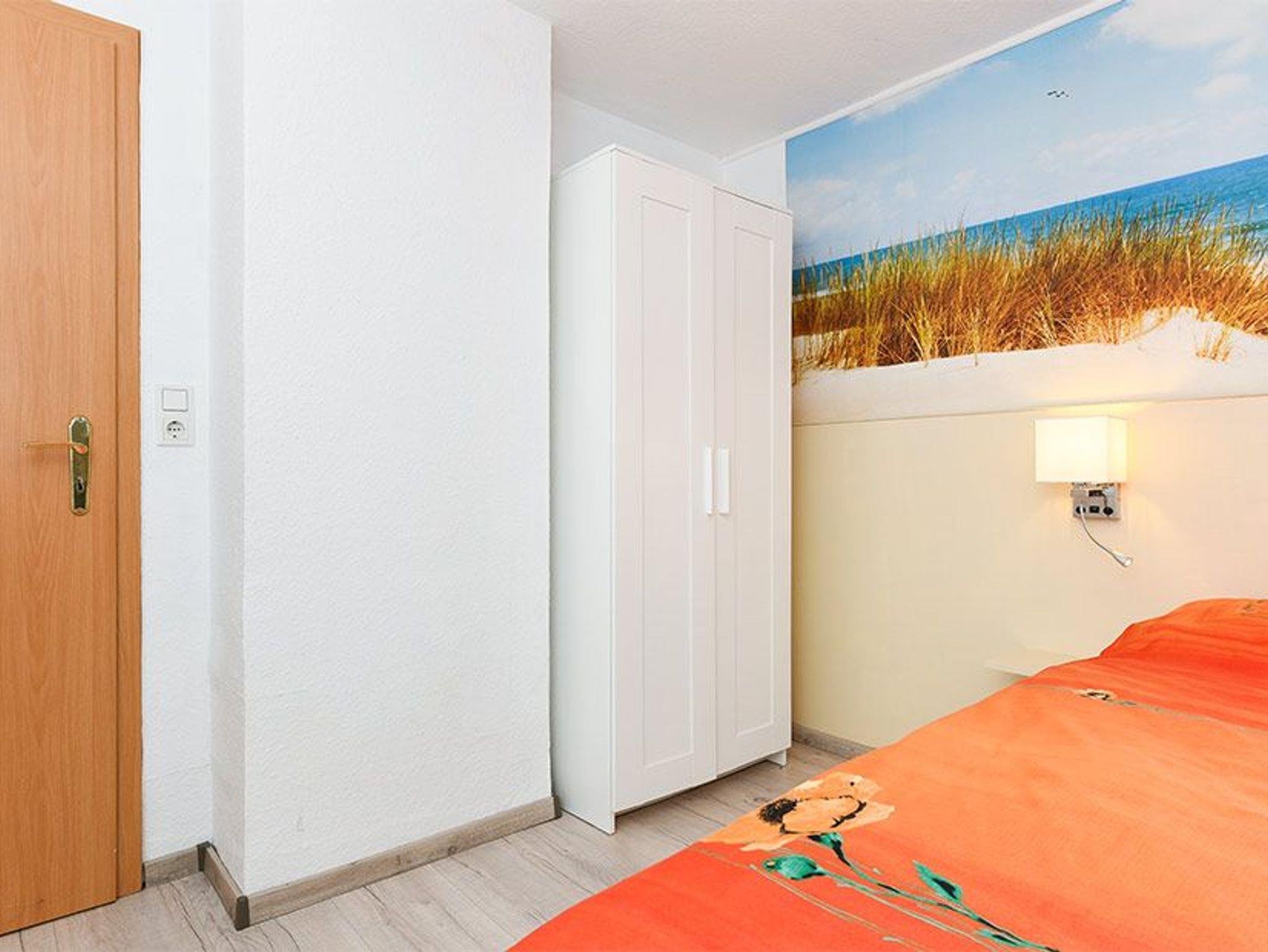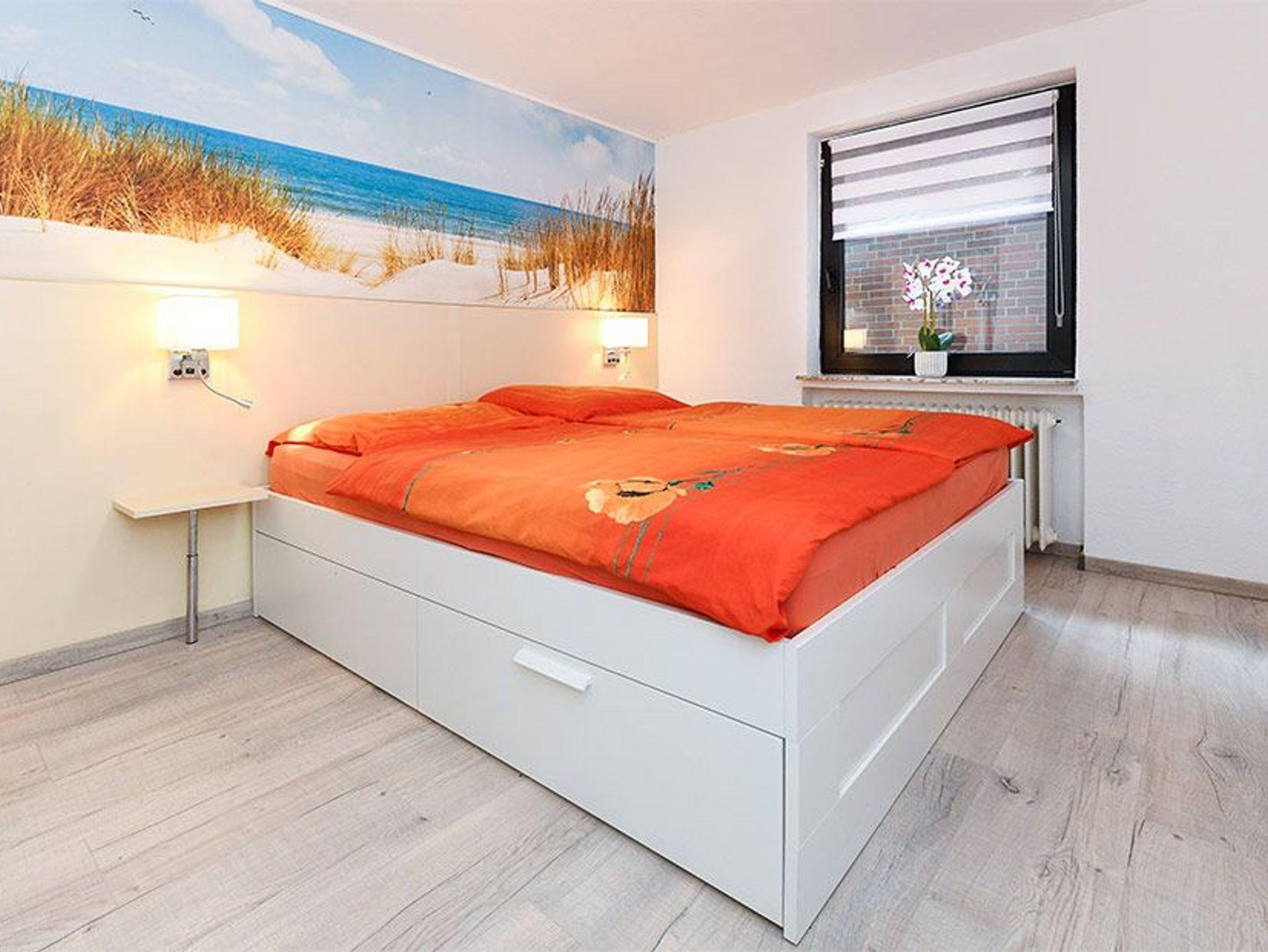 Das Bett im Schlafzimmer hat die Größe 160 (Breite) x 200 cm (Länge). Im Wohn- und Schlafraum befindet sich ein zusätzliches Schlafsofa.