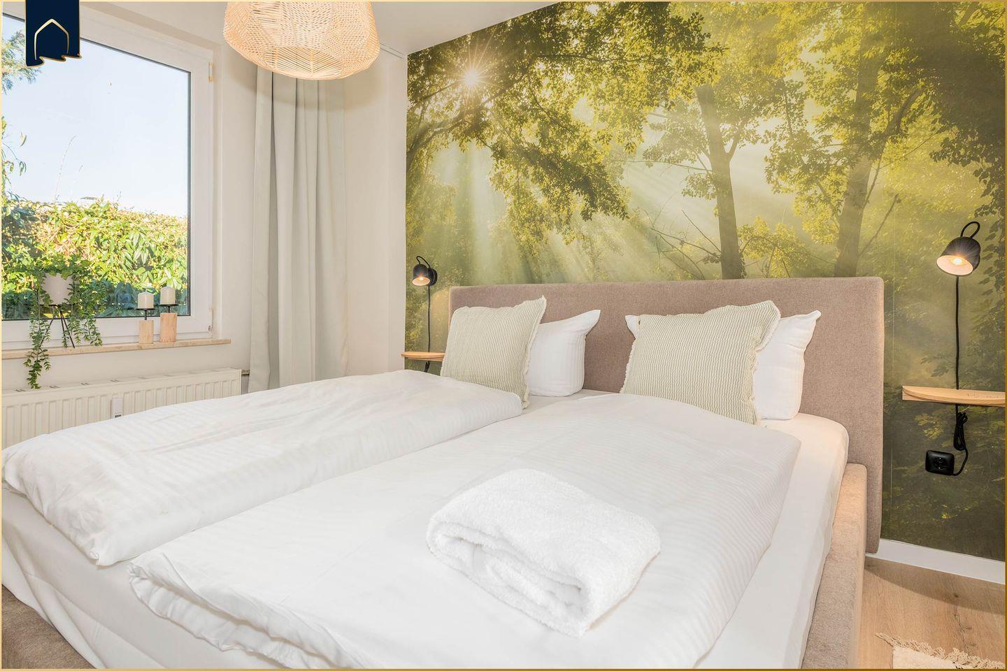 Die Wohnung verfügt über ein separates Schlafzimmer mit Schlafmöglichkeiten für bis zu 3 Personen, ein Badezimmer mit Dusche sowie eine voll ausgestattete Küche inkl. Kühlschrank, Gefrierfach, Herd, Mikrowelle, Toaster, Wasserkocher, Kaffeemaschine und Spülmaschine. Im hellen Wohnbereich finden Sie eine gemütliche Sofaecke mit TV und Esstisch. Ein weiteres Highlight ist die überdachte Terrasse mit Gartenmöbeln und Grillplatz – ideal für ein Frühstück im Freien oder entspannte Abende im Sonnenuntergang. WLAN, Ganzkörperspiegel, Haartrockner und Fliegengitter sorgen für zusätzlichen Komfort.