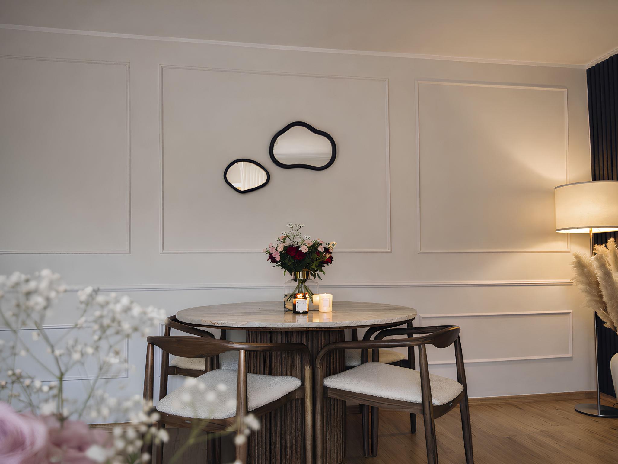 "Am Obersalzberg", 2-Zimmer-Wohnung 70 m2 im 1. Stock. Luxuriös und stilvoll eingerichtet: Wohn-/Esszimmer mit Esstisch und Digital-TV. Ausgang zum Balkon. 1 Zimmer mit 1 Doppelbett (180 cm, Länge 200 cm), Digital-TV. Küche (Backofen, Geschirrspüler, 4 Glaskeramikplatten, Toaster, Wasserkocher, Mikrowelle, elektrische Kaffeemaschine) mit kleinem Esstisch. Dusche/WC. Heizung. Balkon. Balkonmöbel. Sehr schöne Panoramasicht auf die Berge. Zur Verfügung: Waschmaschine. Internet (WLAN, gratis). Parkplatz (1 Auto) beim Haus. Bitte beachten: Nichtraucher-Unterkunft. Rauchmelder, Feuerlöscher. Internet Smart-TV.
