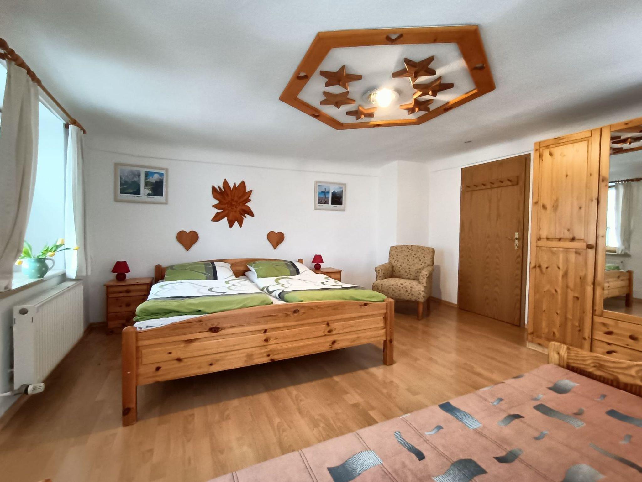 Unsere Ferienwohnung Oberweinfeld 4 verfügt über ein Wohnzimmer und zwei separate Schlafzimmer. Das kleinere Schlafzimmer ist mit zwei Einzelbetten ausgestattet. Das große Schlafzimmer ist mit einem gemütlichen Doppelbett eingerichtet. Im großen Wohnzimmer finden Sie eine Sitzecke und SAT-Fernsehen. Die Küche verfügt über eine voll ausgestattete Küchenzeile (Vier-Platten-Herd mit Backofen, Kühlschrank mit Gefrierfach, Kaffeemaschine, Wasserkocher) und einen Essplatz. Ein Bad mit Dusche und Toilette ist den Zimmern direkt angeschlossen. Den Blick auf die umliegenden Berge können Sie vom Balkon genießen.