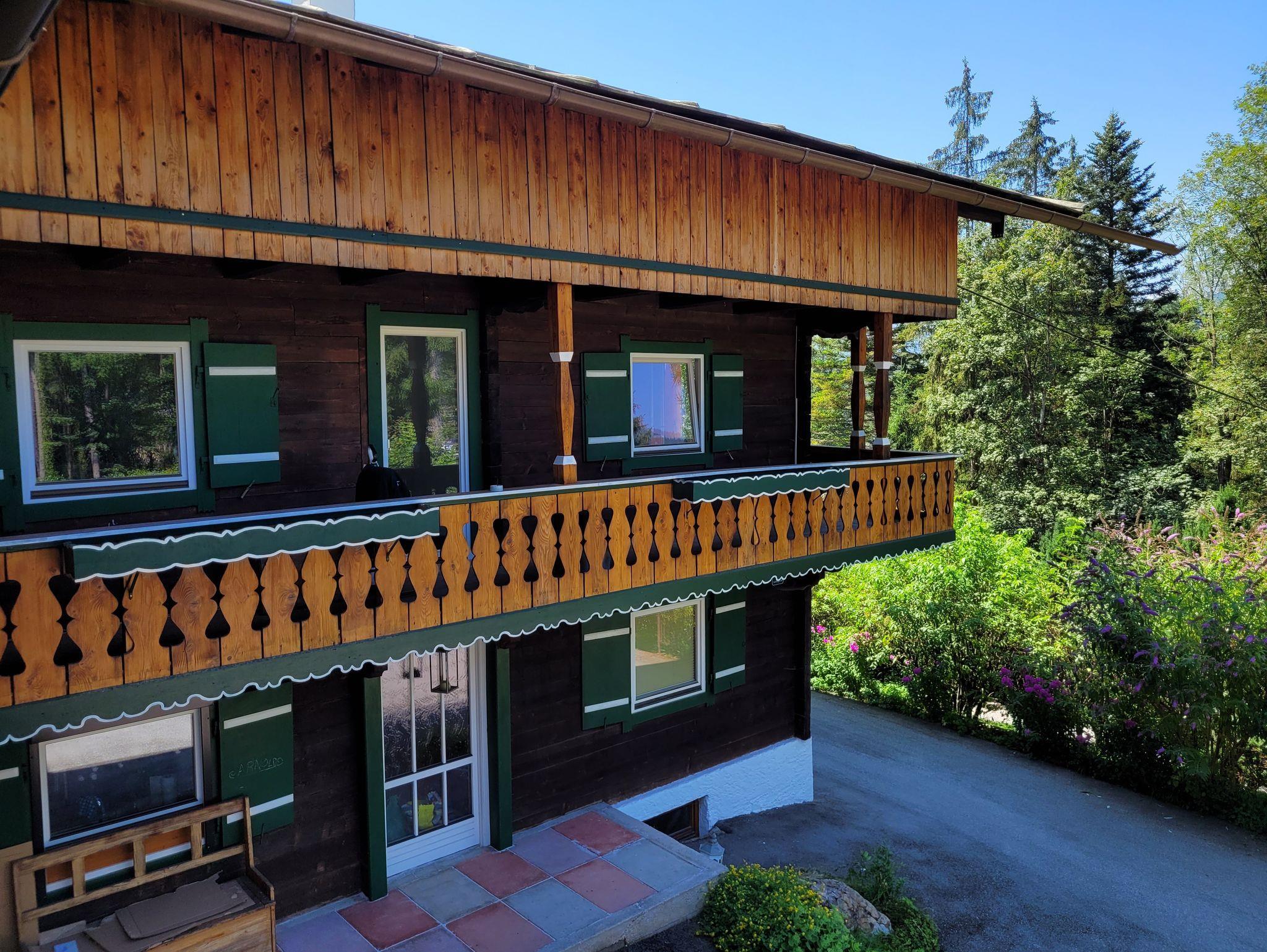 Der Balkon mit Bergblick ist von der Küche aus zugänglich und bietet einen herrlichen Ausblick auf die umliegende Natur.