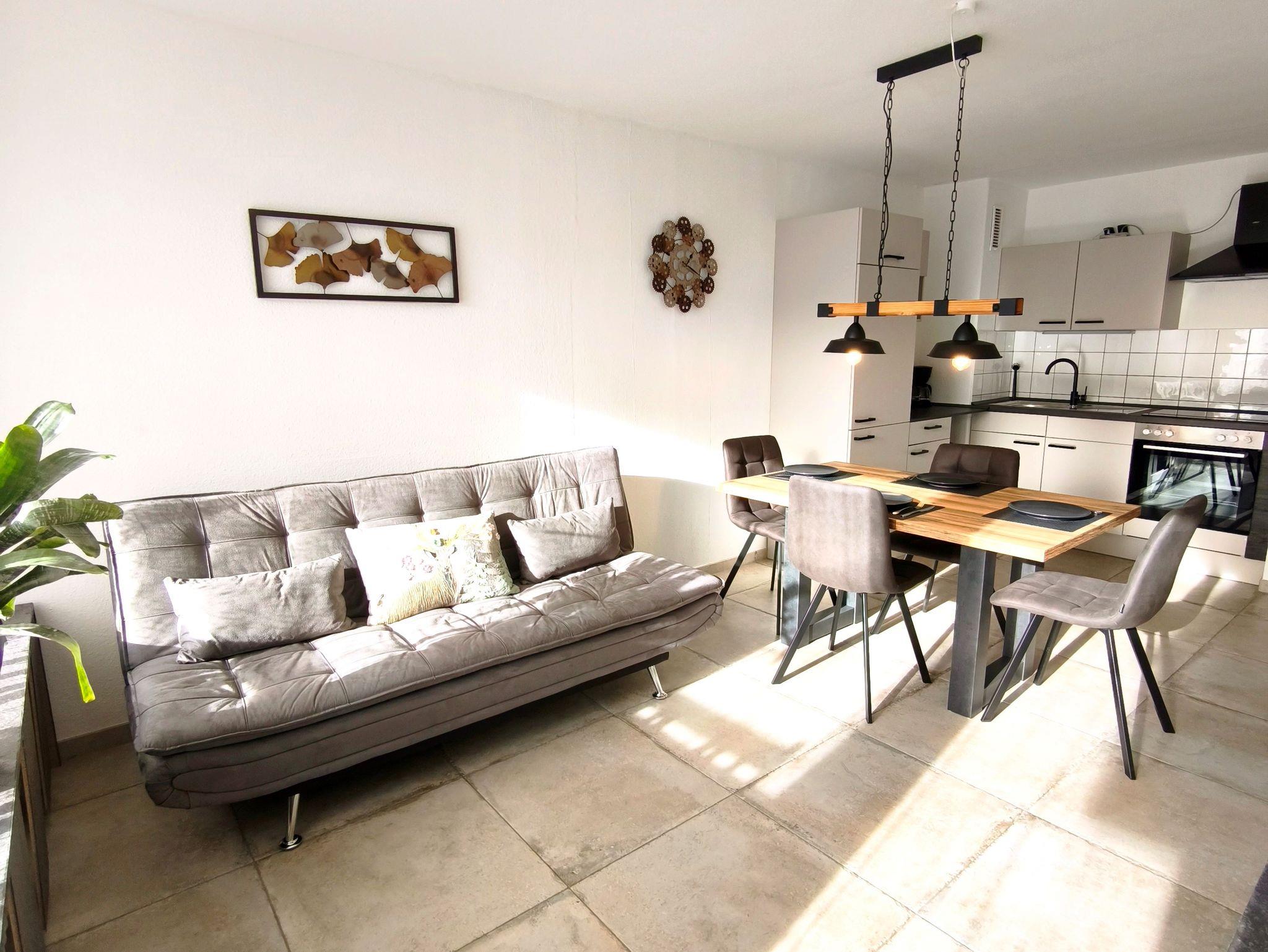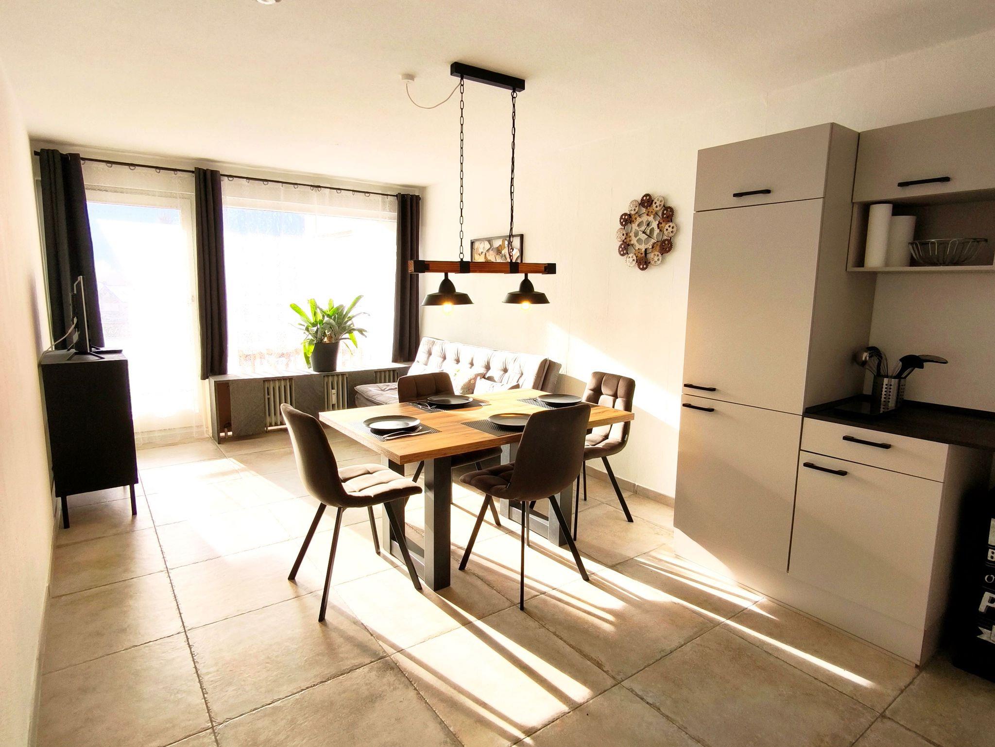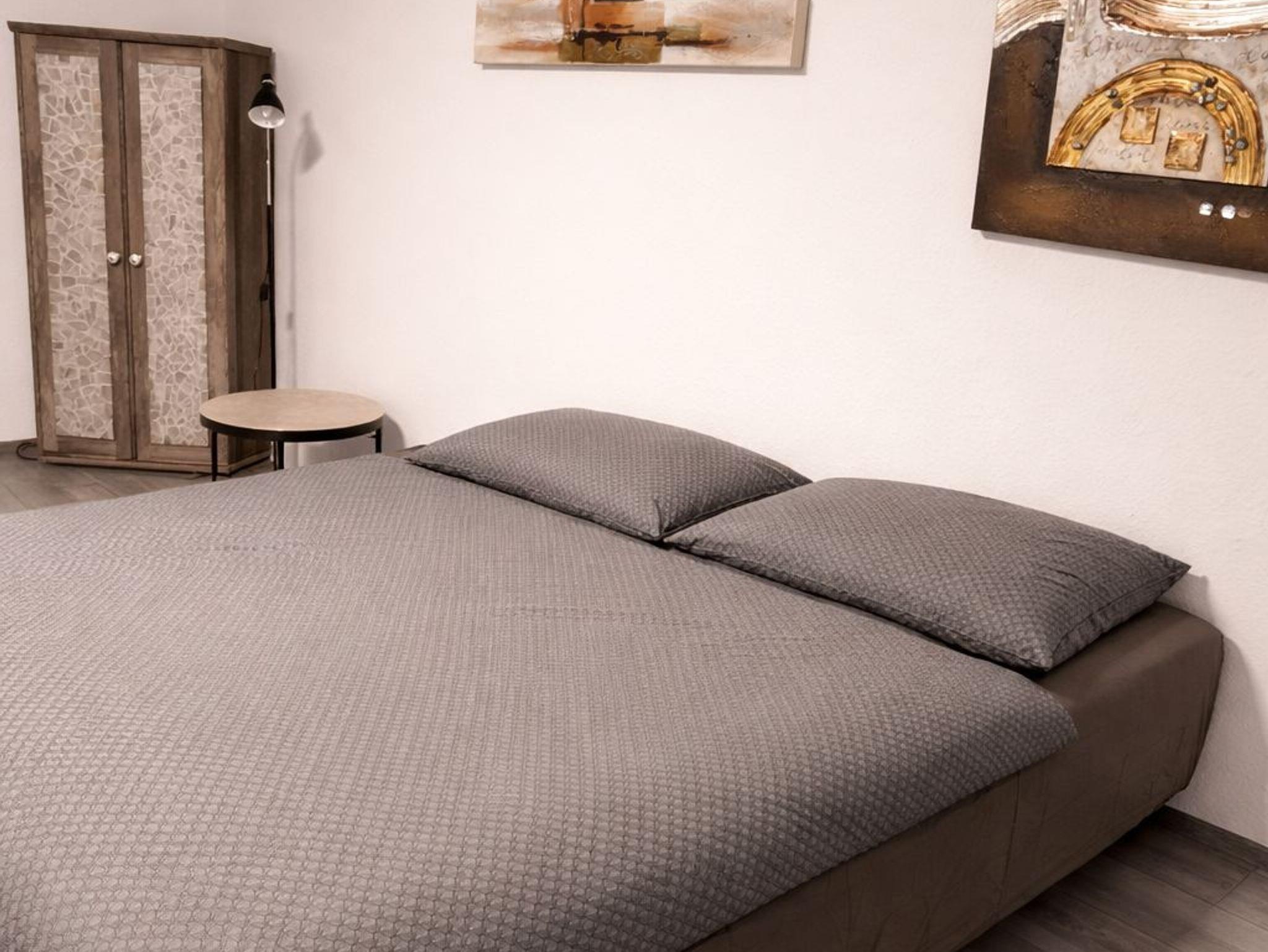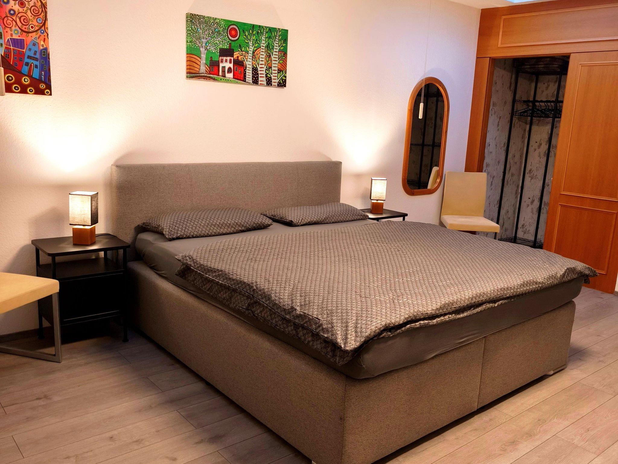 Außerdem bietet die Küche Geschirr und Besteck (für 6 Personen), Töpfe und Pfannen, Filterkaffeemaschine, Wasserkocher und Toaster. Neben dem Eingangsflur gelangt man zum Bad inkl. Badwanne. Ein Föhn ist ebenfalls im Bad, sowie Ablageflächen. Ein separates WC mit Waschbecken ist direkt nebenan. Das großzügige Schlafzimmer ist ausgestattet mit einem Boxspringbett, einer Schlafcouch und einem begehbaren Kleiderschrank. Ein Baby- bzw. Kleinkinderbett ist ebenfalls vorhanden. Einen Kinderhochstuhl stellen wir Ihnen auf Wunsch ebenfalls zur Verfügung.