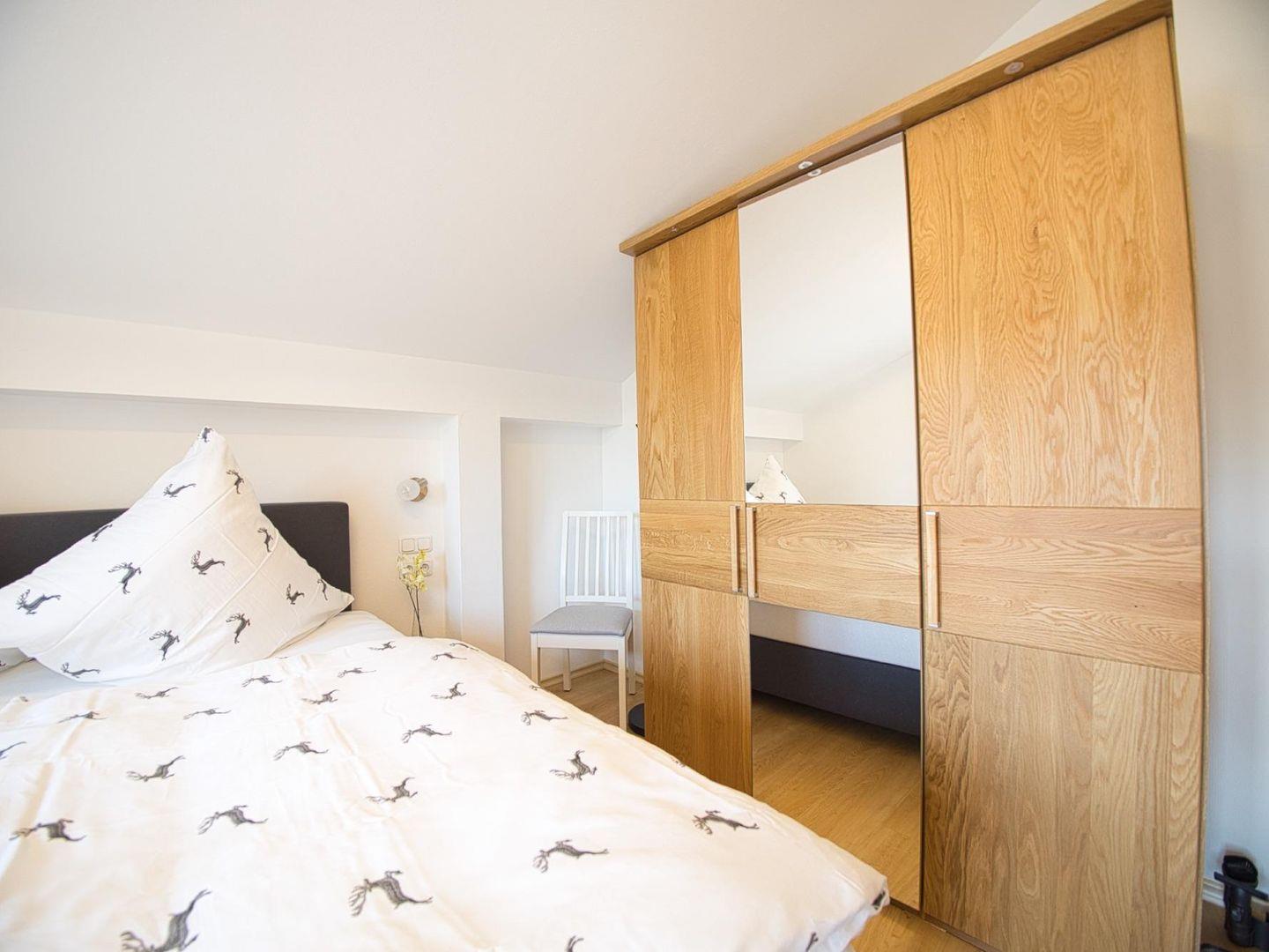 Auf 45 m² Wohnfläche bietet die hochwertig ausgestattete Ferienwohnung alles, was man für einen unkomplizierten Aufenthalt braucht. Das helle Schlafzimmer mit Doppelbett öffnet sich zu einem Balkon mit Blick auf die umliegende Bergwelt – ein schöner Start in den Tag. Der Wohnbereich mit gemütlichem Schlafsofa verfügt über einen zweiten Balkon, der zusätzlichen Raum im Freien schafft.