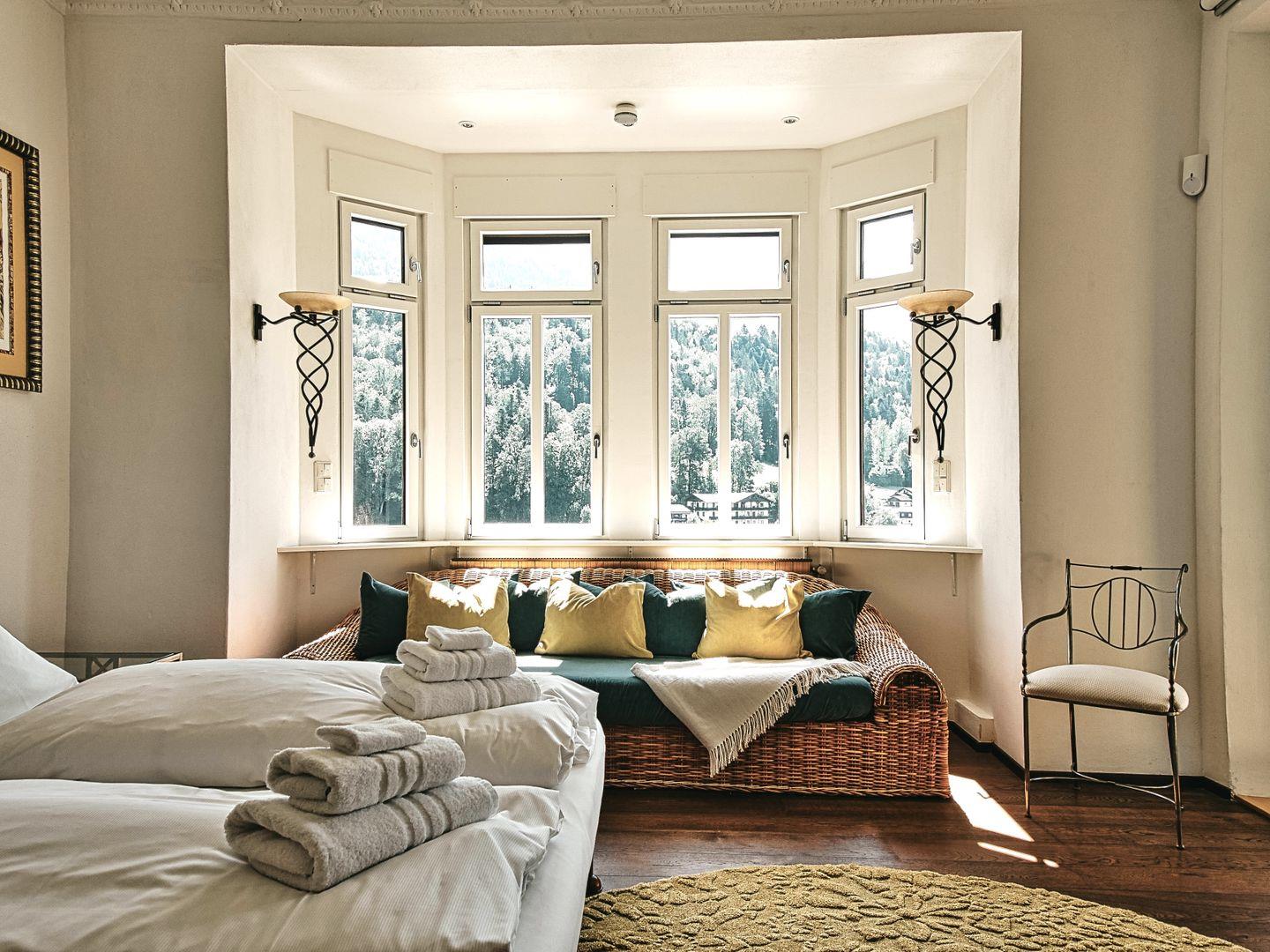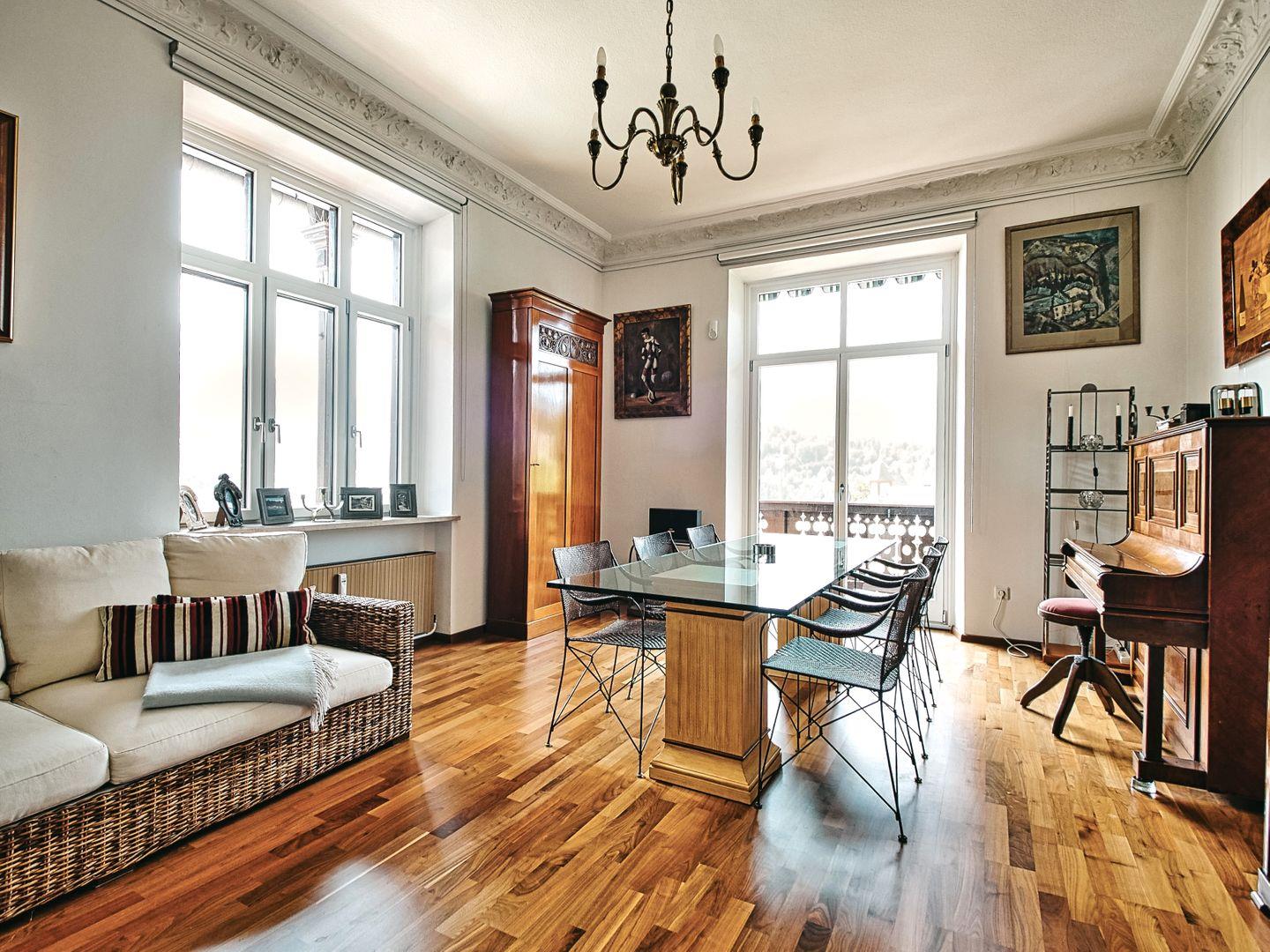 110 m² Bel Étage in einer alpinen Jugendstilvilla von 1899, ruhig erhöht im historischen Hotel- und Villenquartier von Berchtesgaden, geprägt vom königlich-bayerischen Umfeld jener Zeit. Eine Ferienwohnung für Paare, die Raum, Ruhe und Panorama schätzen, dank zweier stilvoller Schlafzimmer aber auch entspannt zu viert. Salzburg, Königssee und Nationalpark sind schnell erreichbar.