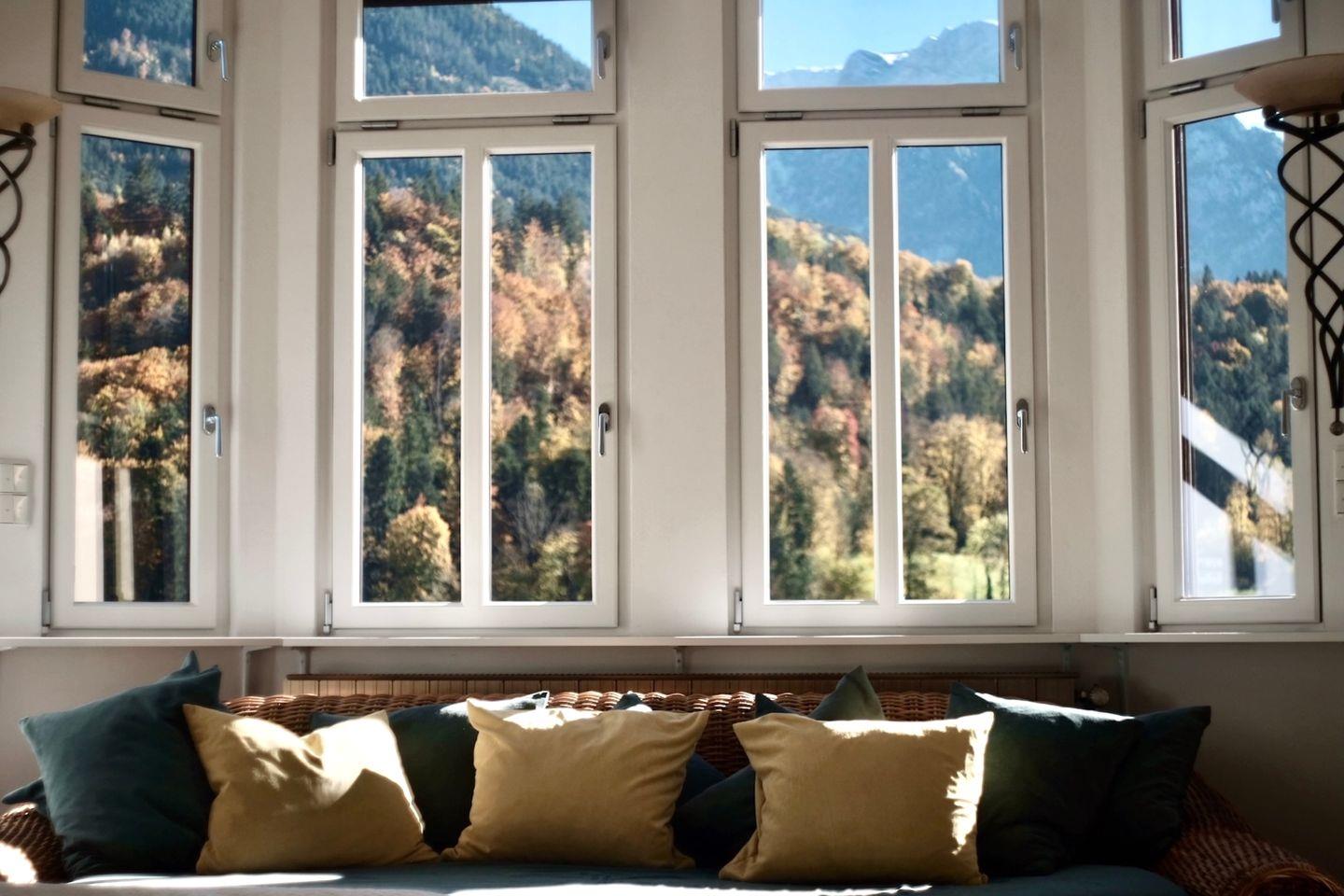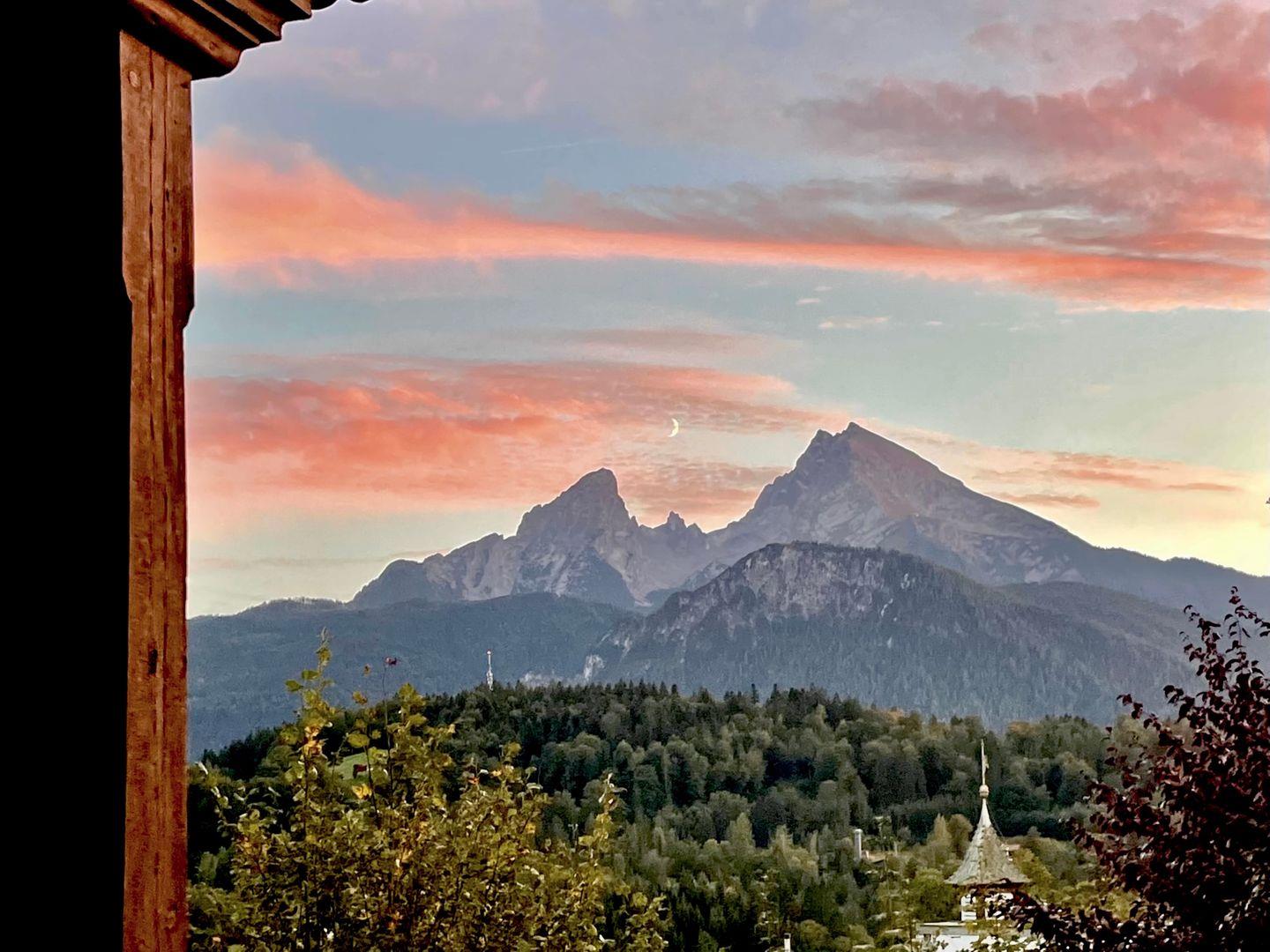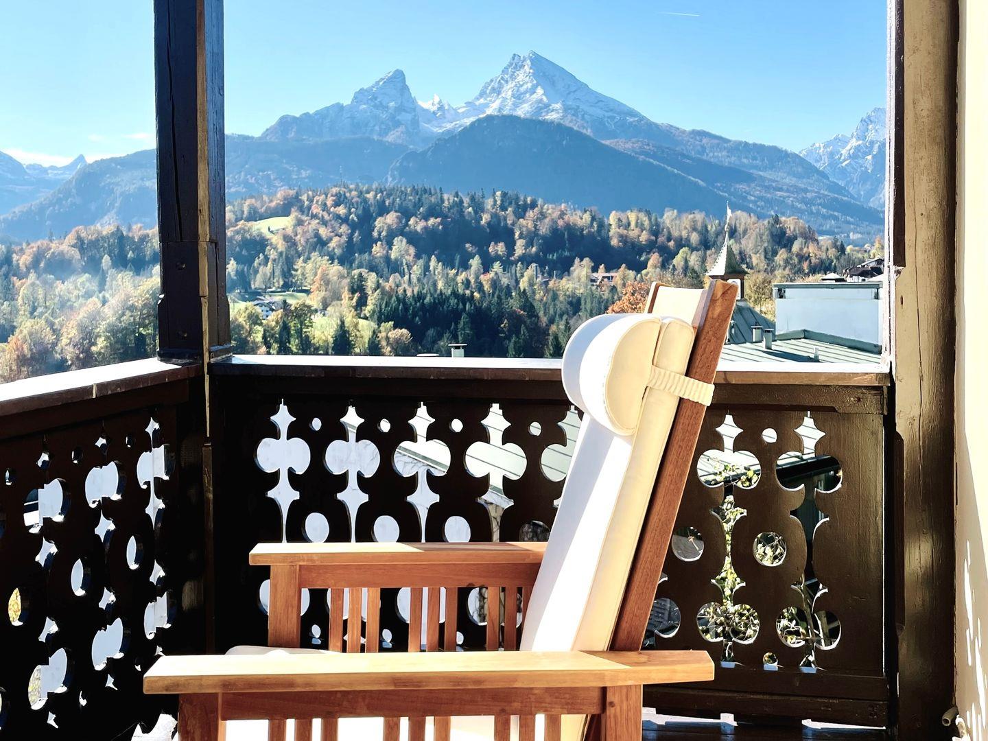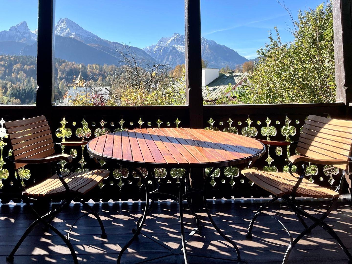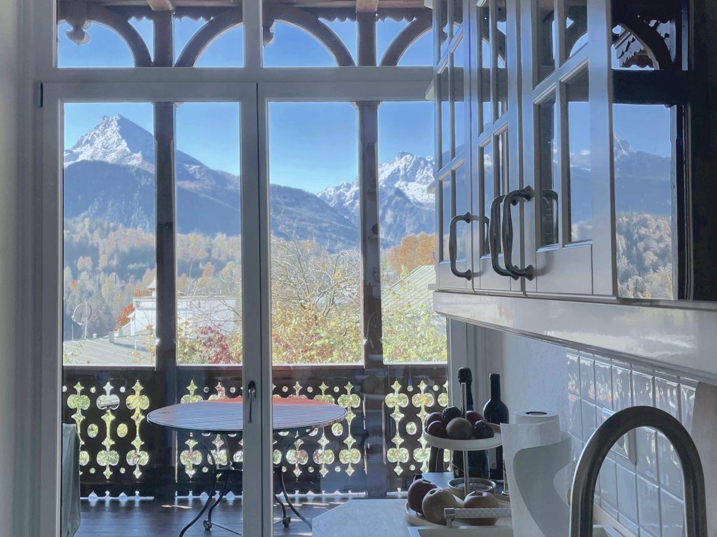 Logenblick auf die Berchtesgadener Berge mit dem Watzmann als Hauptdarsteller: 110 m² lichtdurchflutete Bel Étage in einer Jugendstilvilla von 1899, erhöht und ruhig mitten im Ort. Vor hohen Fenstern, auf der Veranda, in der Loggia und im Erker finden Sie Lieblingsplätze mit Ausblick von Sonnenaufgang bis Sonnenuntergang. Elegant modernisiert, großzügig und im feinen Boutique-Stil. Aufzug und Parkplatz an der Villa. Ideal für Paare, wunderbar zu viert. BelleVue.