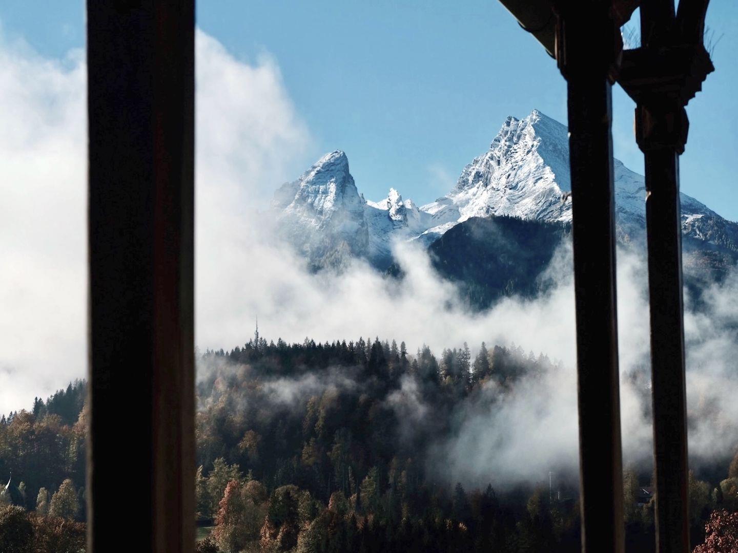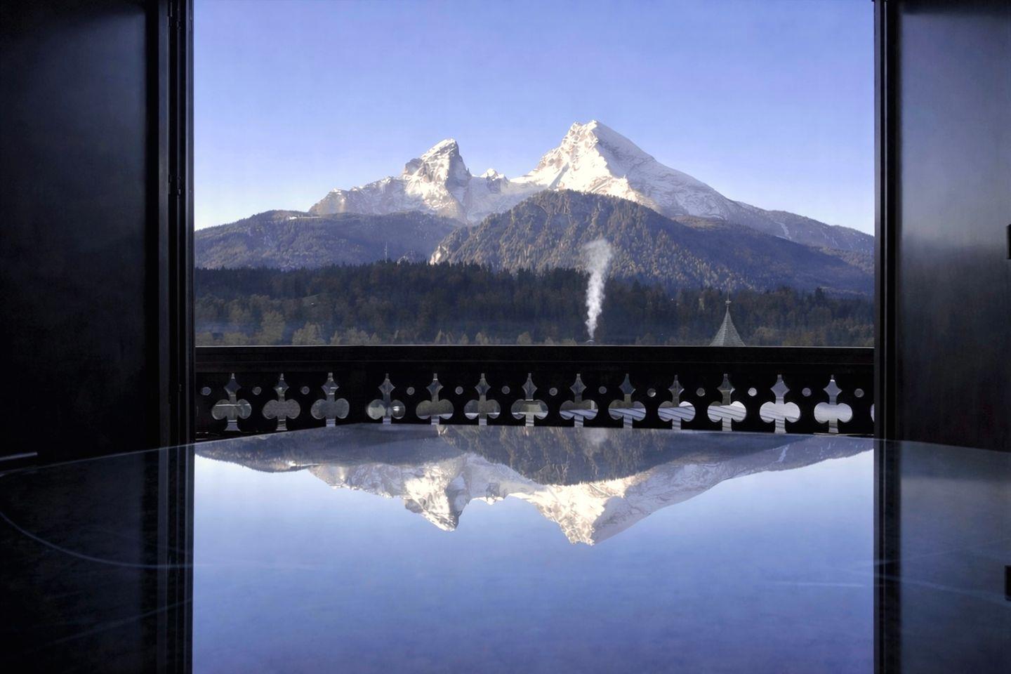 Ein Zimmer mit Aussicht, nur großzügiger: Der helle Wohnbereich öffnet sich mit übergroßen Fensterfronten zur Berchtesgadener Bergwelt, mit König Watzmann im Zentrum. Am großen Glastisch im Salon spiegelt sich das Panorama; wie von einem Logenplatz aus liegt es direkt vor Ihnen. Überdachte Veranda, Loggia, Balkon und Erker schaffen Lieblingsplätze mit Ausblick von Sonnenaufgang bis Sonnenuntergang.