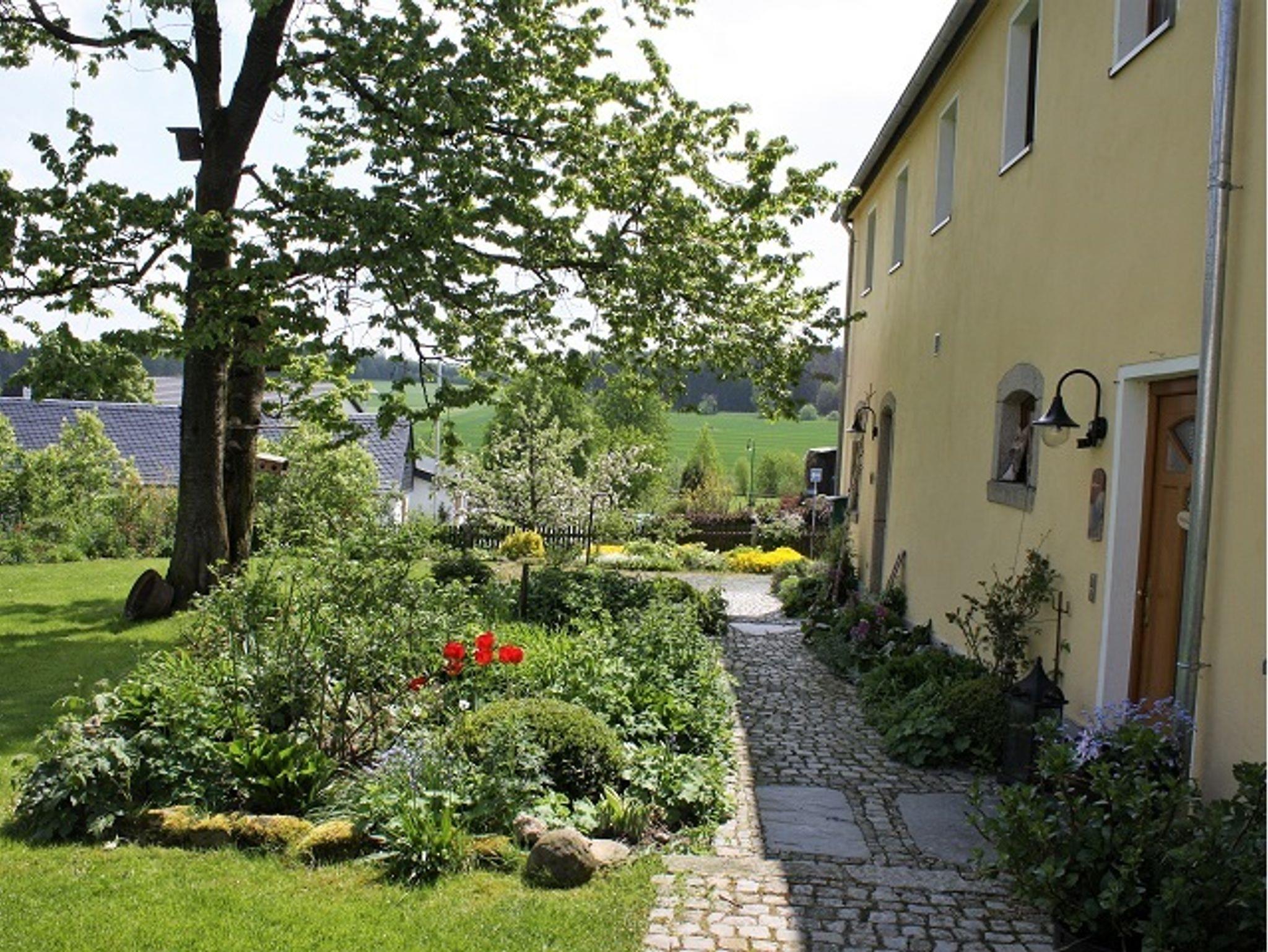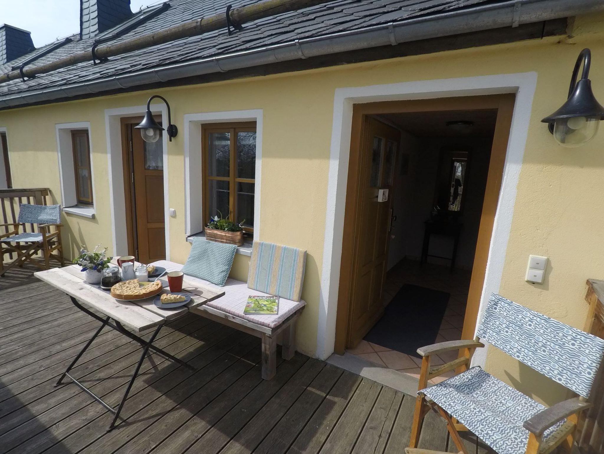 Von der Terrasse der Ferienwohnung aus, haben sie einen wunderbaren Blick über unseren großen, grünen Garten und die umliegende dörfliche Landschaft. Nahe am Saaleradweg, Kammweg, Grünem Band, Deutsch-Deutschem Museum Mödlareuth, Kurort Bad Steben u.s.w, haben Sie alle Möglichkeiten eines aktiven und erholsamen Aufenthaltes.