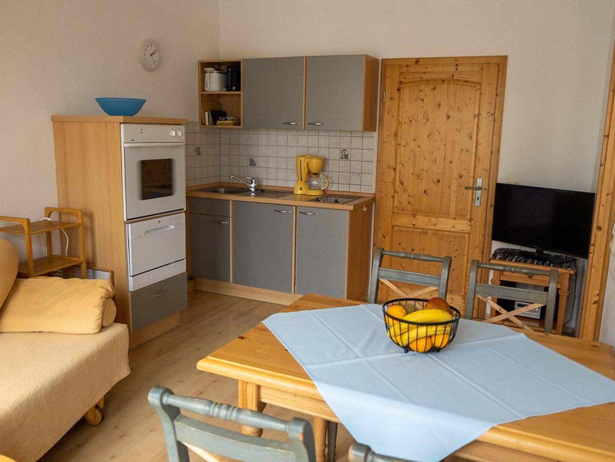 Diese Wohnung (35m²) liegt im 1. Stock und hat einen schönen Blick direkt auf unseren schönen Obstgarten und den darunterliegenden Teich mit den Gänsen. Sie hat ein Schlafzimmer mit Doppelbett, die Lattenroste sind im Kopfteil höhenverstellbar, ein Wohnzimmer, Küchenzeile, Dusche / WC mit Fenster. Die Küche ist komplett ausgestattet mit Geschirr, Töpfen und Besteck, einen Geschirrspüler, Kaffeemaschine, Kühlschrank mit Gefrierfach, Herd, Backofen, Toaster und Wasserkocher.