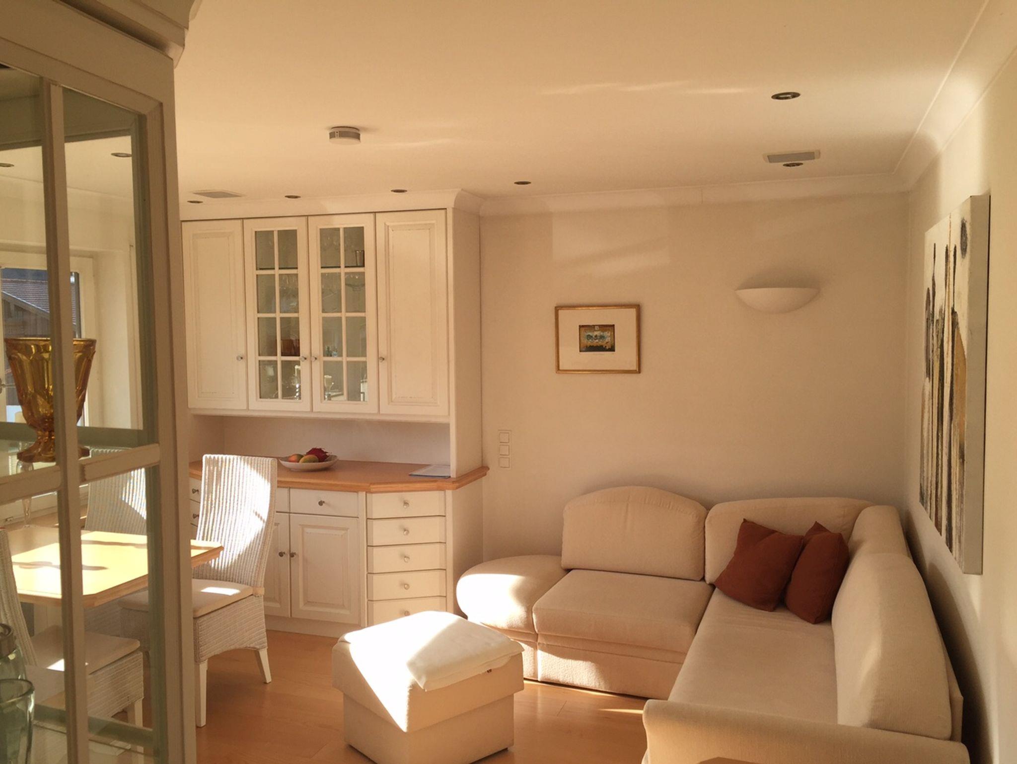 Die sehr schöne Ferienwohnung ist hochwertig ausgestattet und ist für 2 Personen geeignet. Im Wohnraum befinden sich ein TV und eine Stereoanlage. Smart-TV (Für die Streaming-Dienste müssen Sie Ihre eigenen Passwörter benutzen). Schlafzimmer: Die Betten sind mit elektrisch verstellbaren Lattenrosten ausgestattet. Helles Bad mit Fön. In der extra Küche befindet sich ein Geschirrspüler. Es steht auch eine Bar für Sie zur Verfügung. Es erwartet Sie ein großer Südbalkon mit Bergblick.Im Ausnahmefall und auf Anfrage sind bis zu 3 Personen möglich. Für die 3. Person befindet sich eine Schlafcouch im Wohnzimmer. Sauna und Pool im Haus können genutzt werden, wird von einem separaten Betreiber zur Verfügung gestellt und ist nicht Bestandteil der Buchung.