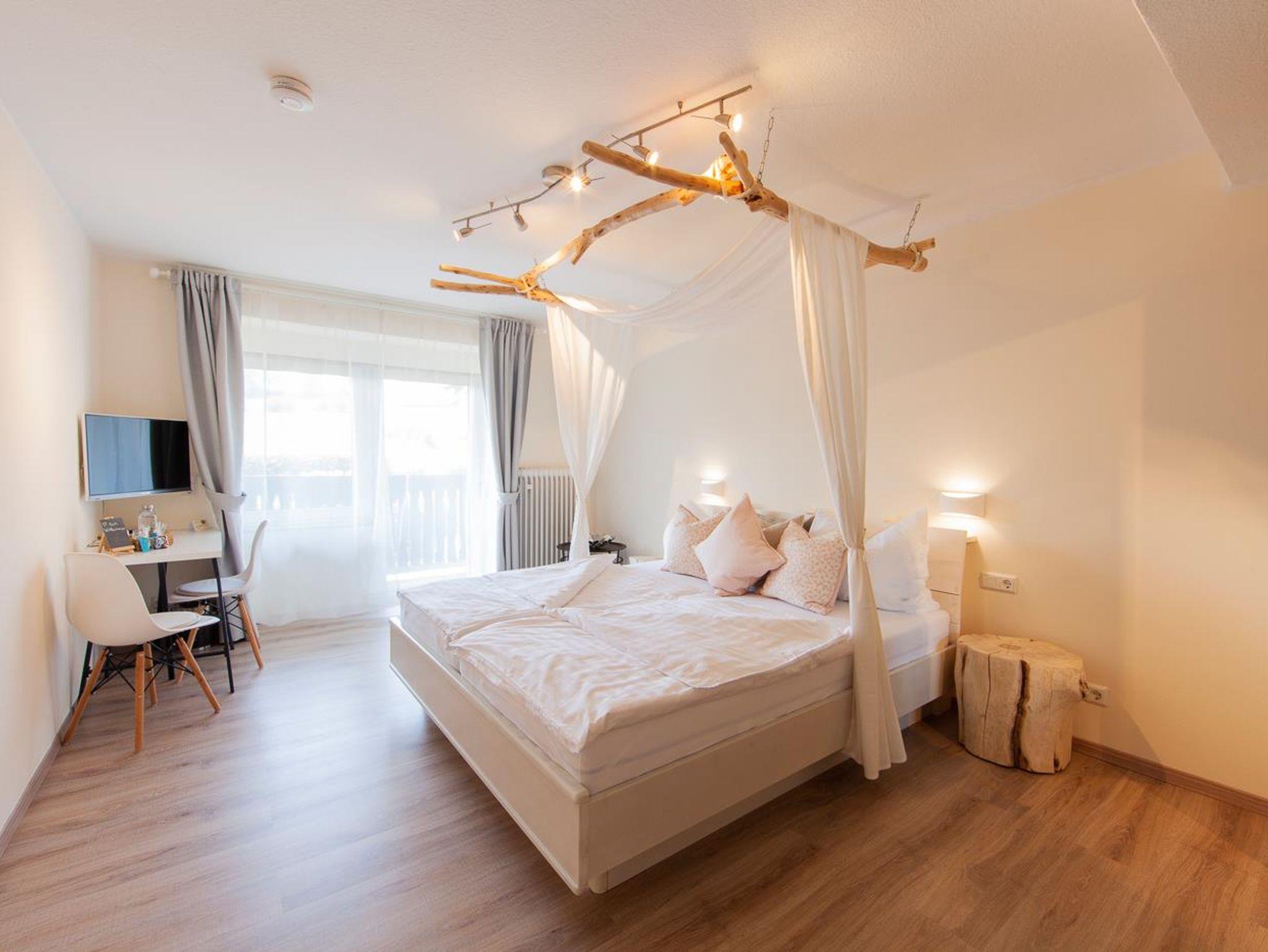 Unsere Kuschel-Suite verfügt über einen großzügigen Schlaf-/Wohnbereich mit Flachbildfernseher, ein komfortables Badezimmer mit Dusche und WC inkl. Fön, sowie einen Balkon.
