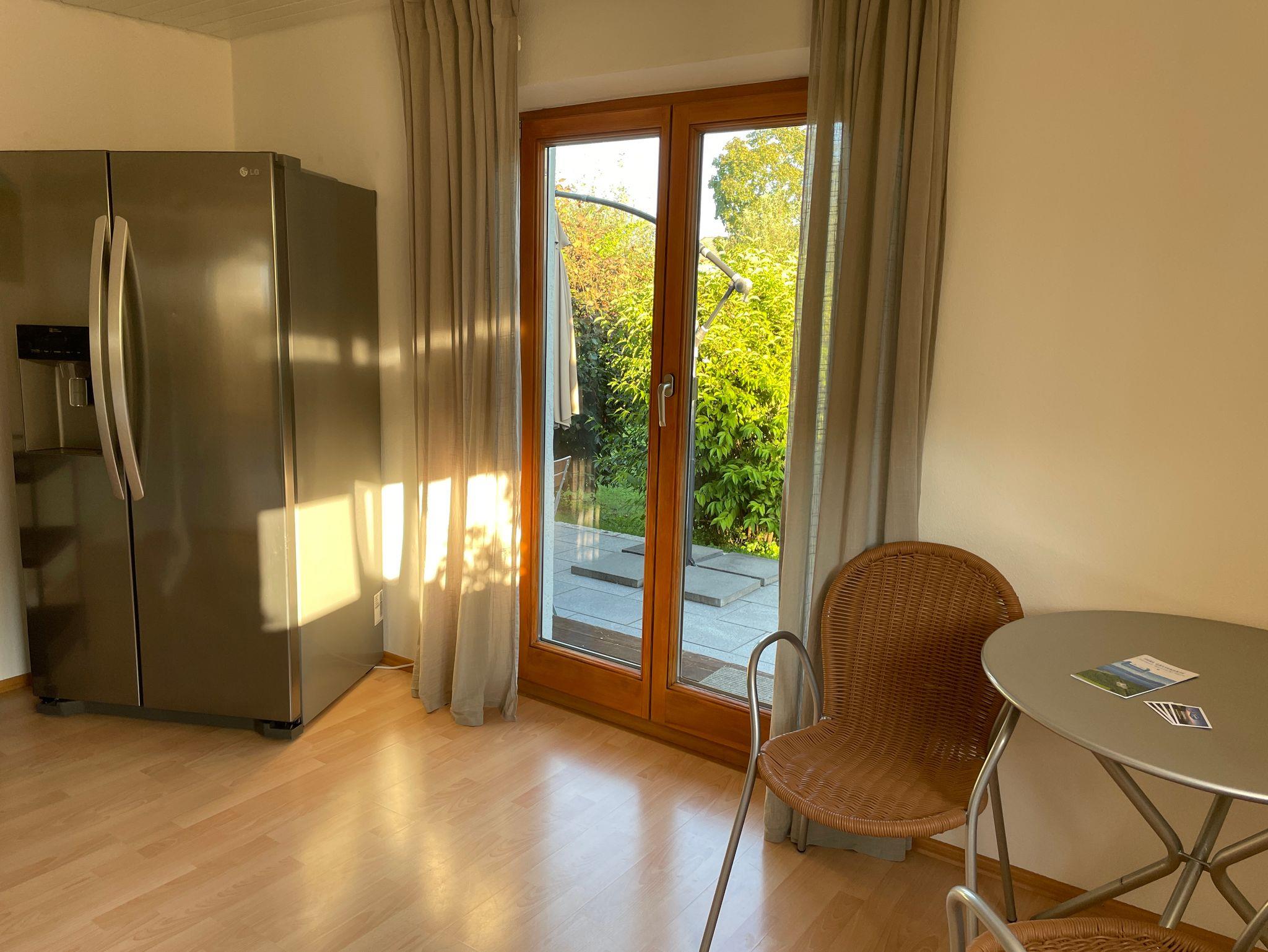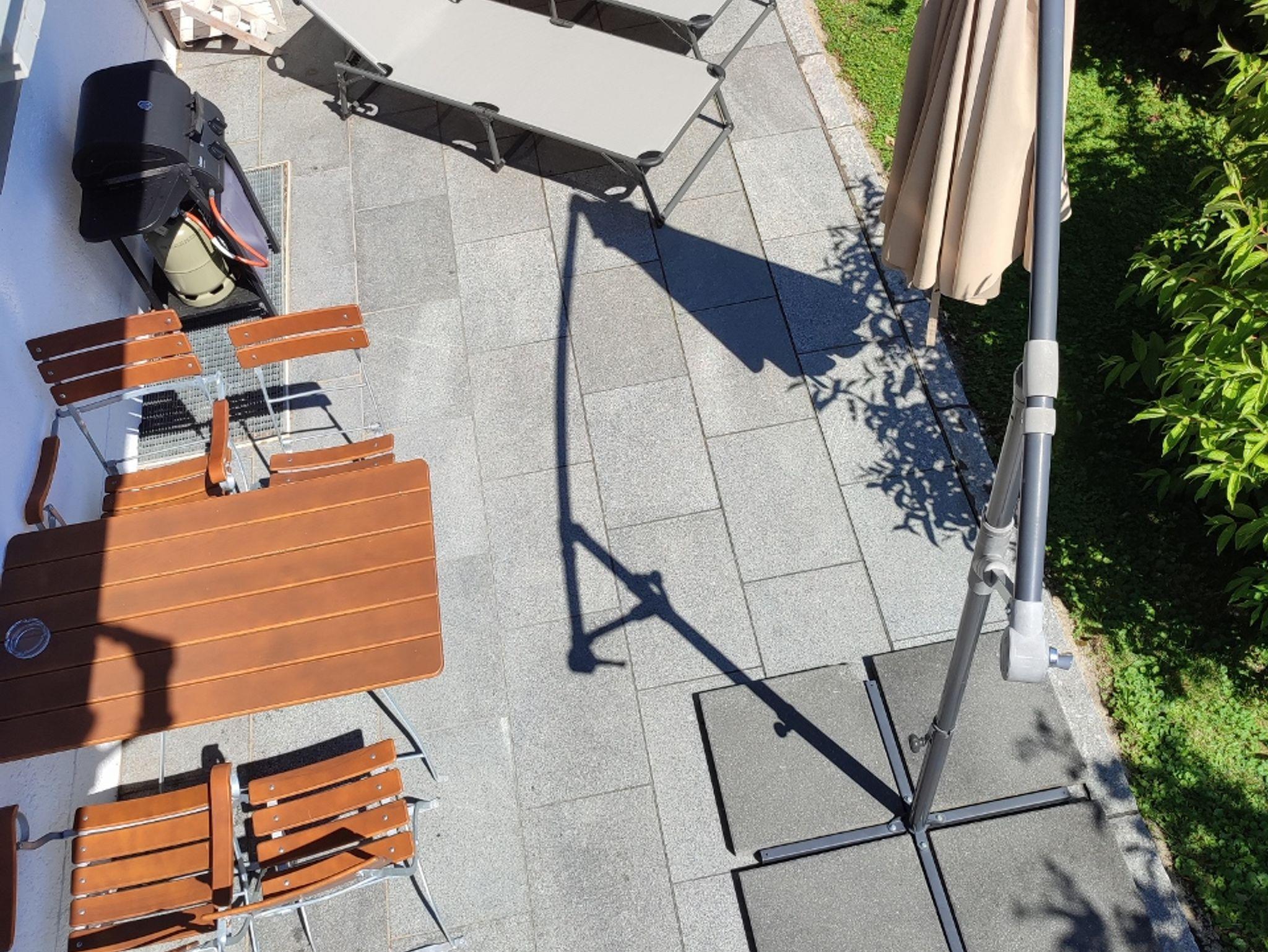 Die lichtdurchflutete, großzügige Unterkunft liegt im Erdgeschoss des Hauses. Eine nach Süden ausgerichtete Terrasse bietet einen herrlichen Bergblick. Außerdem verfügt die Ferienwohnung über eine voll ausgestattete Küche mit Kaffeevollautomat, ein Wohnzimmer mit Essbereich, ein Badezimmer mit Badewanne sowie über ein Eltern- und Kinder-Schlafzimmer. WLAN ist selbstverständlich inklusive.