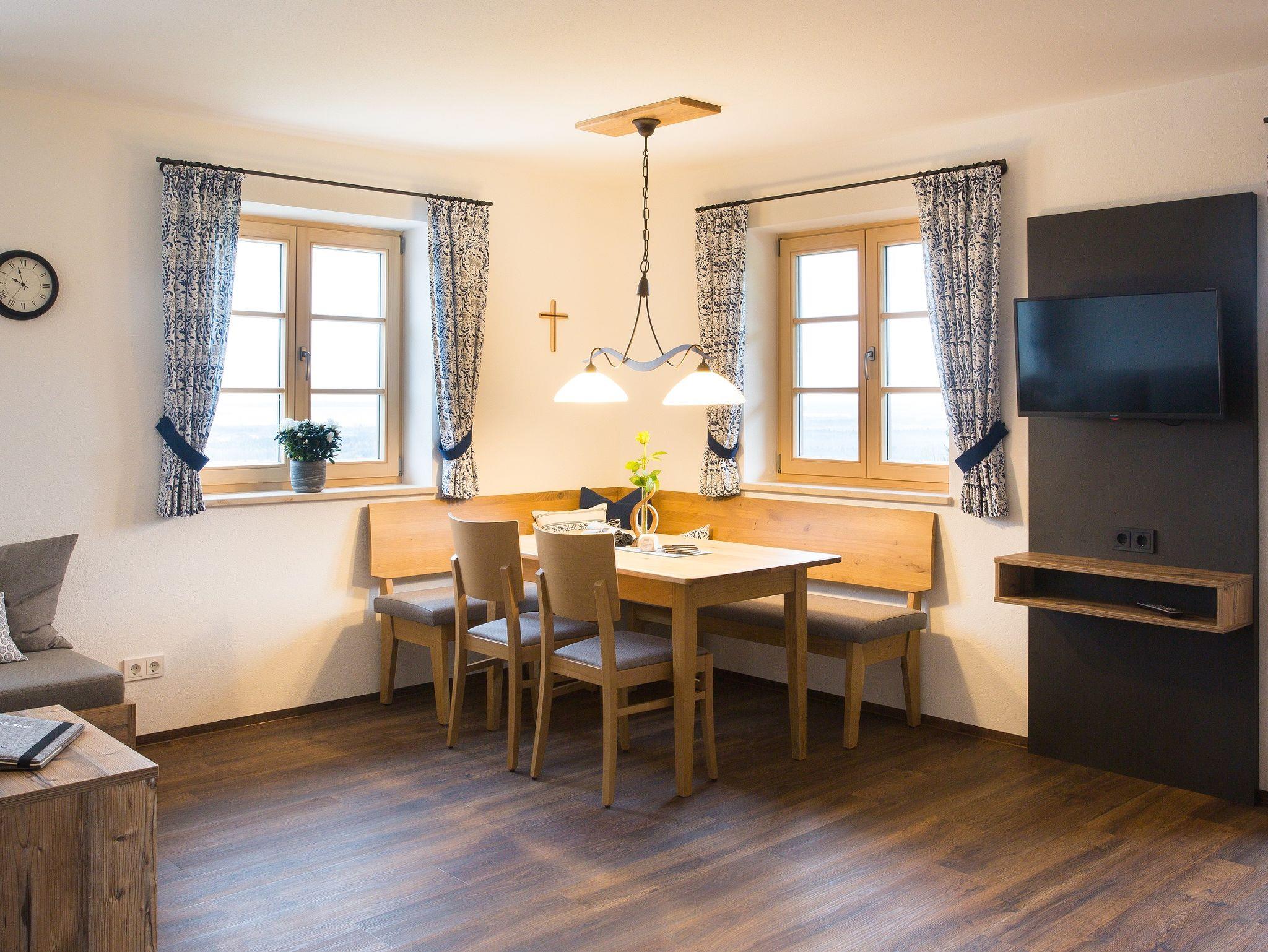 Unsere neu möblierte Wohnung „Waldzauber“ liegt im 1. Obergeschoss unseres Nebengebäudes und ist über einen eigenen Eingang erreichbar. Auf dem westseitigen Balkon könnt ihr bei Abendsonne den Blick auf den Chiemsee, in den Obstgarten und in den angrenzenden Wald genießen. Unser W-LAN steht euch kostenfrei zur Verfügung.