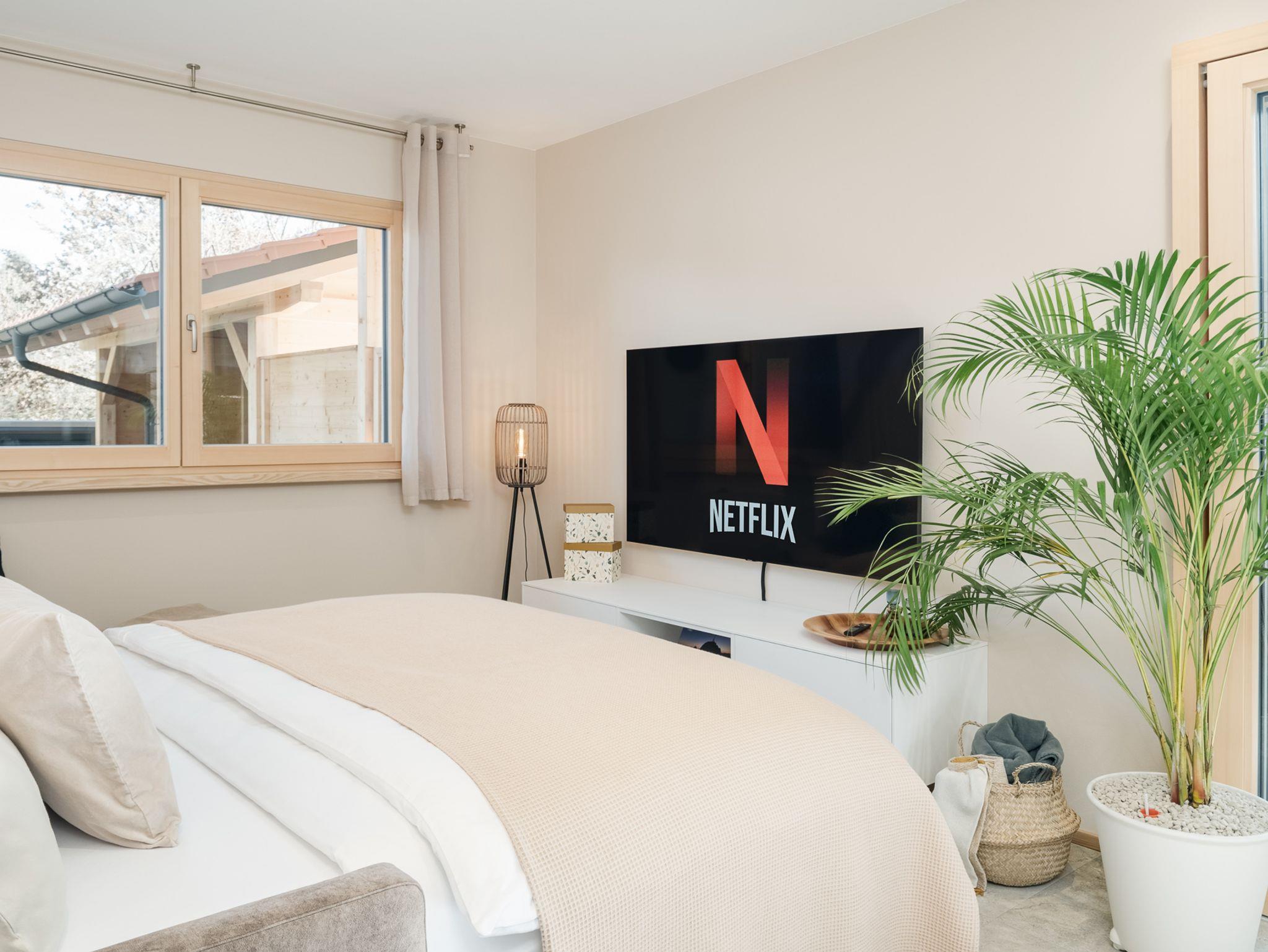 Darüber hinaus verfügt die Wohnung über einen Essbereich für 6 Personen. Entspann Dich anschließend im gemütlichen Ambiente, das mit einem 65-Zoll-Smart-TV inkl. NETFLIX und Internet-TV in UHD-Qualität ausgestattet ist. Genieße Deine Lieblingssendungen und Filme in bester Bildqualität.