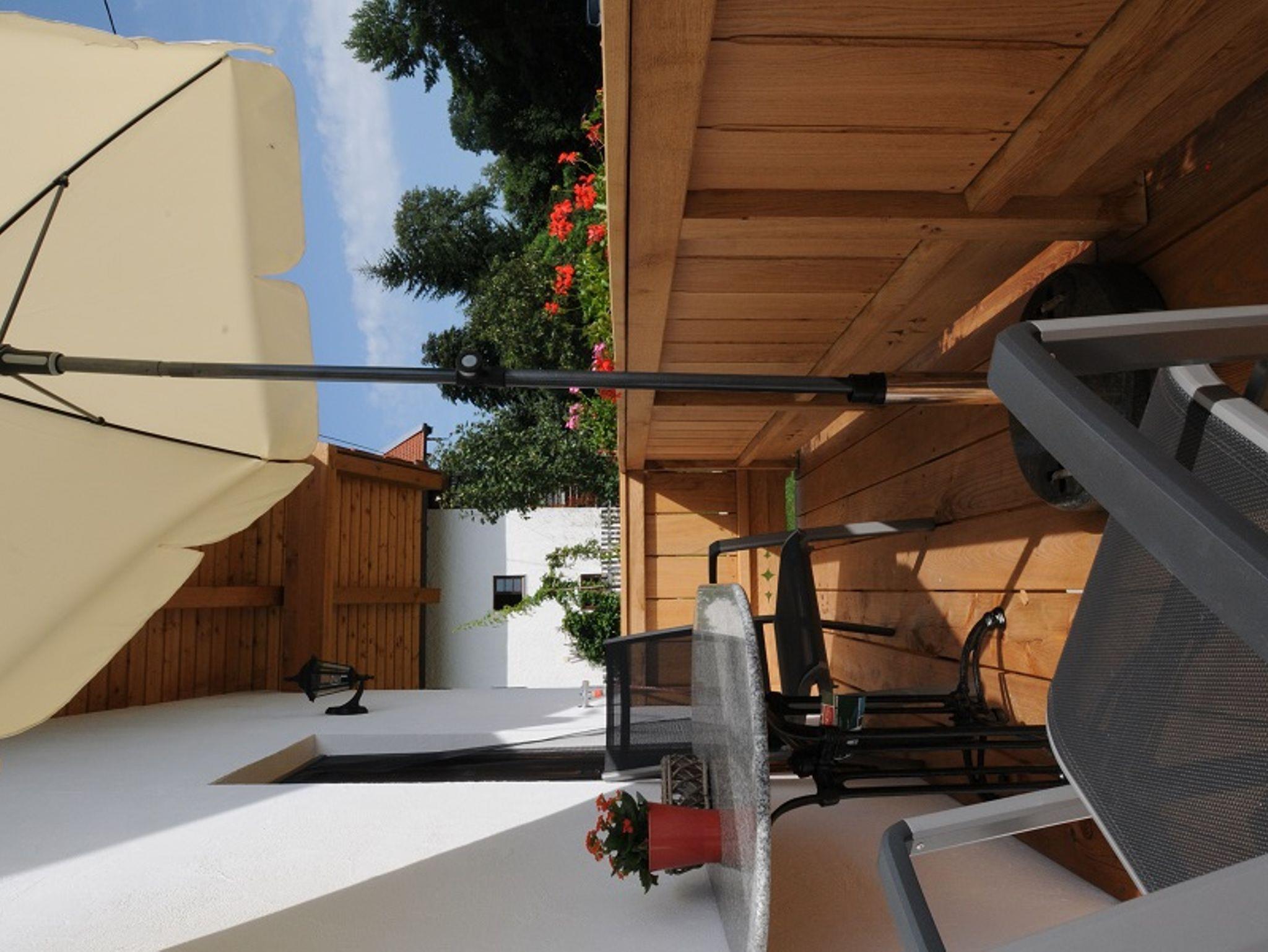 Helle Ferienwohnung im neu gebauten Gästehaus. Von der Wohnküche und vom Schlafzimmer hat man Zugang zum großen Balkon. In der Wohnküche befindet sich eine voll ausgestattete Küche mit Backofen, Spülmaschine, Kühlschrank mit Eisfach, gemütliche Essecke und Eckcouch mit TV. Im Bad ist eine Dusche, WC und Waschbecken und eine Heizung zum Handtuchtrocknen. Die Holzdecke ist aus Altholz und macht ein gemütliches Flair. In einem Schlafzimmer ist ein Doppelbett und im zweiten Schlafzimmer sind zwei Einzelbetten. Es besteht die Möglichkeit, ein Kinderbett zusätzlich hinein zu stellen. Im Erdgeschoß ist ein gemütlicher Aufenthaltsraum für unsere Gäste.