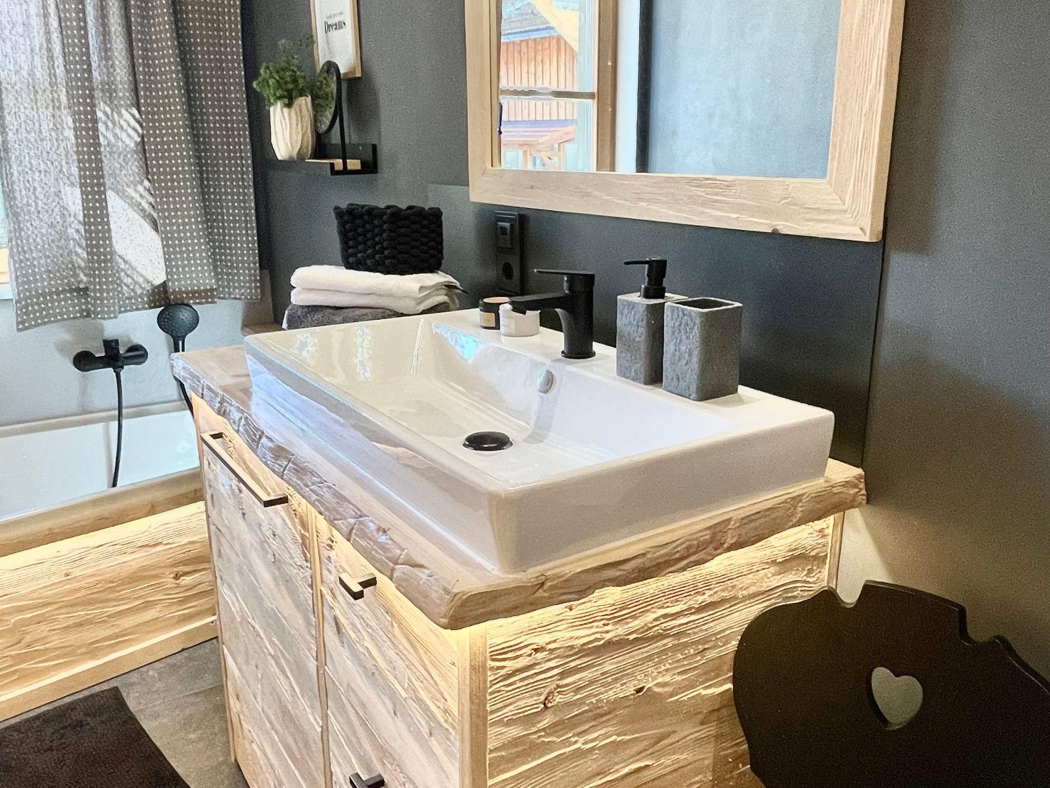 In dieser geräumigen u. wertigem Holzbau-Unterkunft (80qm/Neubau2024),empfangen wir Sie in einer liebevollen Einrichtung mit Blick auf Wälder und unseren Hausberg der Kampenwand.