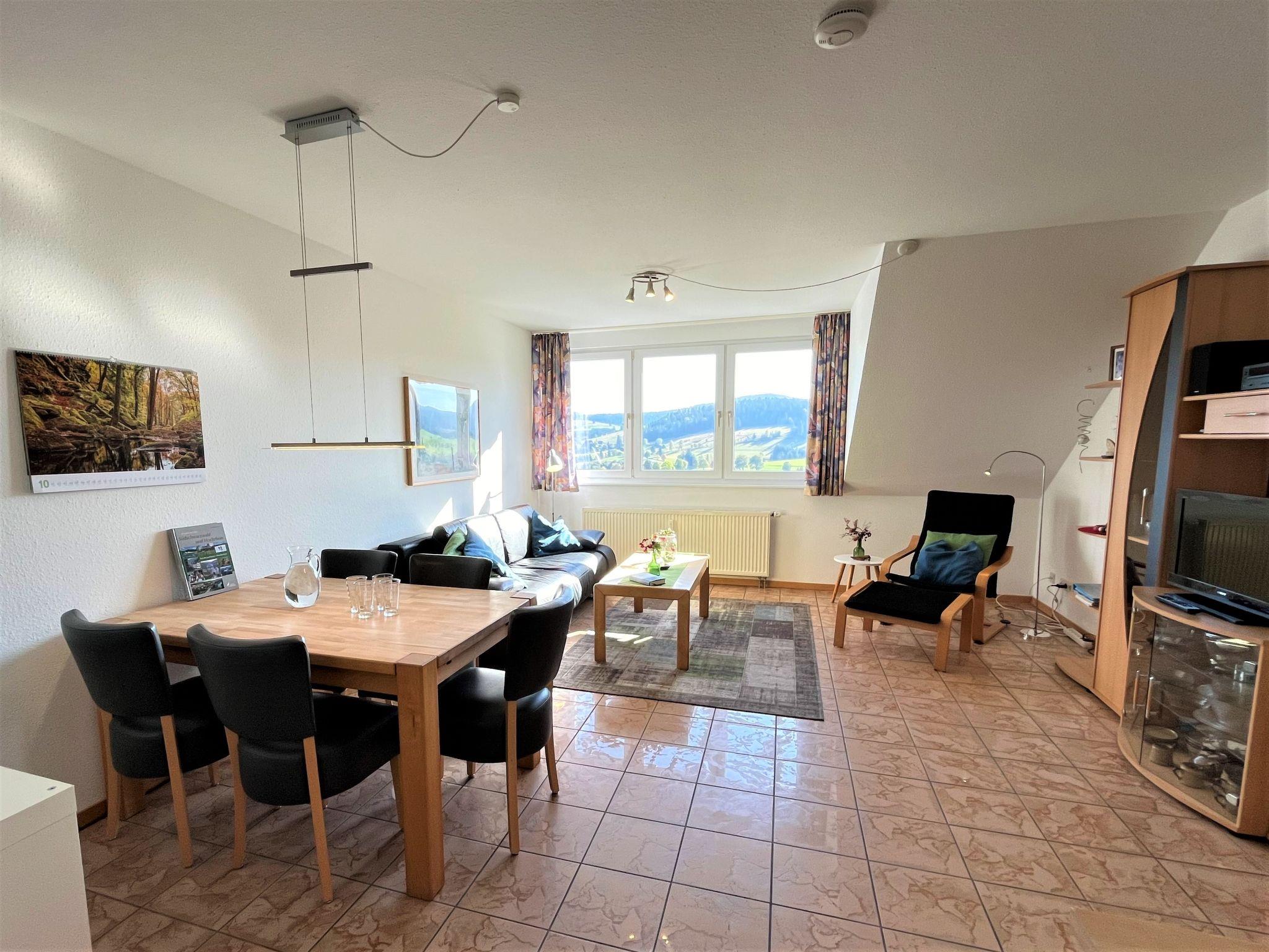 "Schwarzwaldblick III", 3-Zimmer-Wohnung 75 m2 im 3. Stock. Modern eingerichtet: Wohn-/Schlafzimmer mit 1 Doppeldiwanbett, Esstisch und Sat-TV. 1 Zimmer mit 1 Doppelbett. Ausgang zum Balkon. 1 Zimmer mit 1 Doppelbett. Kleine Kochnische im Eingang (4 Kochplatten, Backofen, Toaster, Wasserkocher, elektrische Kaffeemaschine). Dusche/WC, sep. WC. Heizung. Balkon. Balkonmöbel. Schöne Sicht auf das Tal. Zur Verfügung: Kinderhochstuhl, Babybett. Internet (Wireless LAN, gratis). Garage (1 Auto). Bitte beachten: Nichtraucher-Unterkunft. Maximal 1 Haustier/Hund erlaubt. Rauchmelder.