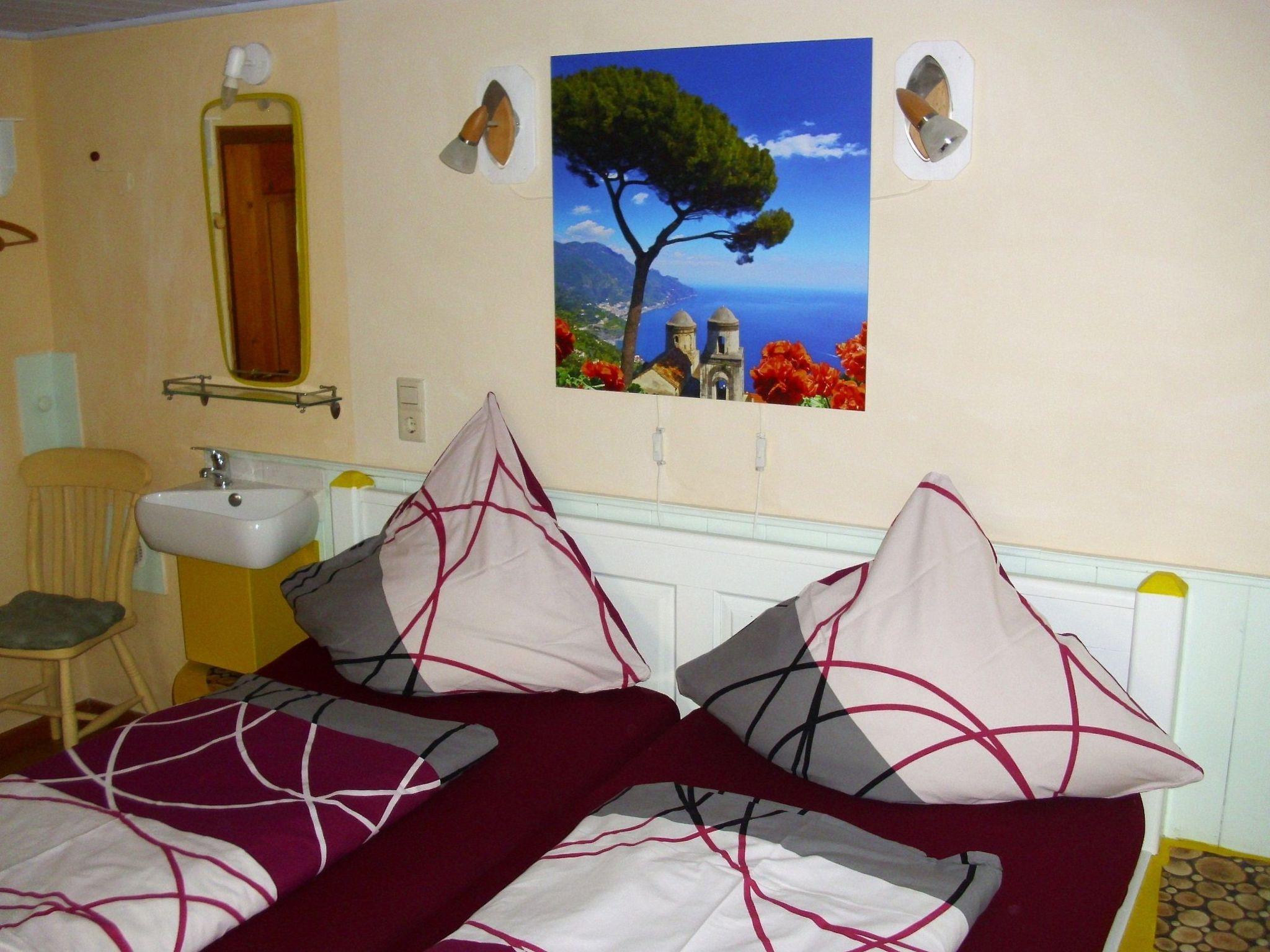 Im Inneren erwartet Sie ein gemütliches Schlafzimmer mit einem Doppelbett, während der beheizbare Wintergarten zwei zusätzliche Einzelbetten bereithält. Die geräumige Küche ist mit einem Gasherd, Elektrobackofen, Toaster, Wasserkocher, Kühlschrank und einem kleinen Gefrierschrank ausgerüstet. Für zusätzliche Gemütlichkeit sorgt ein Kachelofen – besonders beliebt in den kühleren Monaten. Im Wohnzimmer finden Sie neben einem weiteren Kachelofen eine bequeme Couch, Sat.-TV, Hifi-Anlage, DVD- und VHS-Rekorder sowie einen Plattenspieler, ergänzt durch eine Auswahl an Schallplatten, Büchern, MCs, CDs und DVDs im 1. OG.
