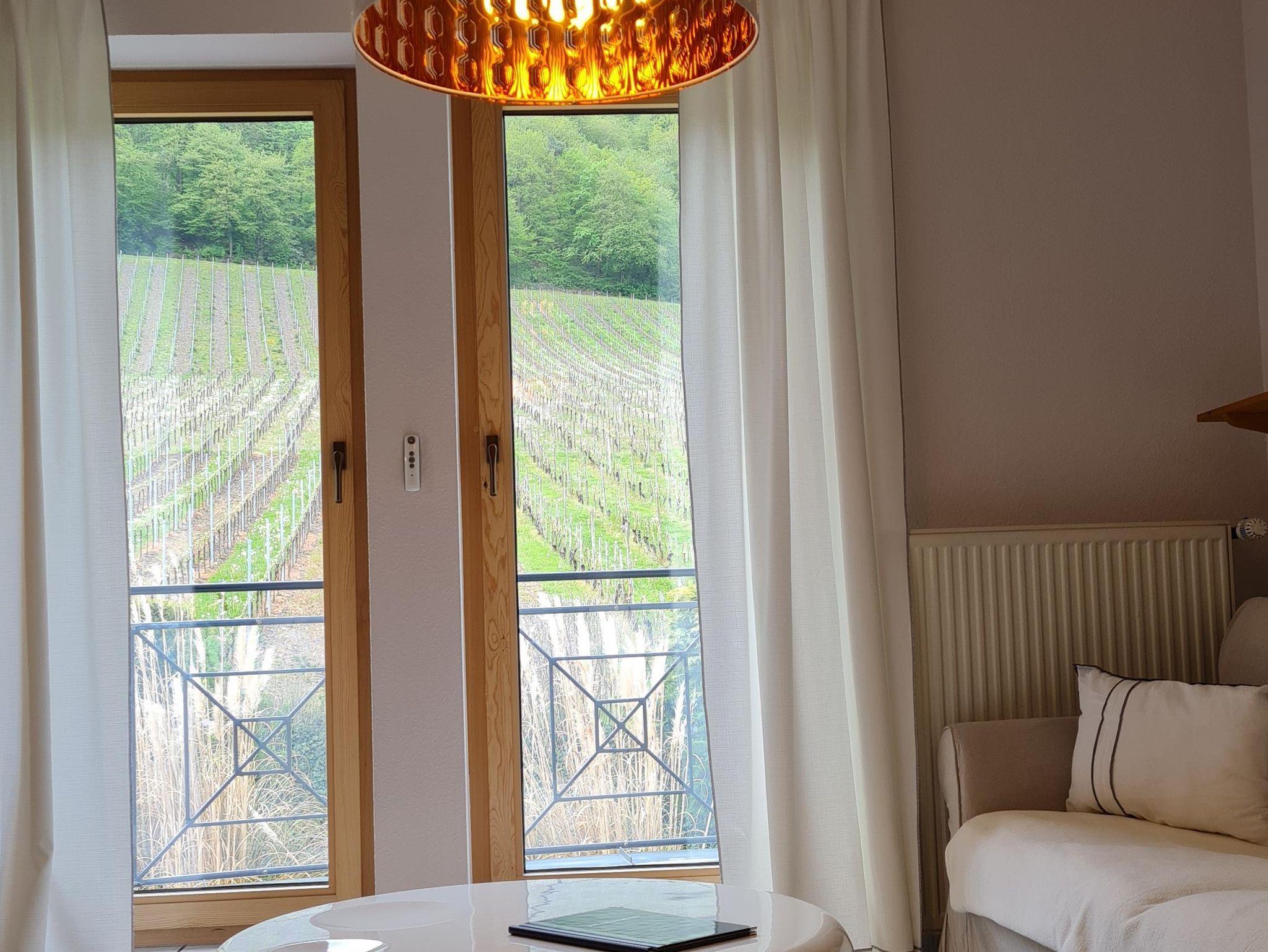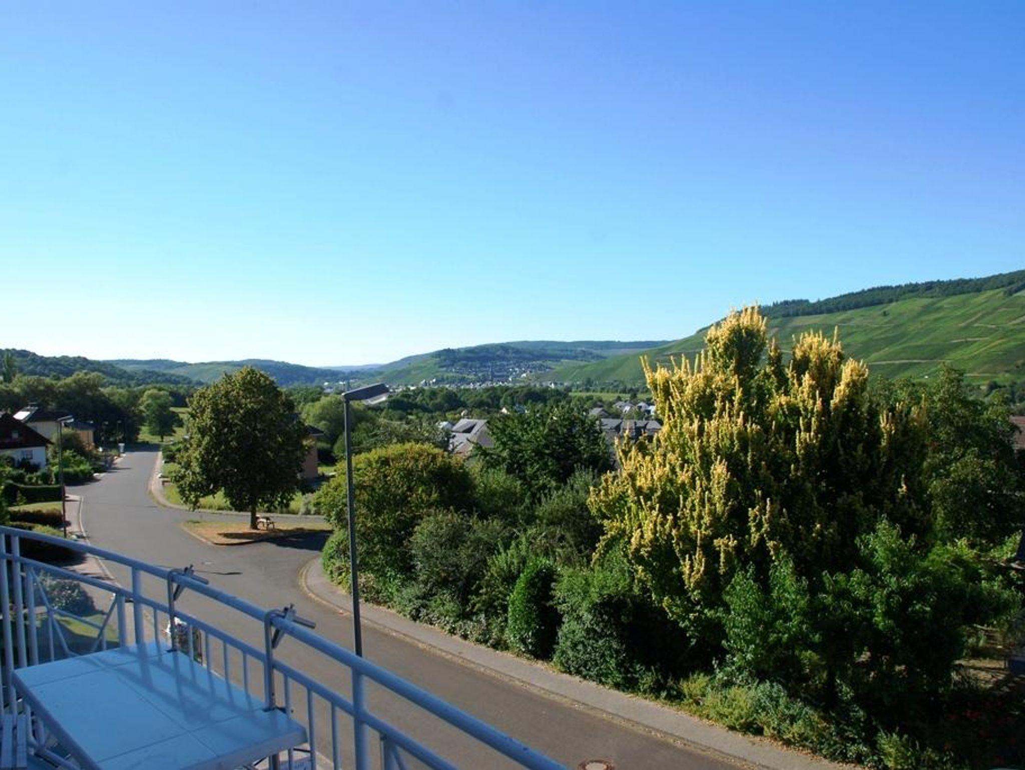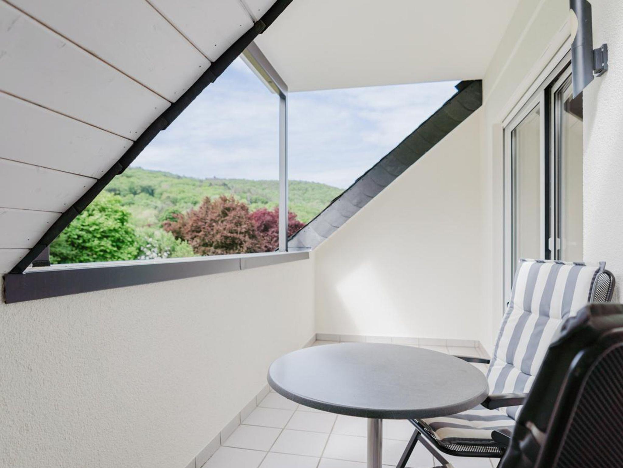 Ferienwohnung Matheisbildchen mit kleinem Balkon mit Sicht ins Moseltal. Für 2-4 Personen.