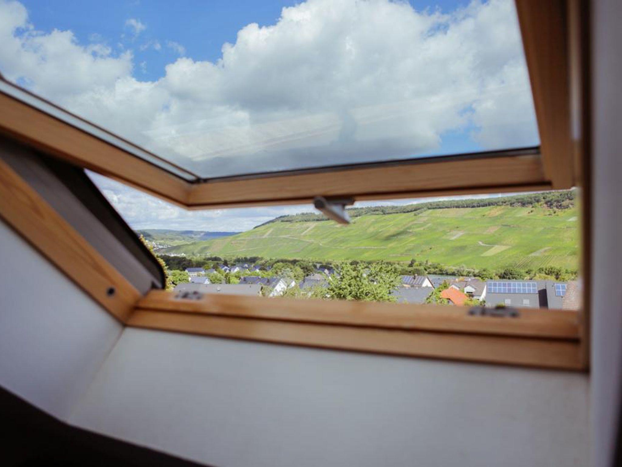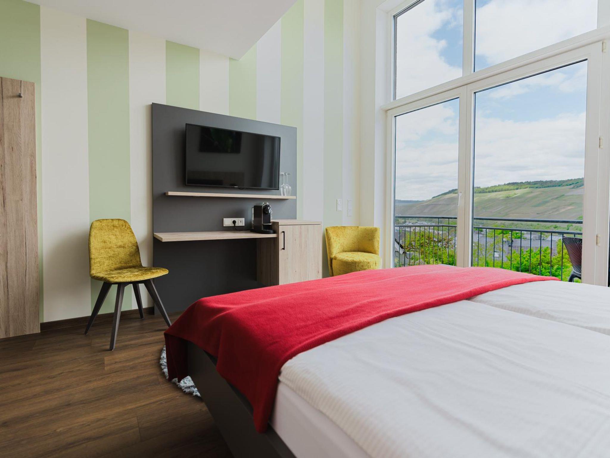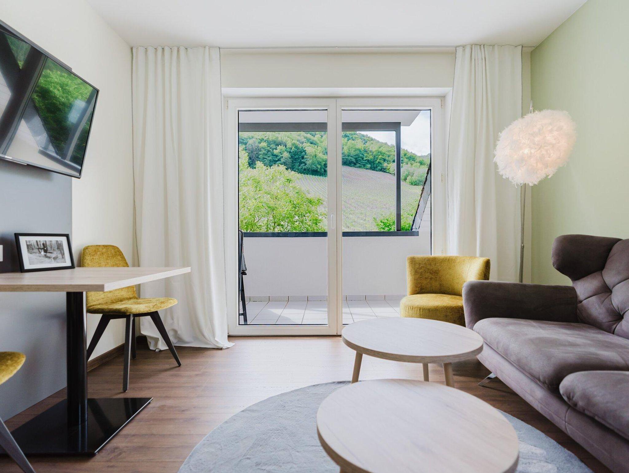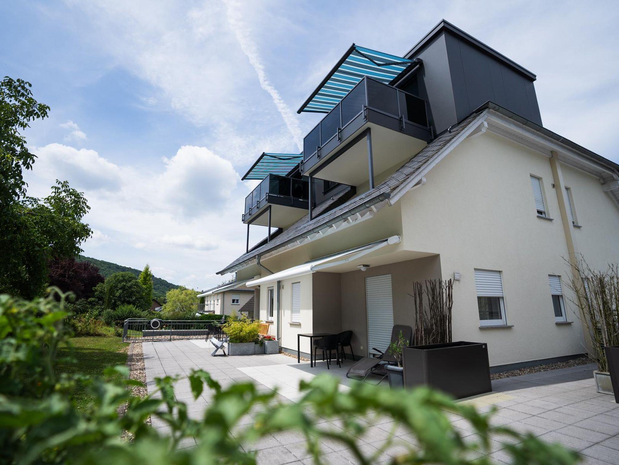 Ferienwohnung Matheisbildchen mit kleinem Balkon mit Sicht ins Moseltal. Für 2-4 Personen.