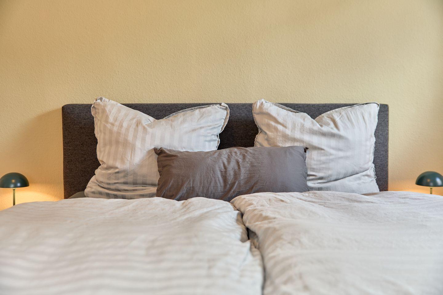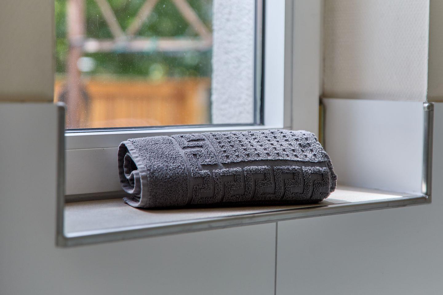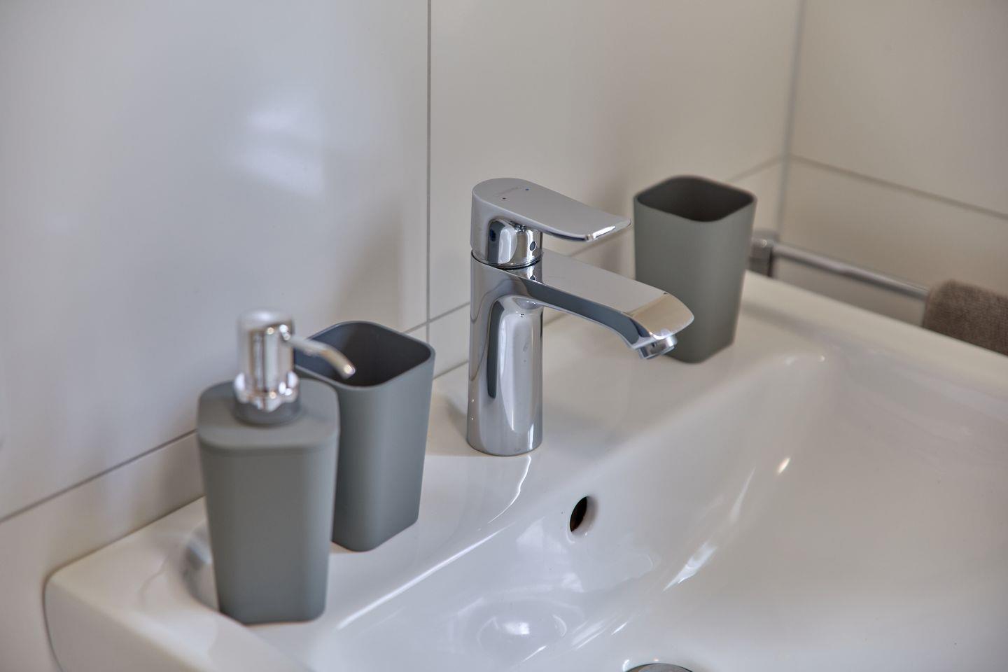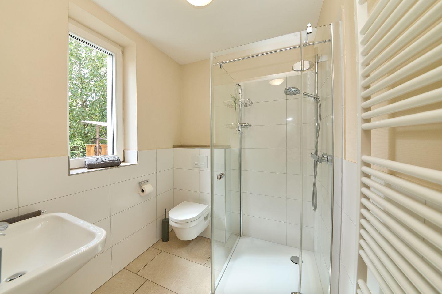 Die Ferienwohnung verfügt über ein separates Schlafzimmer, das optimalen Rückzugsort und Ruhe bietet. Ein Ganzkörperspiegel, Kommode und Schuhschrank schaffen zusätzlichen Stauraum und Komfort. Das Badezimmer ist mit einer bodengleichen Dusche, Waschbecken, WC, Haartrockner, Spiegel und Fenster ausgestattet und erfüllt alle Ansprüche an Funktionalität und Sauberkeit. Zusätzlich sind Handtücher, Badetücher sowie Bettwäsche und Reinigungsmittel vorhanden.