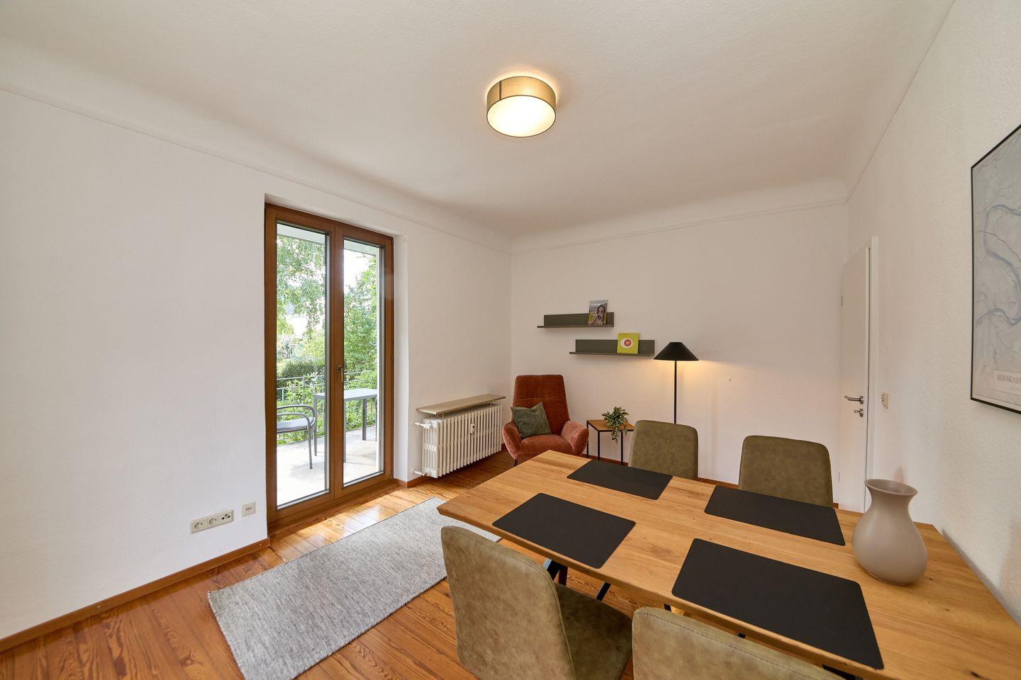 Das einladende Wohnkonzept der Fewo Moritz umfasst ein geräumiges Wohnzimmer, das mit einem bequemen Sofa, Sessel, TV, Radio und Büchern für entspannte Stunden ausgestattet ist. Ein Esstisch befindet sich sowohl im separaten Esszimmer als auch in der geschlossenen Küche, welche sich durch eine vollständige Ausstattung auszeichnet: Kühlschrank mit integriertem Gefrierfach, Backofen, Herd, Mikrowelle, Spülmaschine, Kaffeemaschine, Toaster sowie zahlreiche Küchenutensilien ermöglichen eine bequeme Selbstversorgung und lassen kaum Wünsche offen. Auch Gewürze, Geschirr und Besteck stehen zur Verfügung.