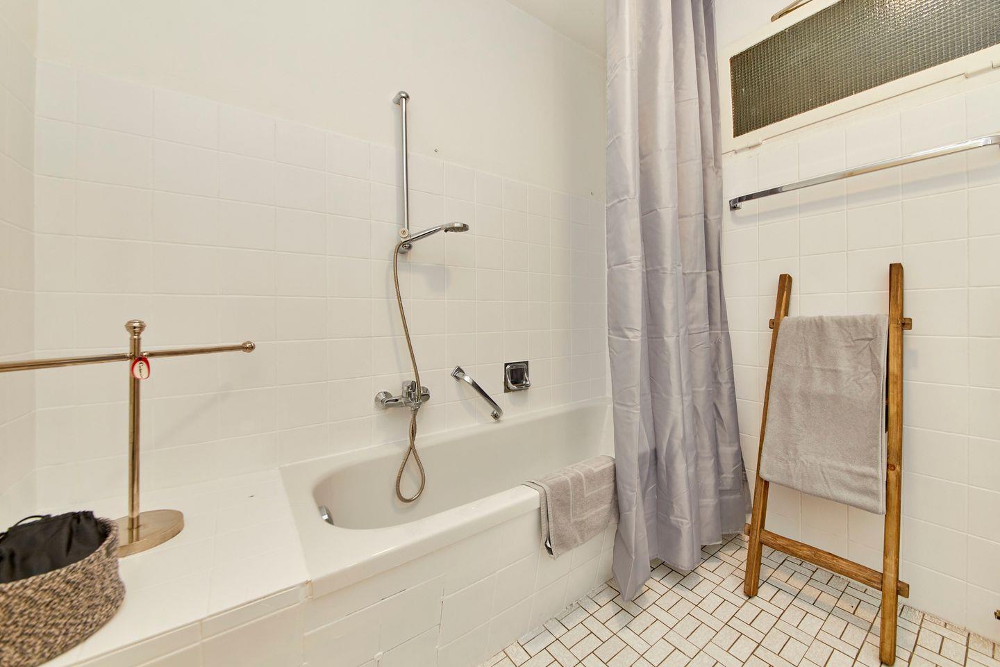 Das Badezimmer ist mit Badewanne, Waschbecken, WC, Spiegel, Fenster und Haartrockner ausgestattet. Handtücher, Badetücher, Bettwäsche sowie eine Erstausstattung und Badausstattung wie Seife oder Shampoo sind vorhanden. Reinigungsmittel und ein Staubsauger ergänzen die praktische Ausstattung.