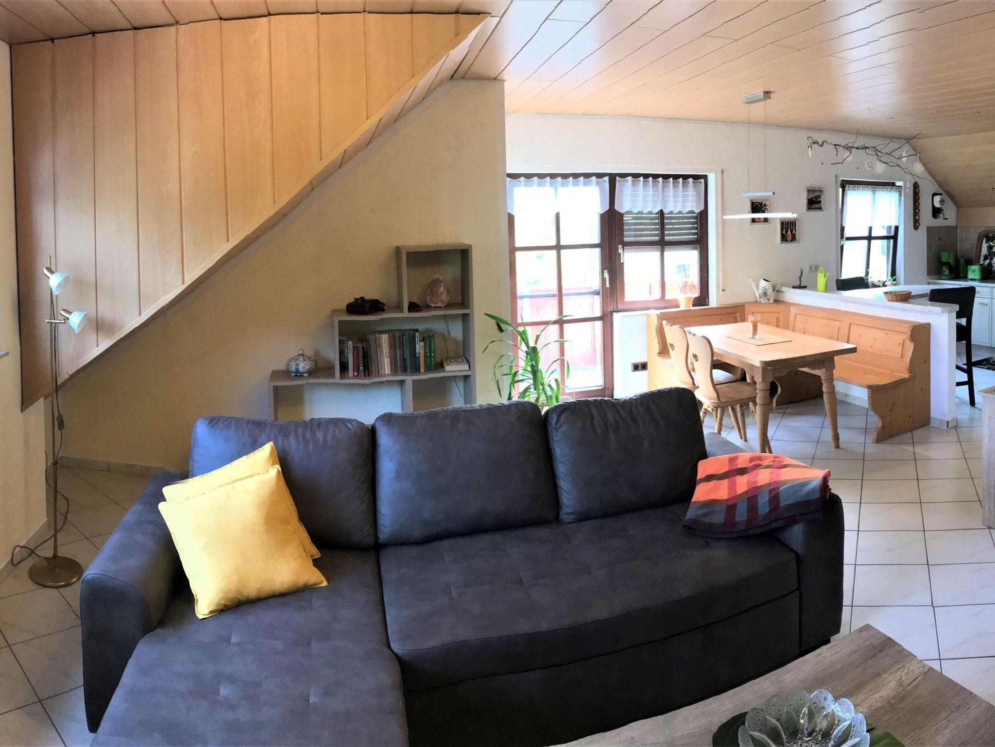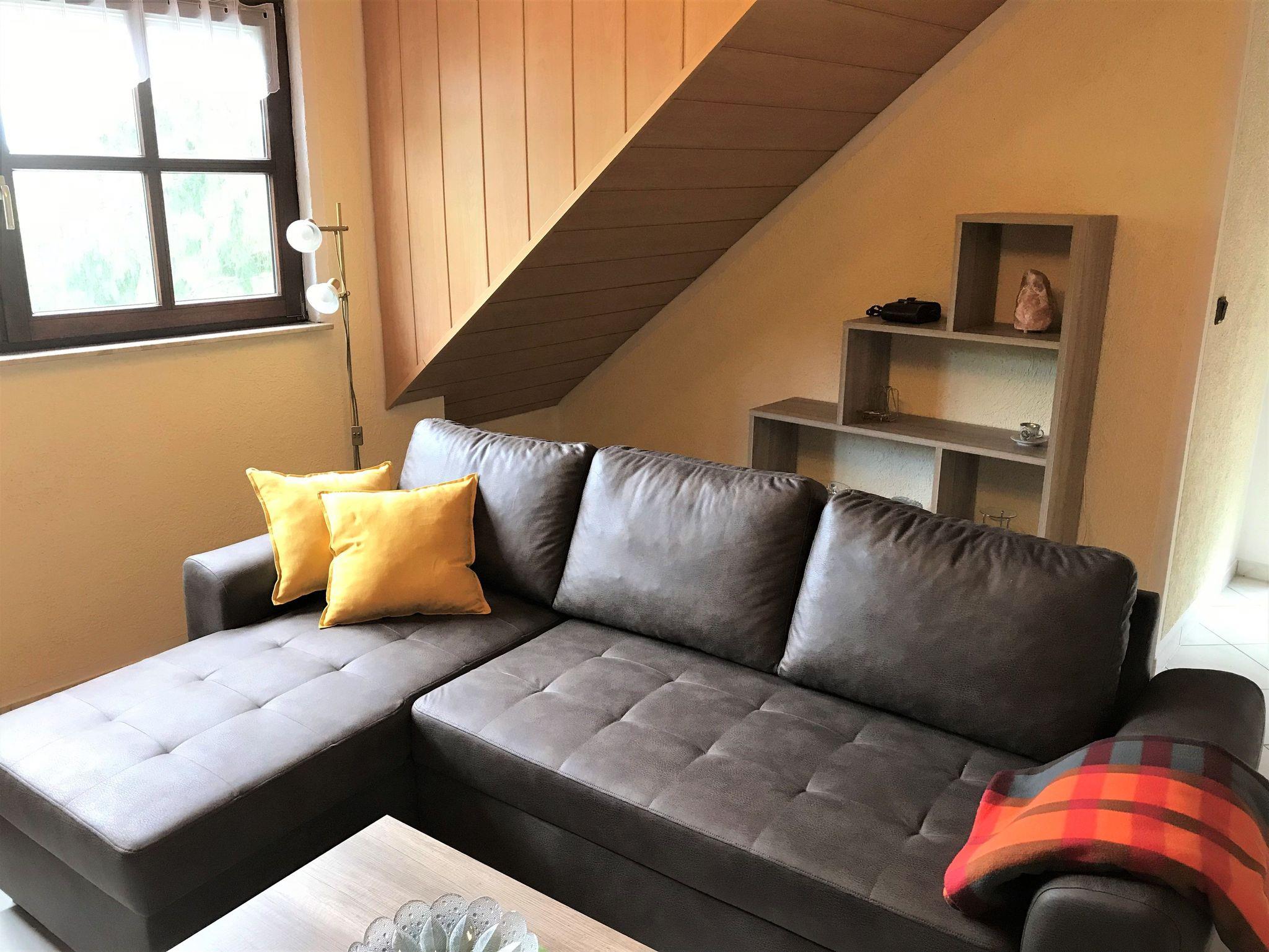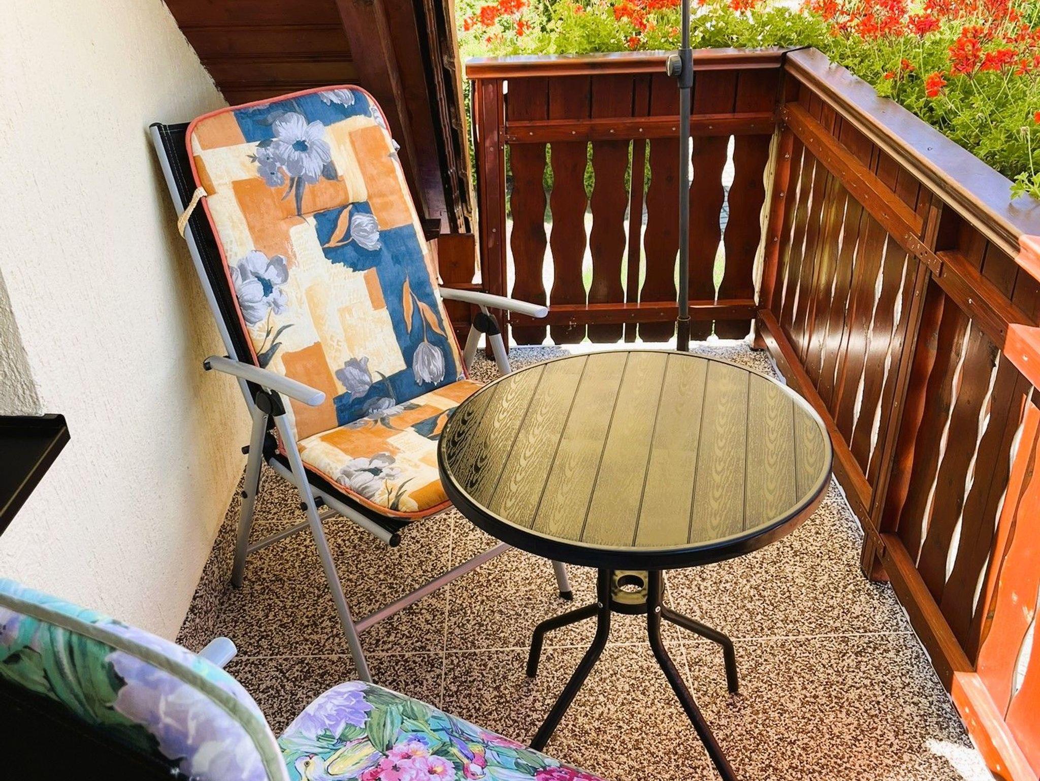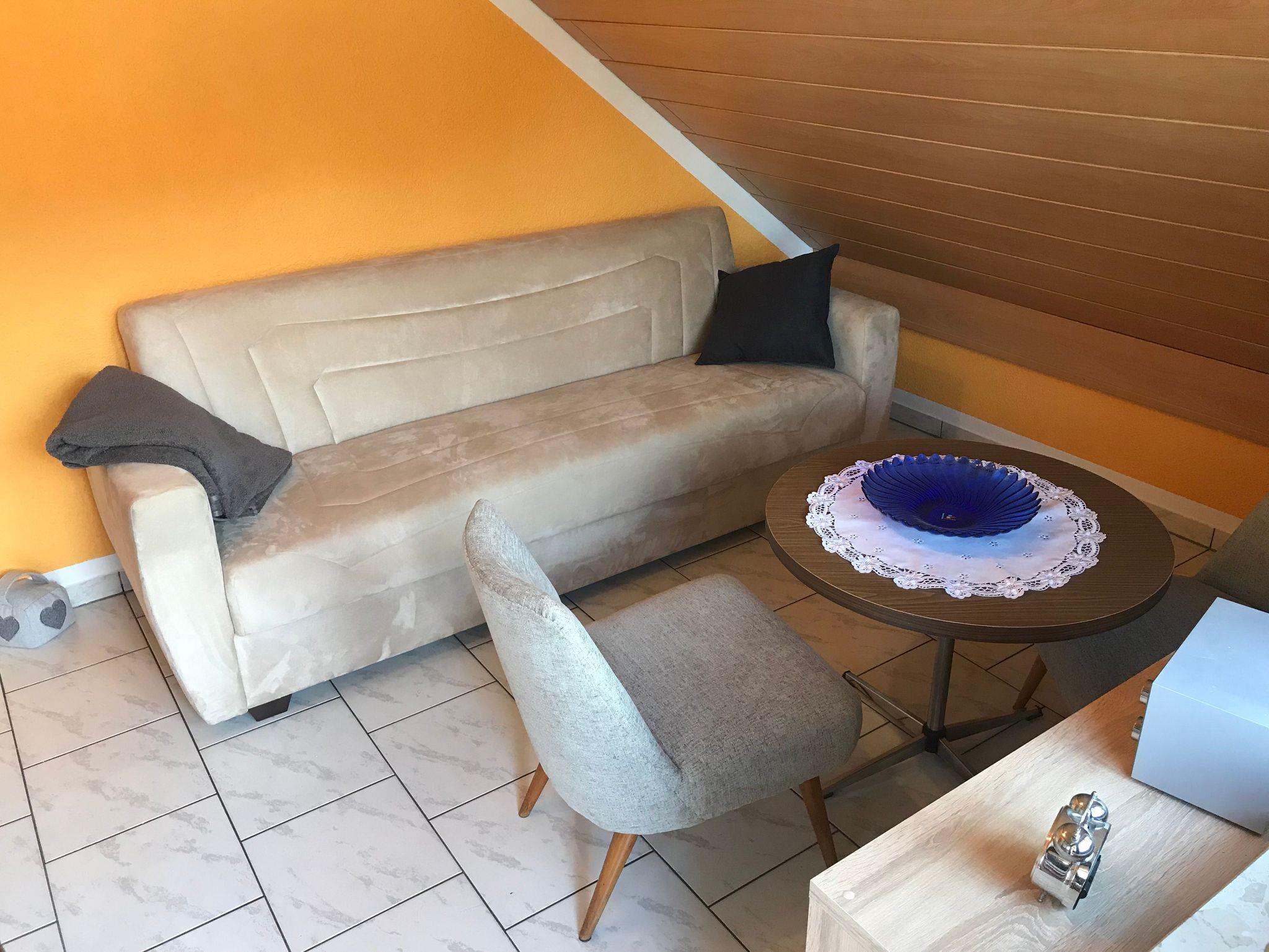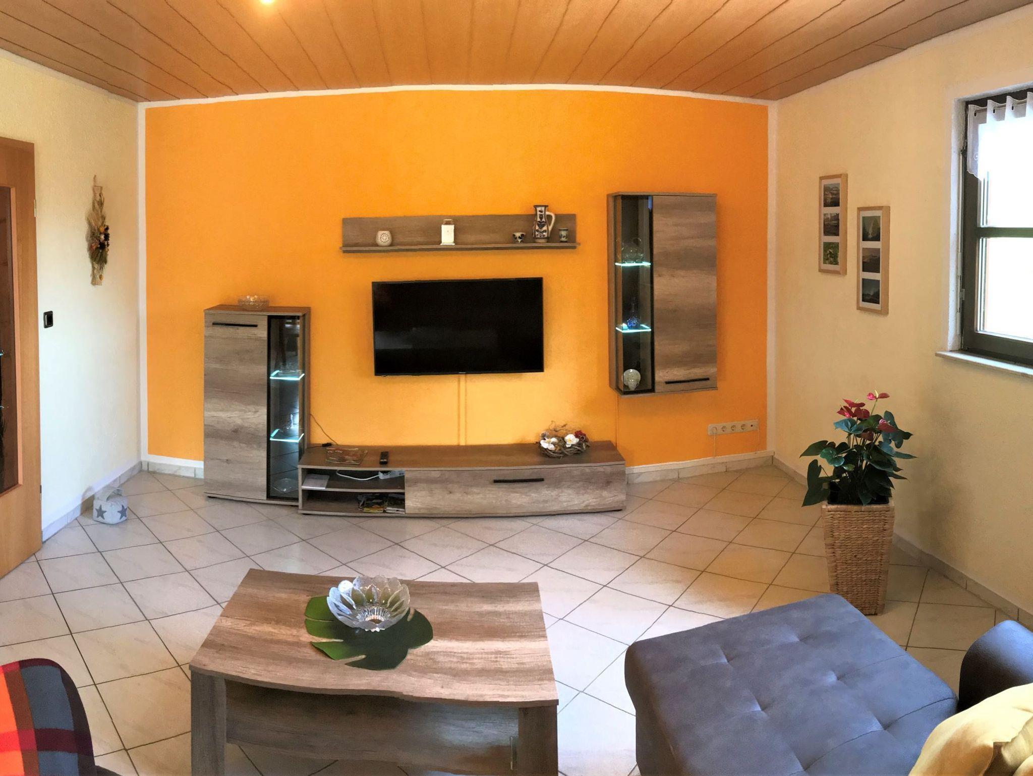 Die Ferienwohnung befindet sich im 1. OG bestehend aus Wohnzimmer mit Essbereich und offener Küche und einer Schlafcouch (ca. 2,00 m x 1,40 m), Schlafzimmer mit Doppelbett (ca. 2,00 m x 1,80 m), Relaxzimmer mit Klappcouch (ca. 1,90 m x 1,05 m), Bad mit geräumiger Dusche, Flur und 2 Balkonen.