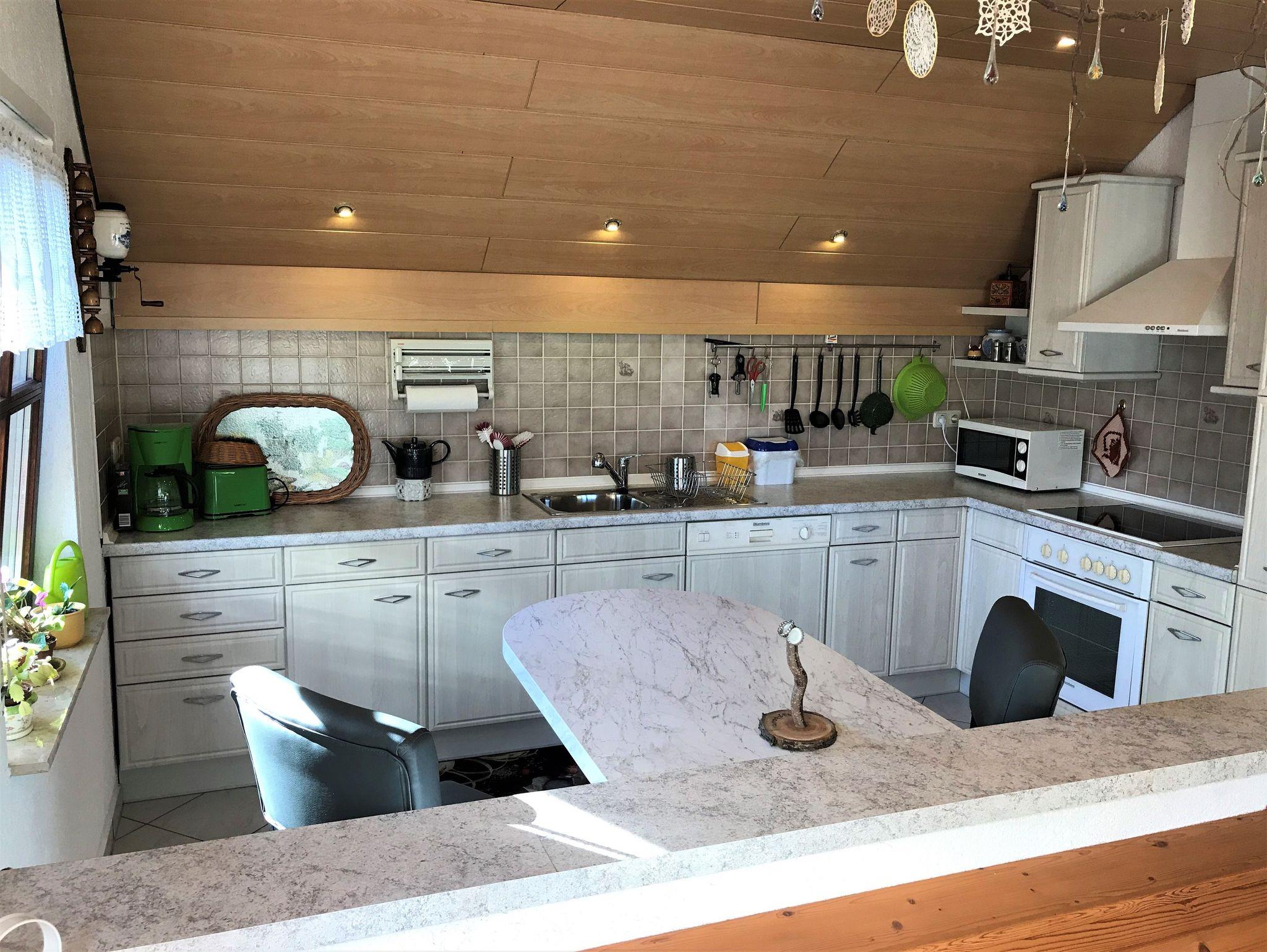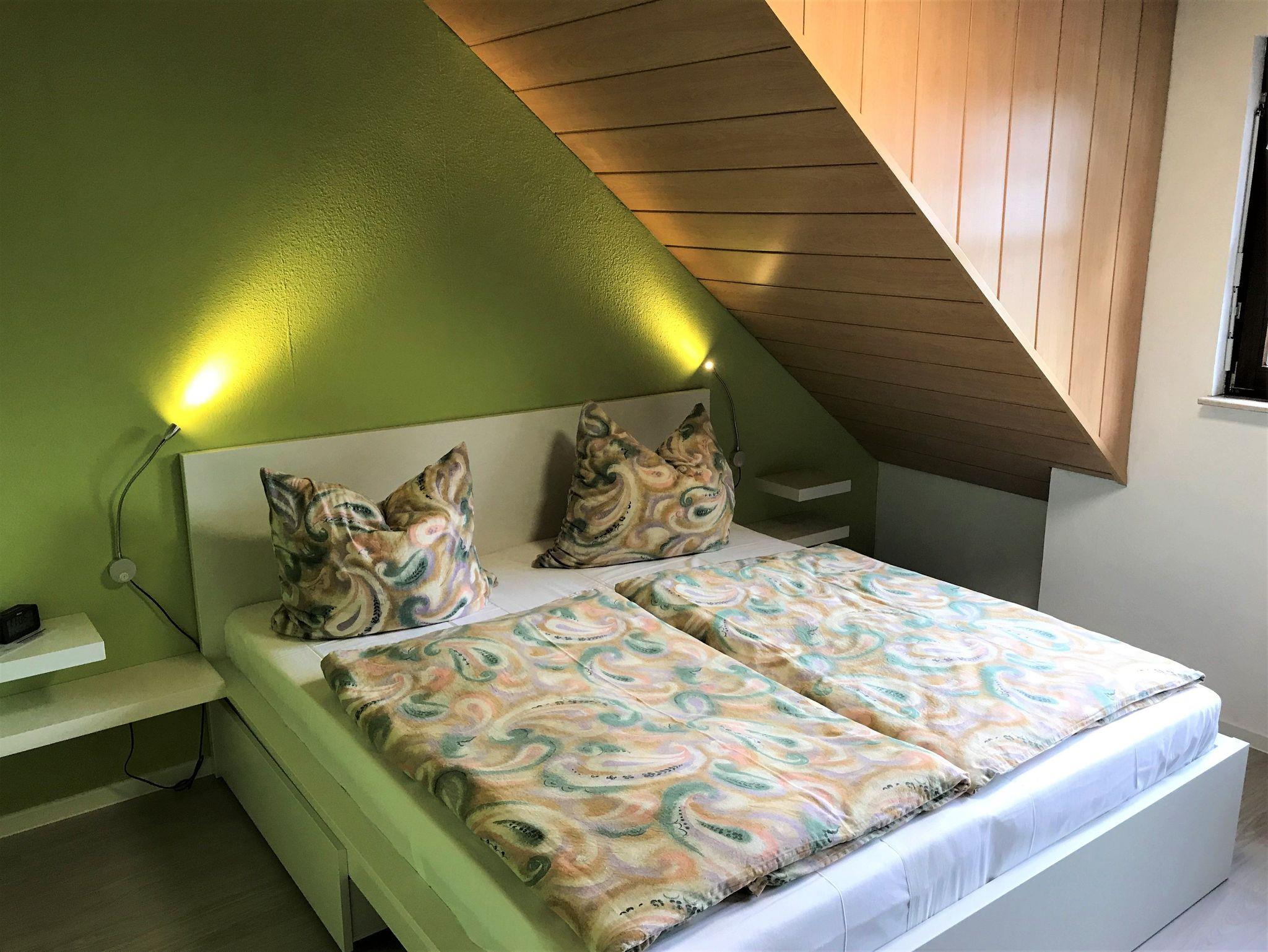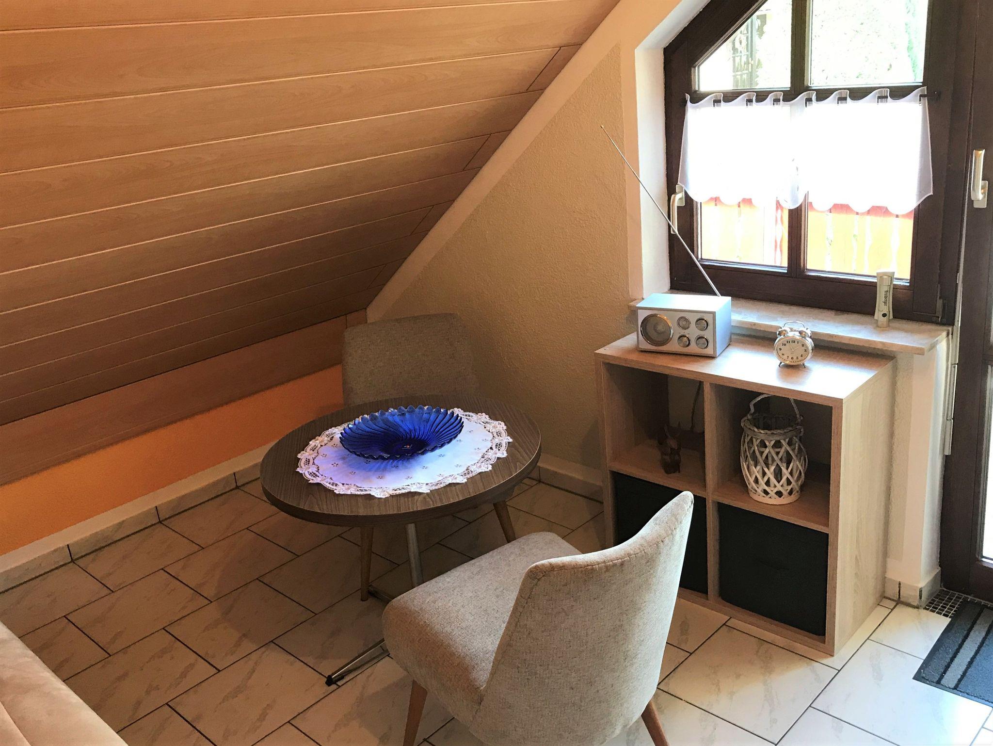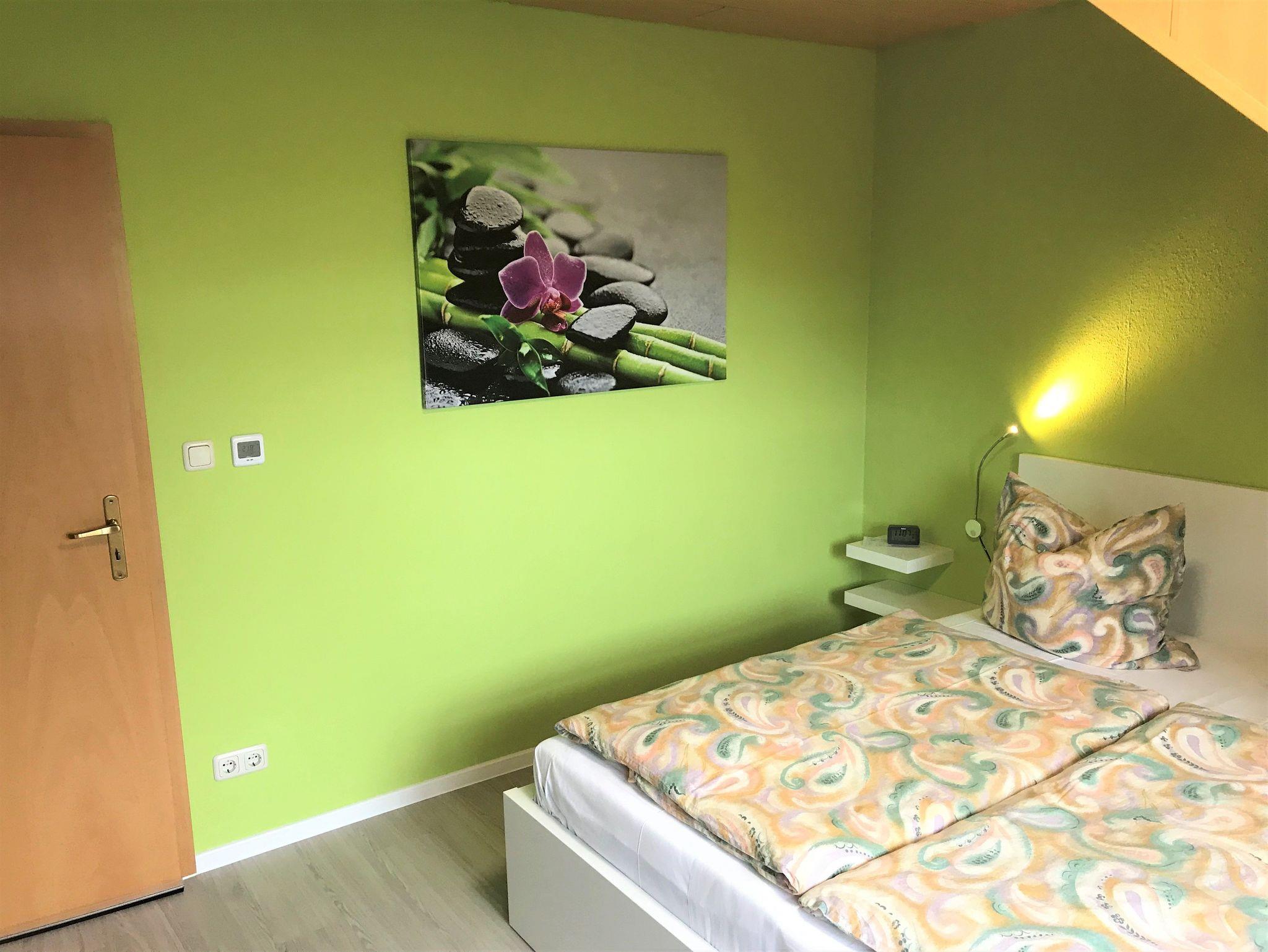 Die Ferienwohnung befindet sich im 1. OG bestehend aus Wohnzimmer mit Essbereich und offener Küche und einer Schlafcouch (ca. 2,00 m x 1,40 m), Schlafzimmer mit Doppelbett (ca. 2,00 m x 1,80 m), Relaxzimmer mit Klappcouch (ca. 1,90 m x 1,05 m), Bad mit geräumiger Dusche, Flur und 2 Balkonen.