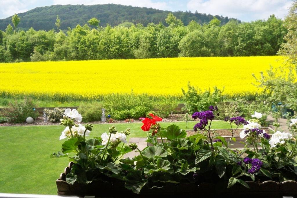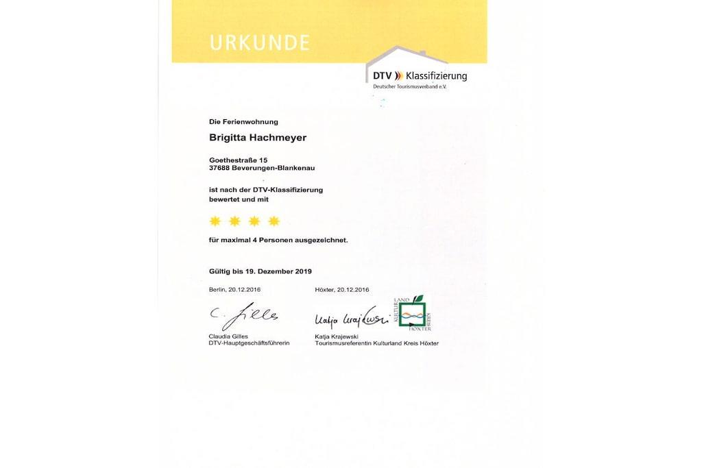 Die mit F*** vom DTV zertifizierte, 110 qm große Ferienwohnung in Beverungen-Blankenau bietet Ihnen Platz für 4 Personen mit 2 separaten Schlafzimmern und einem großen Wohnzimmer. Gegessen wird im separaten Esszimmer. Die Küche, in einem separaten Raum hat Vollausstattung, Geschirrspüler, Mikrowelle, Backofen, Kaffeemaschine. Kinderreisebett und Hochstuhl gehören zur Ausstattung. Waschmaschine und Trockner stehen gegen Gebühr zur Verfügung. Der große Balkon liegt zum Westen, ist überdacht und hat Blick über die Felder zum Wald. Die Ferienwohnung ist ca. 5 - 10 Fußmin., 500 m von der Weser bzw. dem Wald entfernt und steht auf einem gepflegten ca. 1.500 m² großen Grundstück.