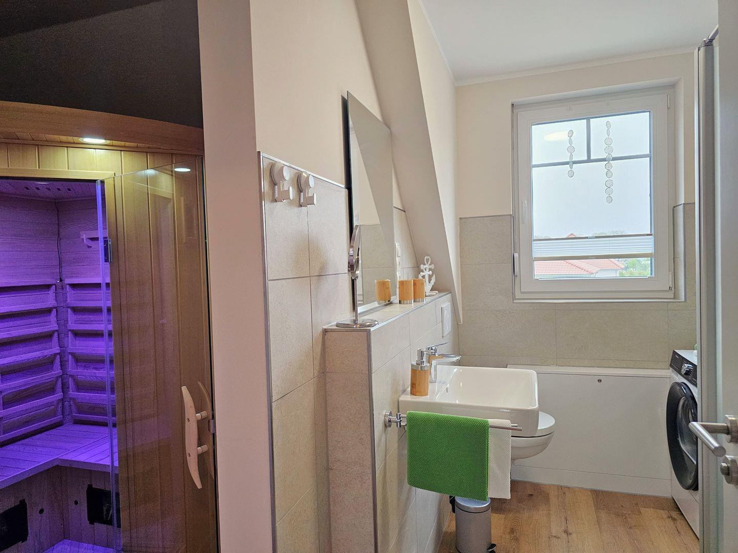 Das Ferienhaus Xena & Liv ist komplett rauchfrei und bietet eine kinderfreundliche Atmosphäre. Besonderer Wert wurde auf die Ausstattung gelegt, um einen komfortablen Aufenthalt zu garantieren. Ausgestattet mit Fußbodenheizung und einem modernen Badezimmer mit bodengleicher Dusche, schafft es eine gemütliche und einladende Atmosphäre. Praktische Annehmlichkeiten wie eine Waschmaschine und ein Trockner sind ebenfalls vorhanden, sodass Sie auch während Ihres Aufenthalts für frische Wäsche sorgen können. Ein besonderes Highlight ist die Infrarotkabine, die für wohltuhende Tiefenentspannung nach einem erlebnisreichen Tag sorgt. Natürlich sind Bettwäsche und Handtücher im Preis inklusive, sodass Ihr Urlaub sofort beginnen kann.