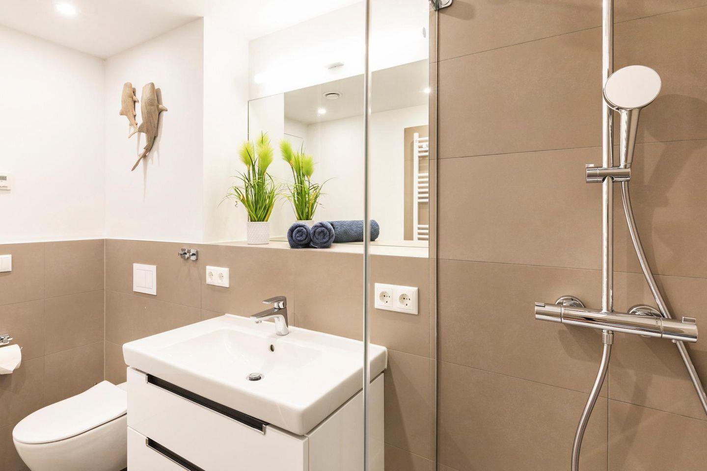 Modernes Meerblick-Apartment in Prora mit Balkon und E-Ladestation, nur 50 m vom Strand entfernt.