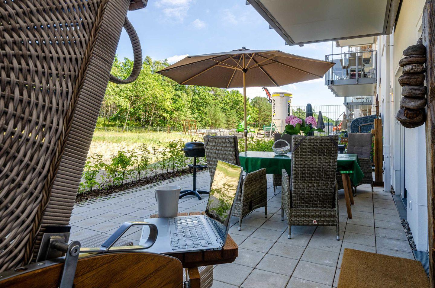 Exklusive Ferienwohnung Dünenterrasse mit großer Terrasse und direktem Strandzugang in Prora bei Binz.