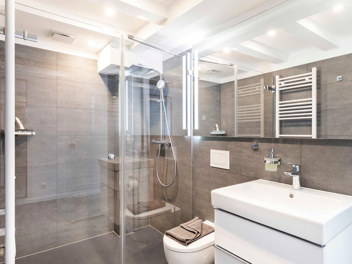 - Badezimmer 1: Regendusche, WC, Handtuchhalter, Haartrockner