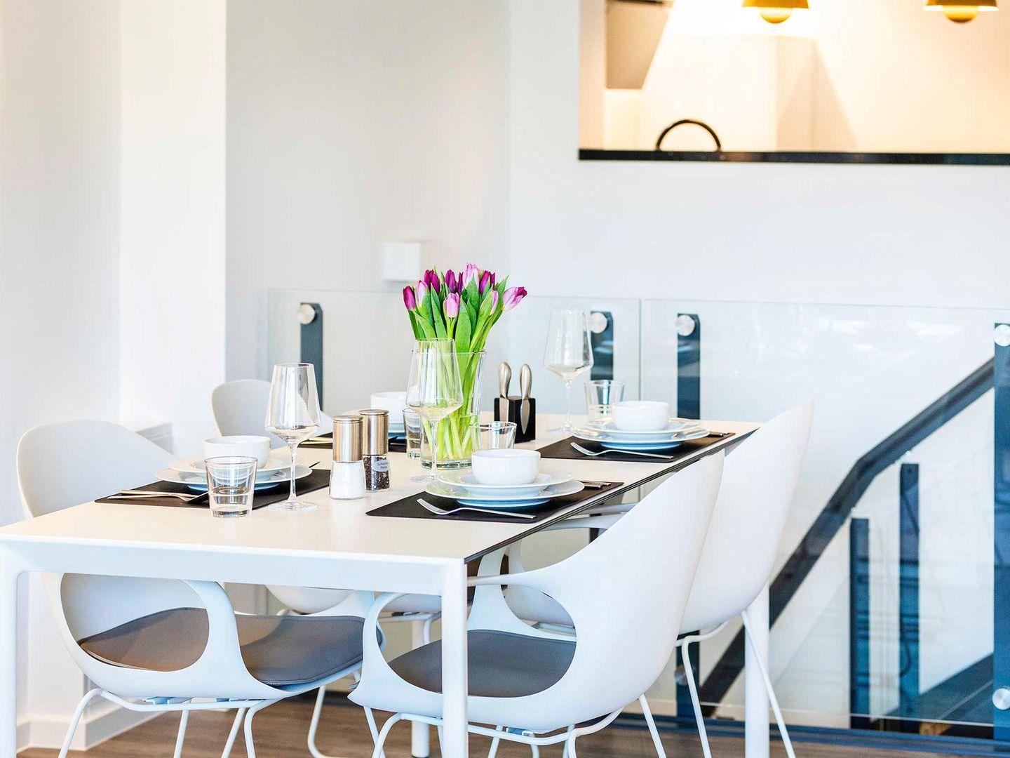 Moderne Maisonette-Ferienwohnung mit Meerblick, zwei Balkonen und direktem Strandzugang in Binz-Prora.