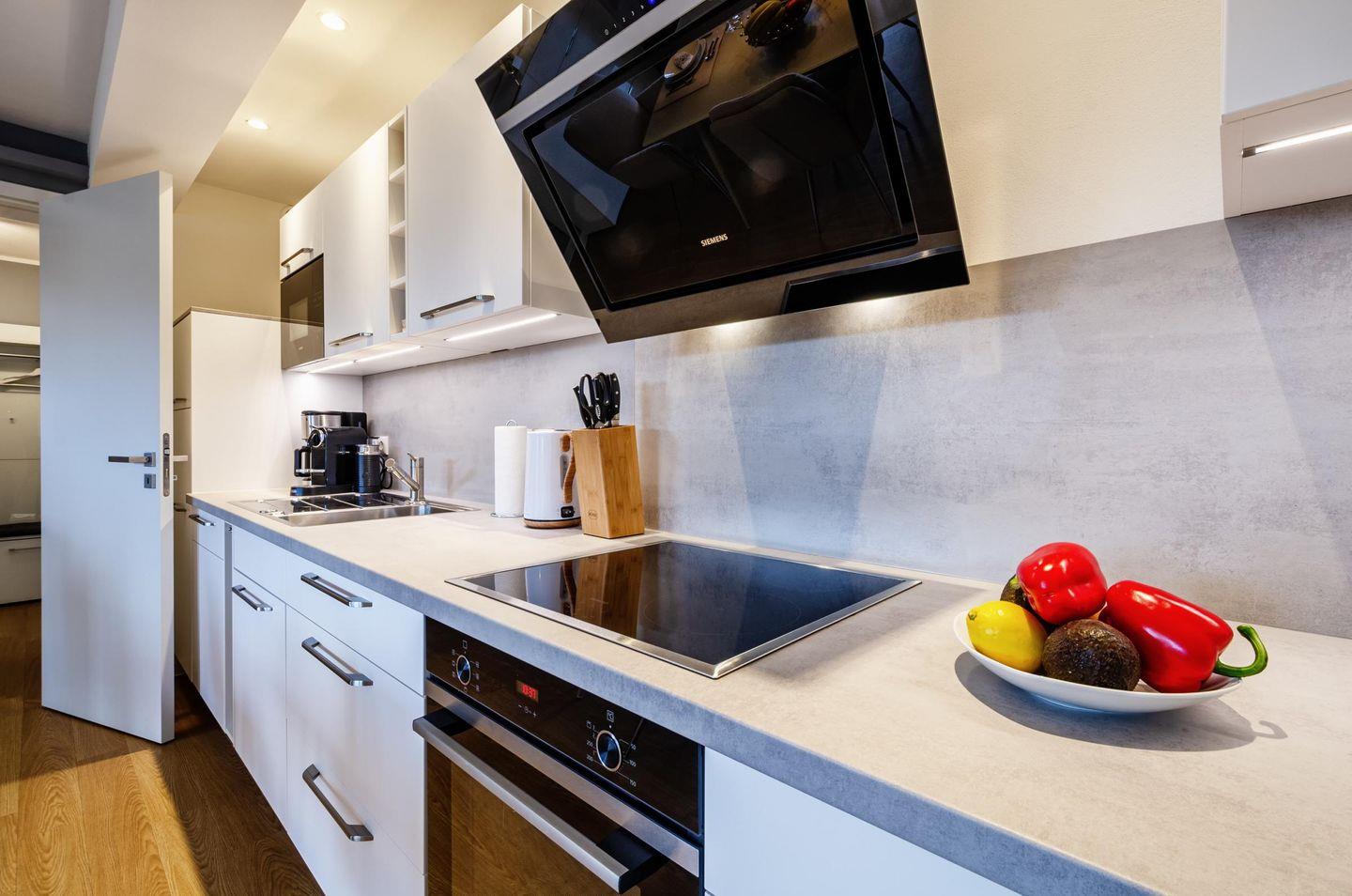 - Vollausgestattete Küche, Kaffeemaschine mit Filter und Nespresso-Kaffeemaschine, Heißluftfritteuse