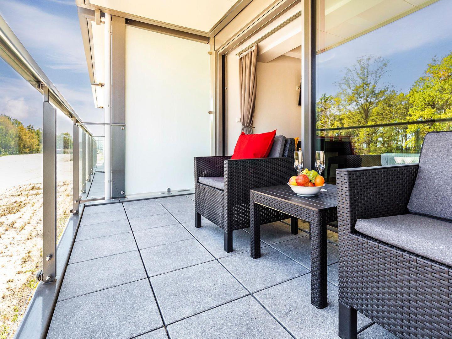 - Balkon mit Sitzmöglichkeit, Blick Richtung Meer