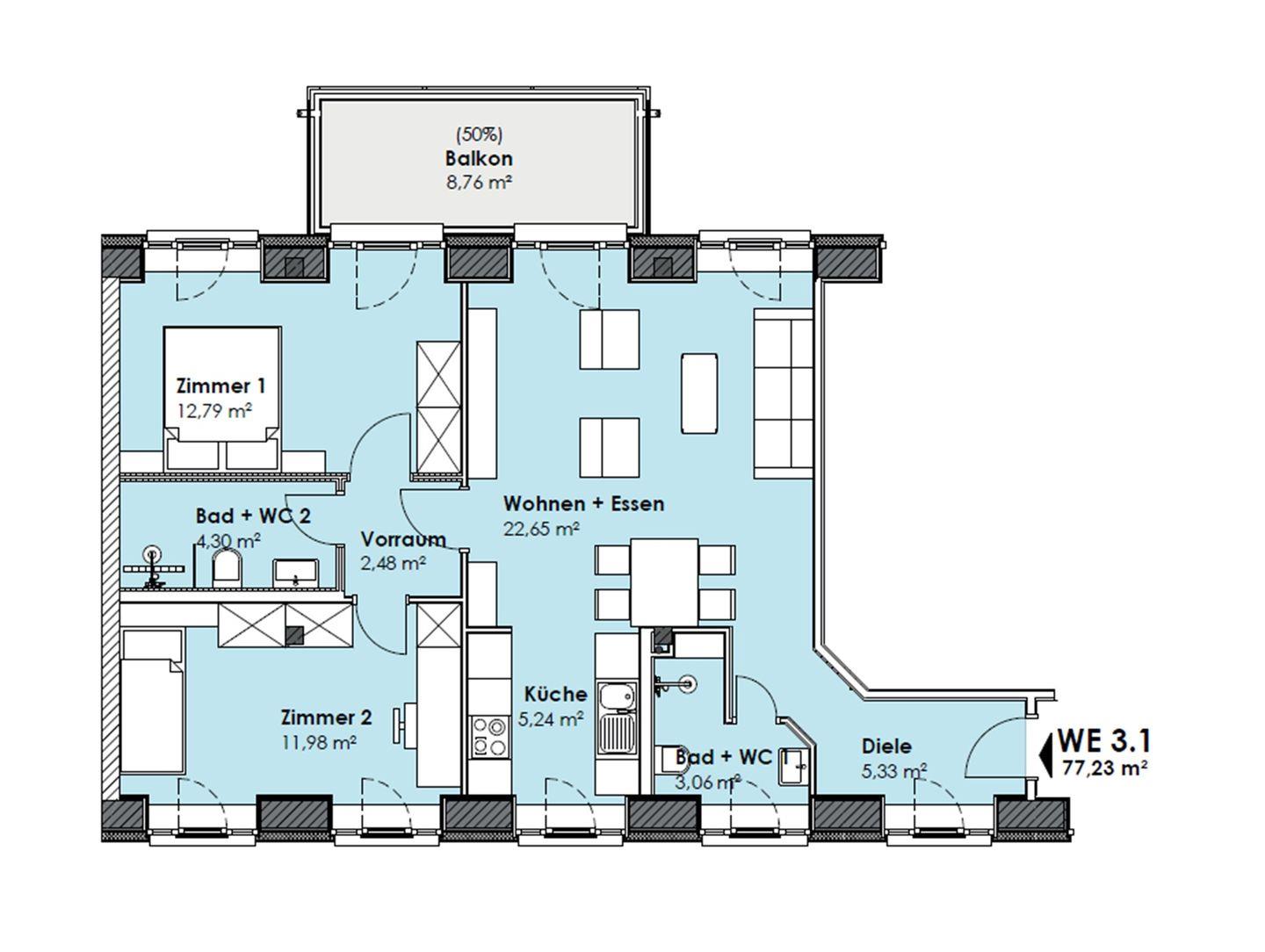 - Wohnfläche 77 m²