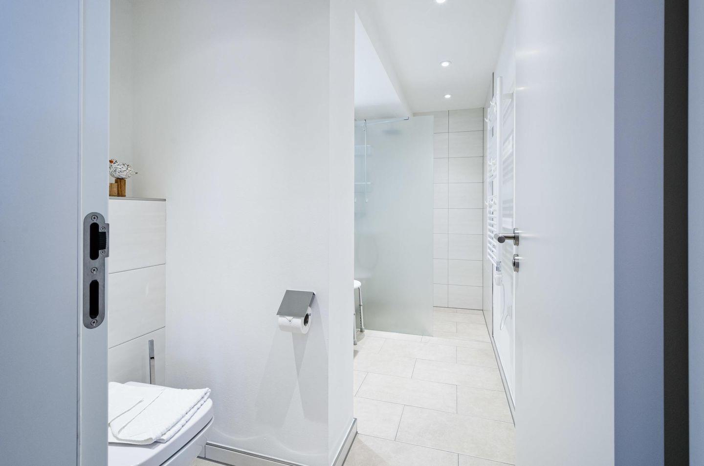 - Badezimmer: Regendusche, WC, Haartrockner