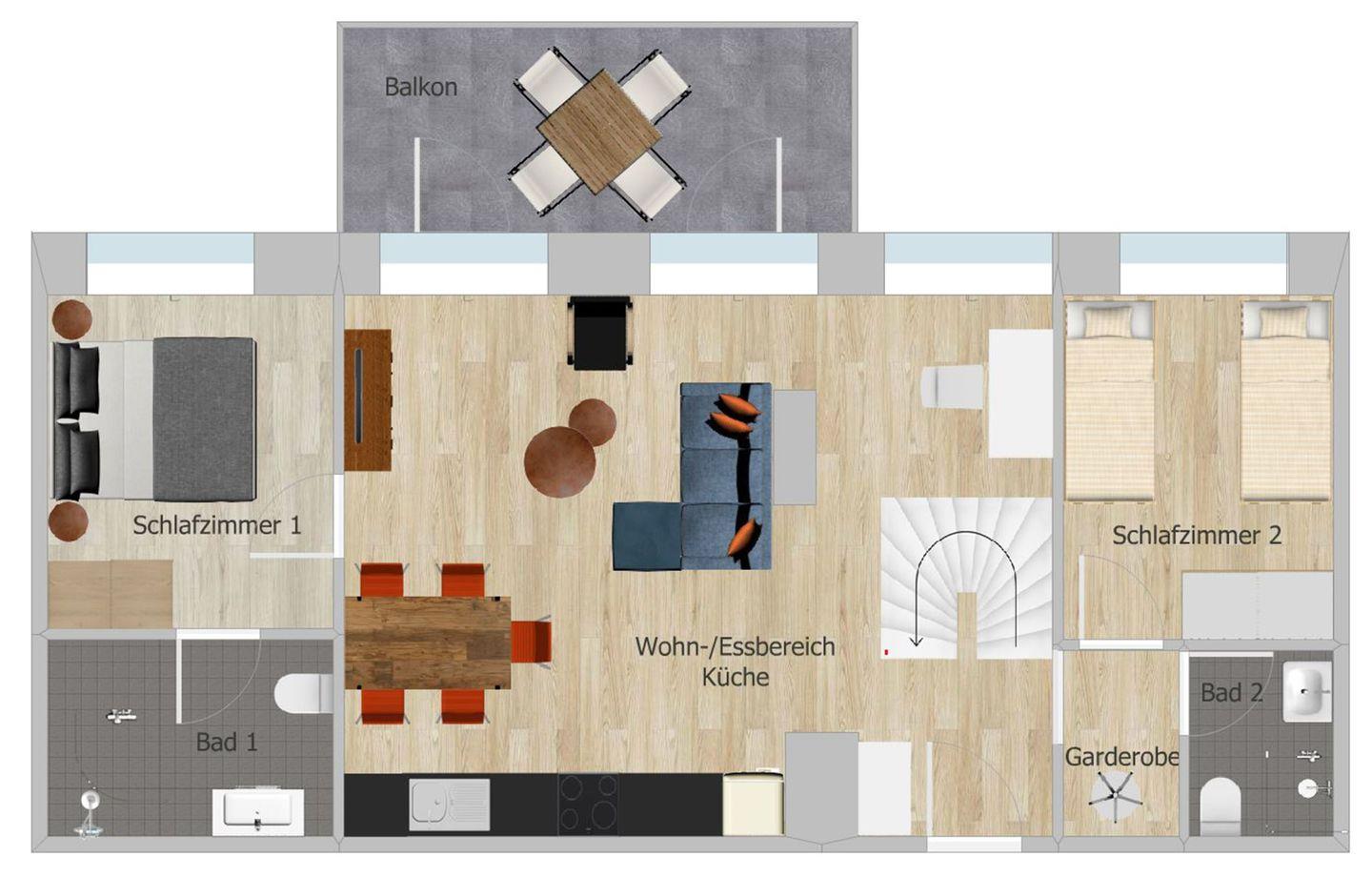 - Schlafzimmer 1: Doppelbett (160 x 200)