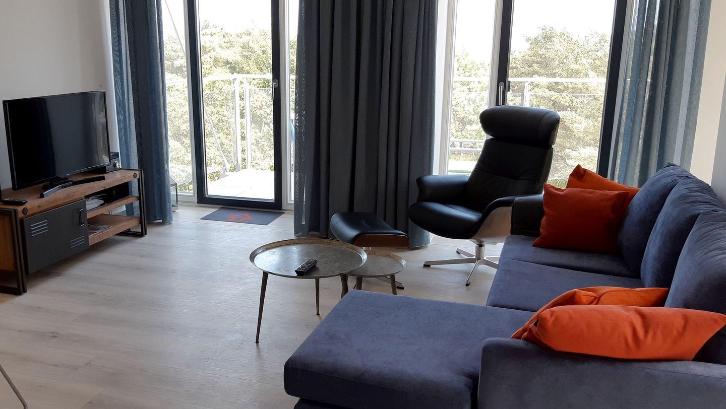 Neben einem großzügigen Wohnbereich mit Küche bietet die Wohnung zwei Schlafzimmer und zwei Duschbäder sowie einen Balkon und die Dachterrasse. Bekannt ist die Wohnung aus der Fernsehserie "Praxis mit Meerblick", wo sie einer der Drehorte war.