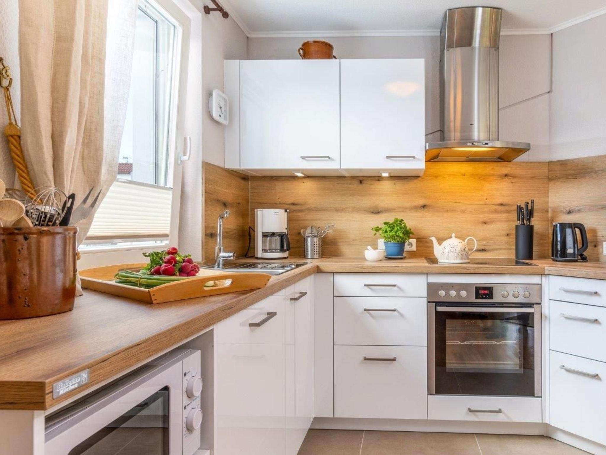 Küche mit Cerankochfeld, Mikrowelle und Geschirrspüler,
