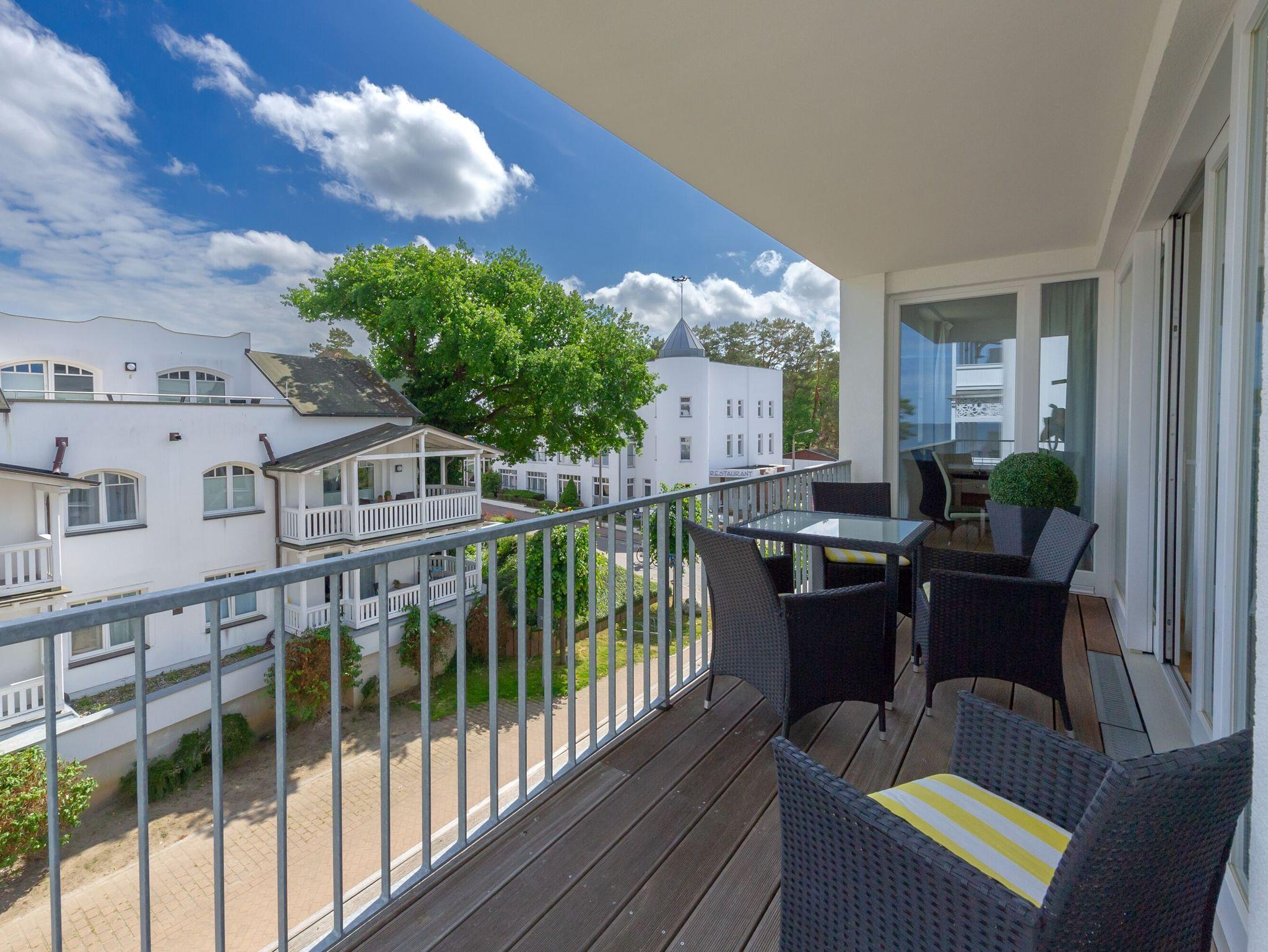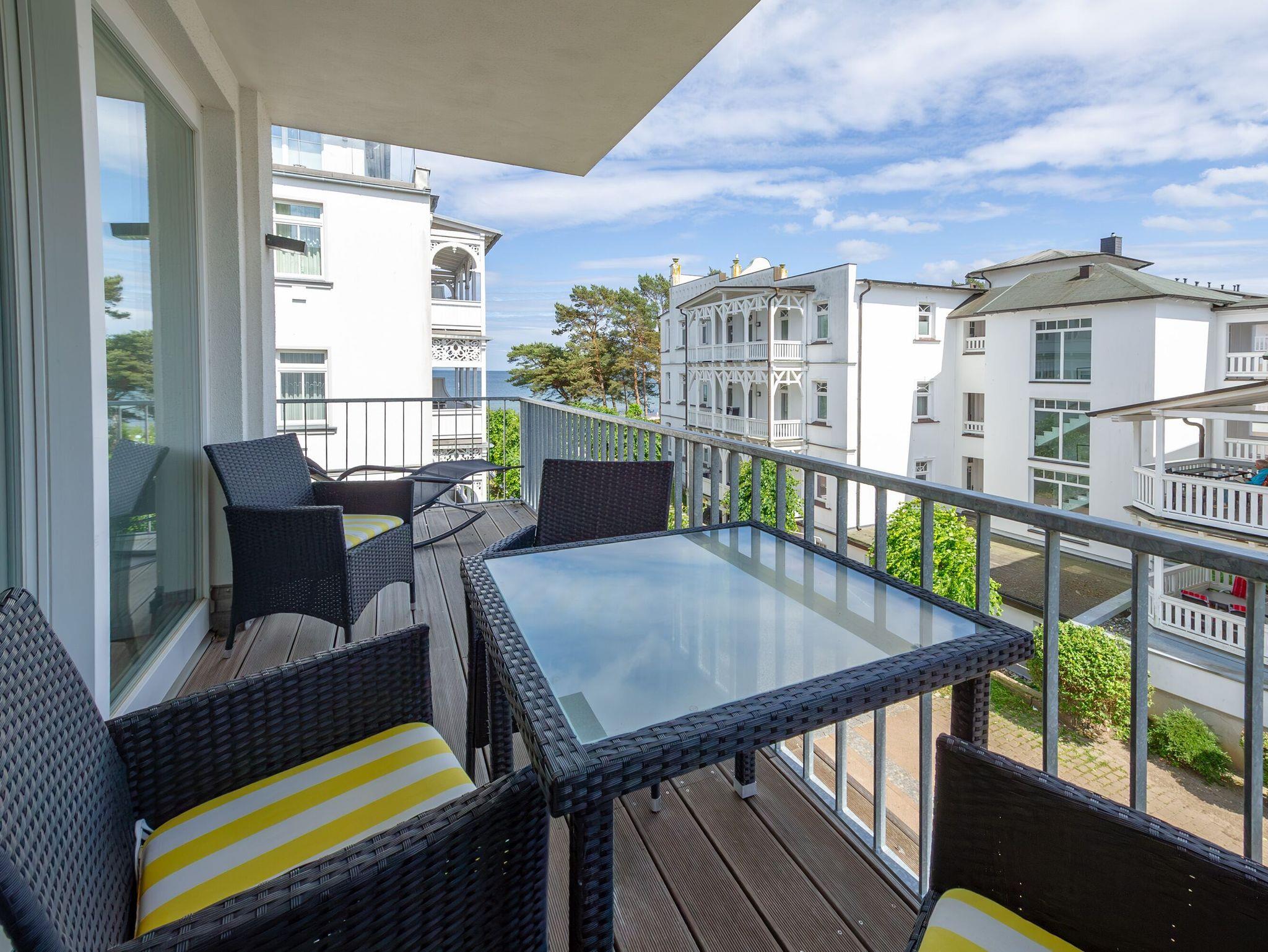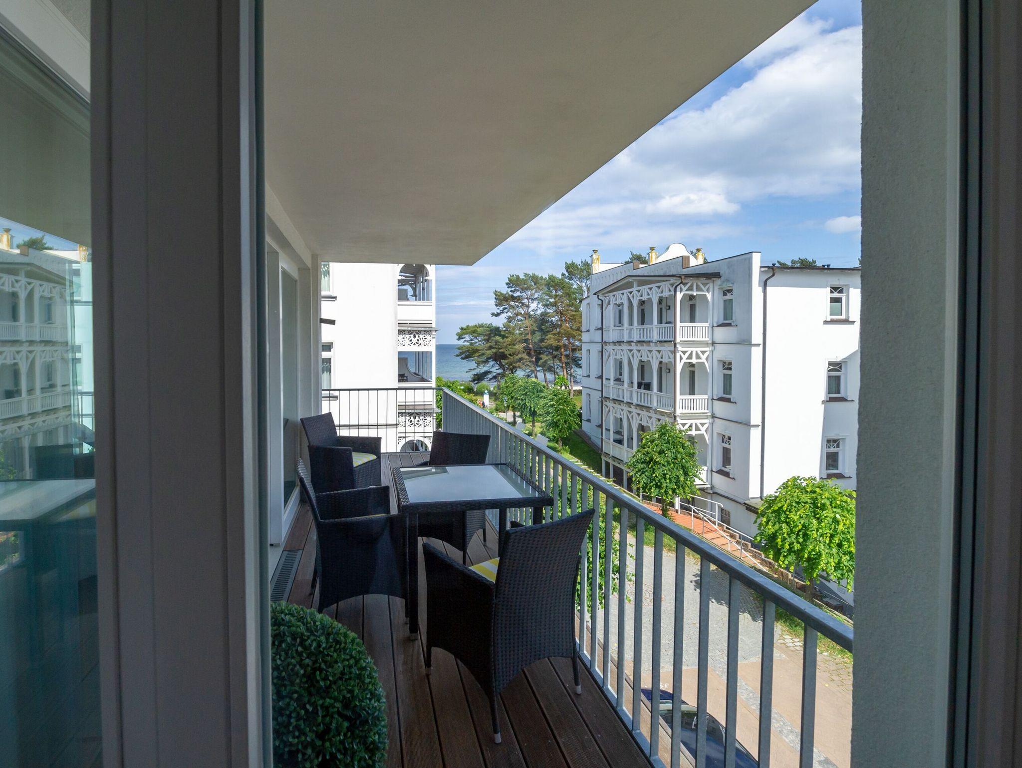 Modernes 3-Zimmer-Appartement mit Meerblick und Balkon in Binz, ideal zum Entspannen und Genießen der Ostsee.