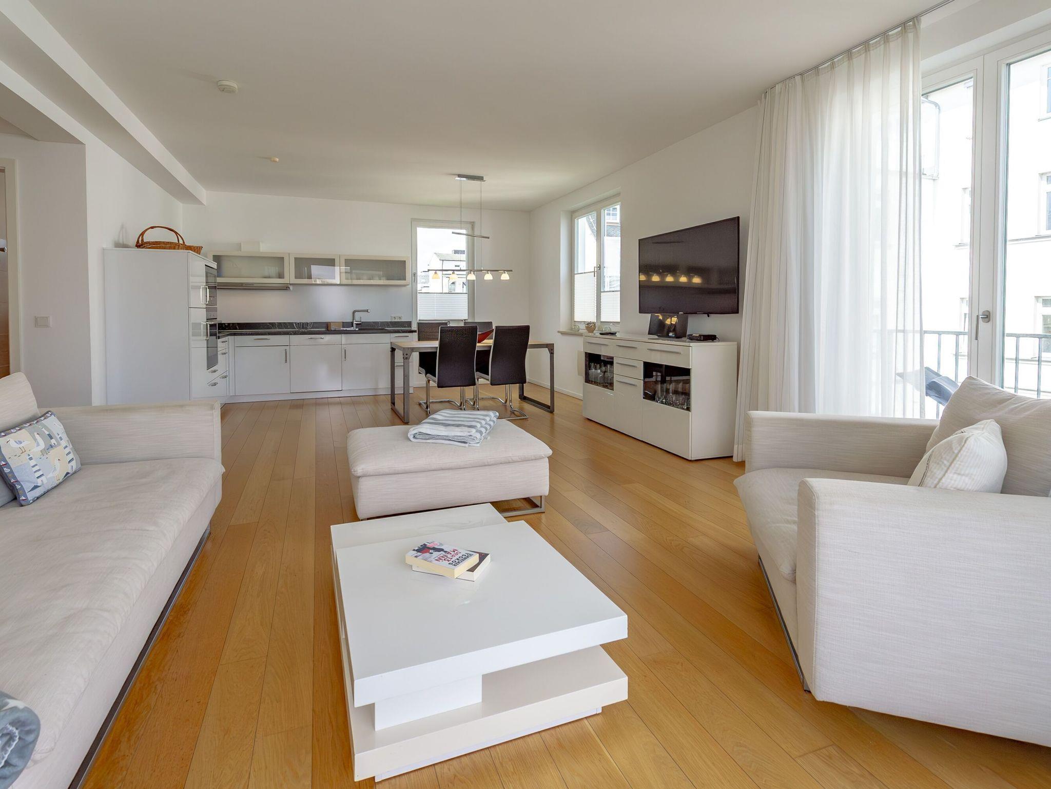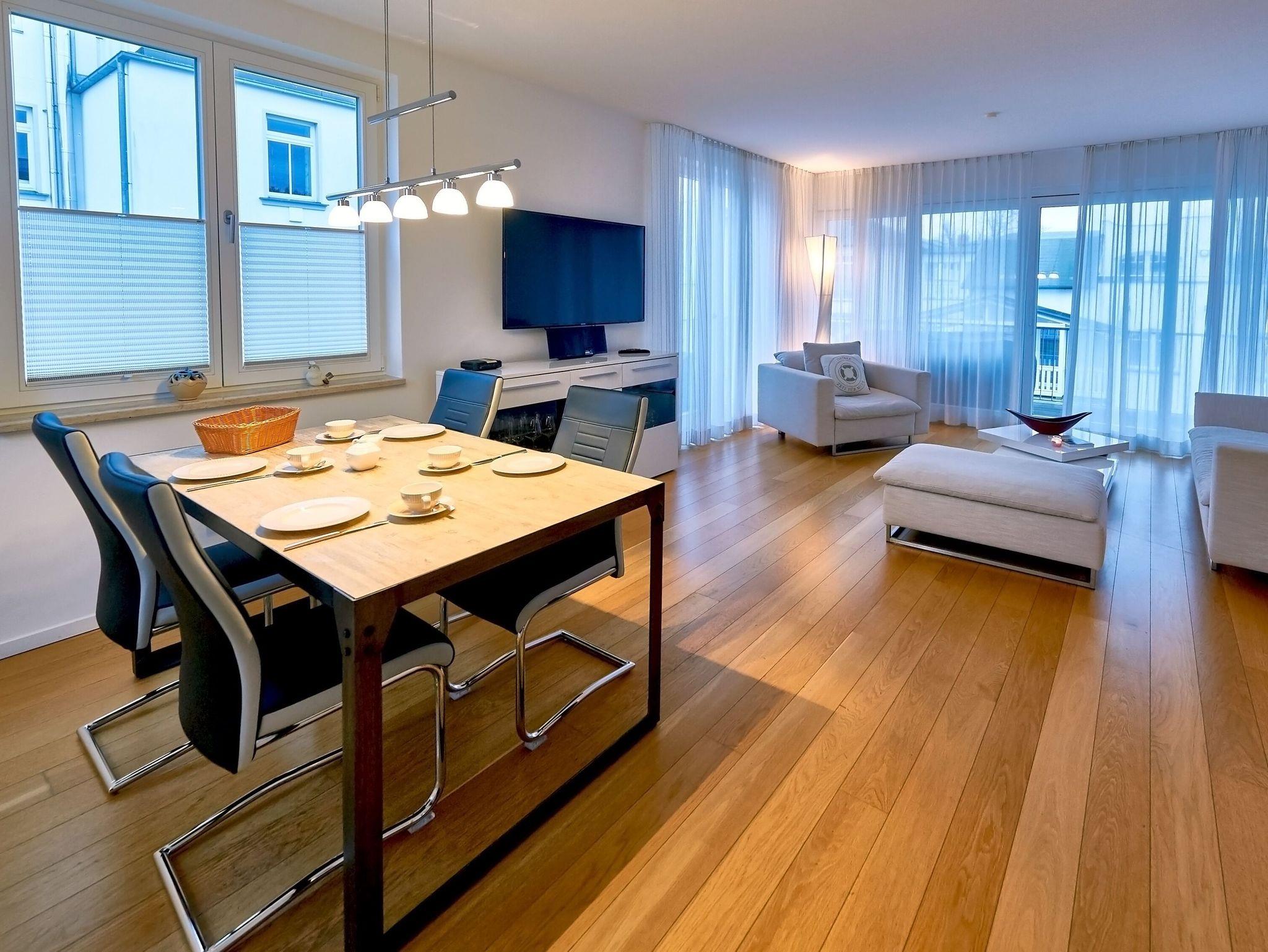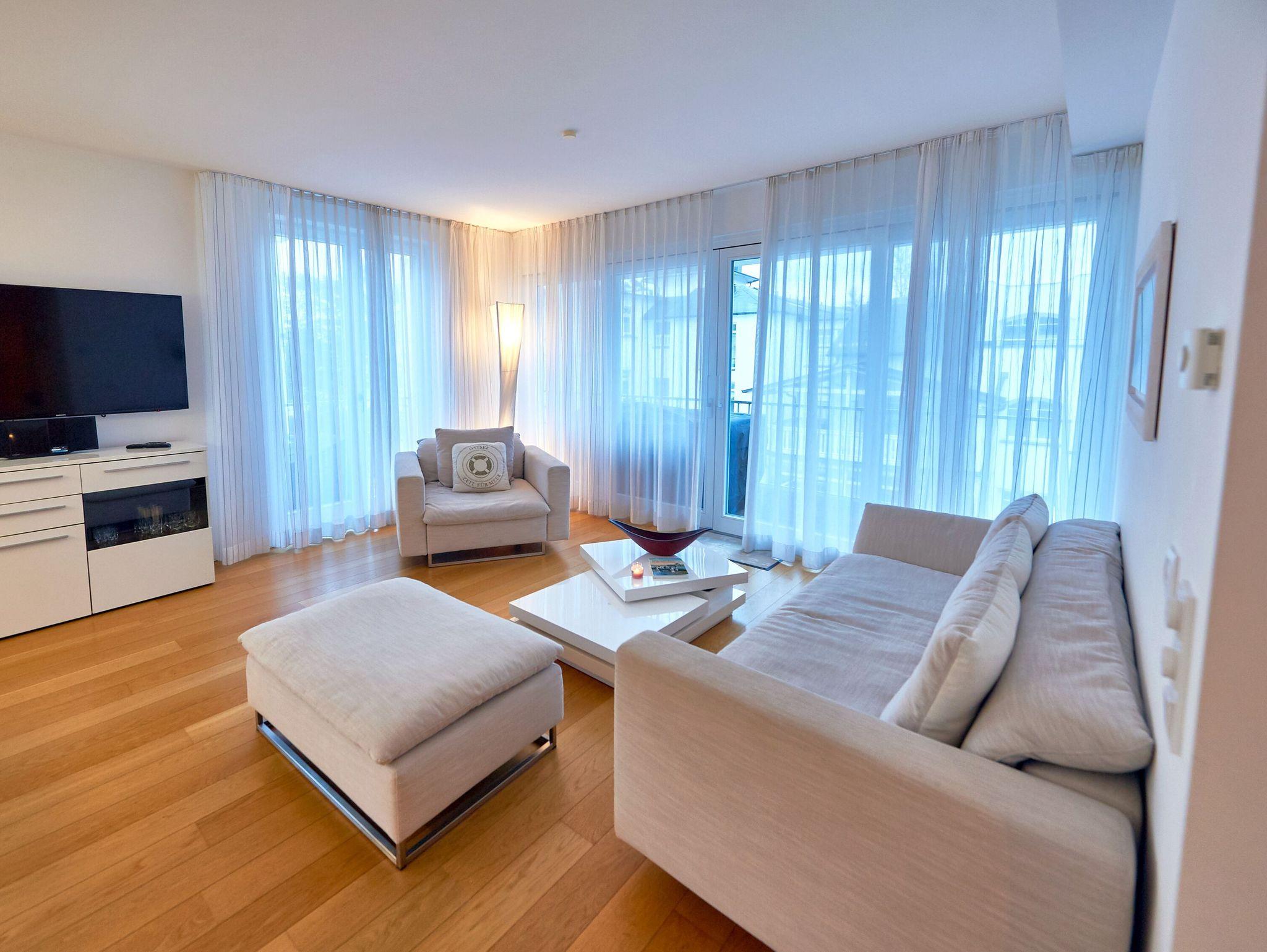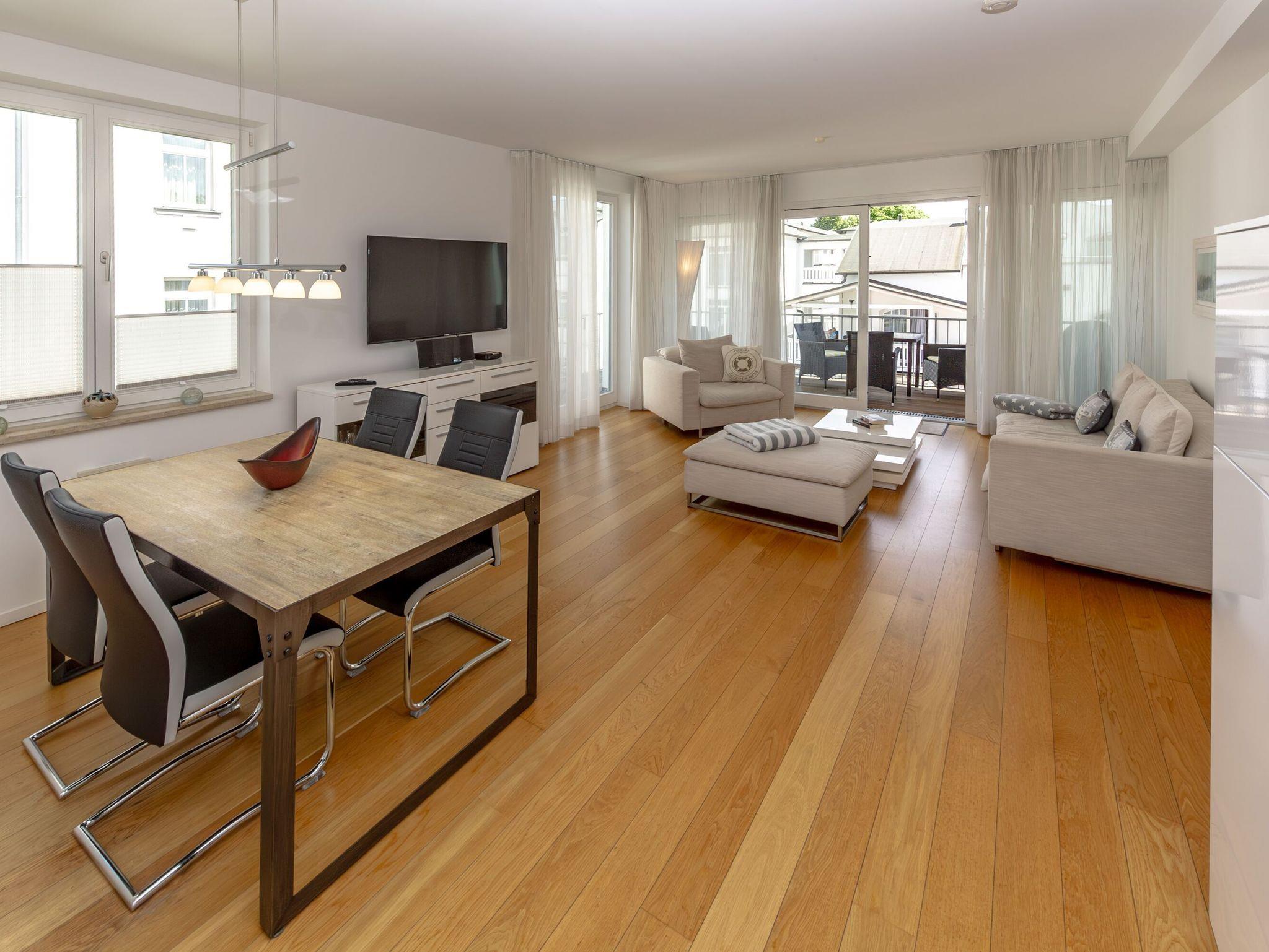 Modernes 3-Zimmer-Appartement mit Meerblick und Balkon in Binz, ideal zum Entspannen und Genießen der Ostsee.
