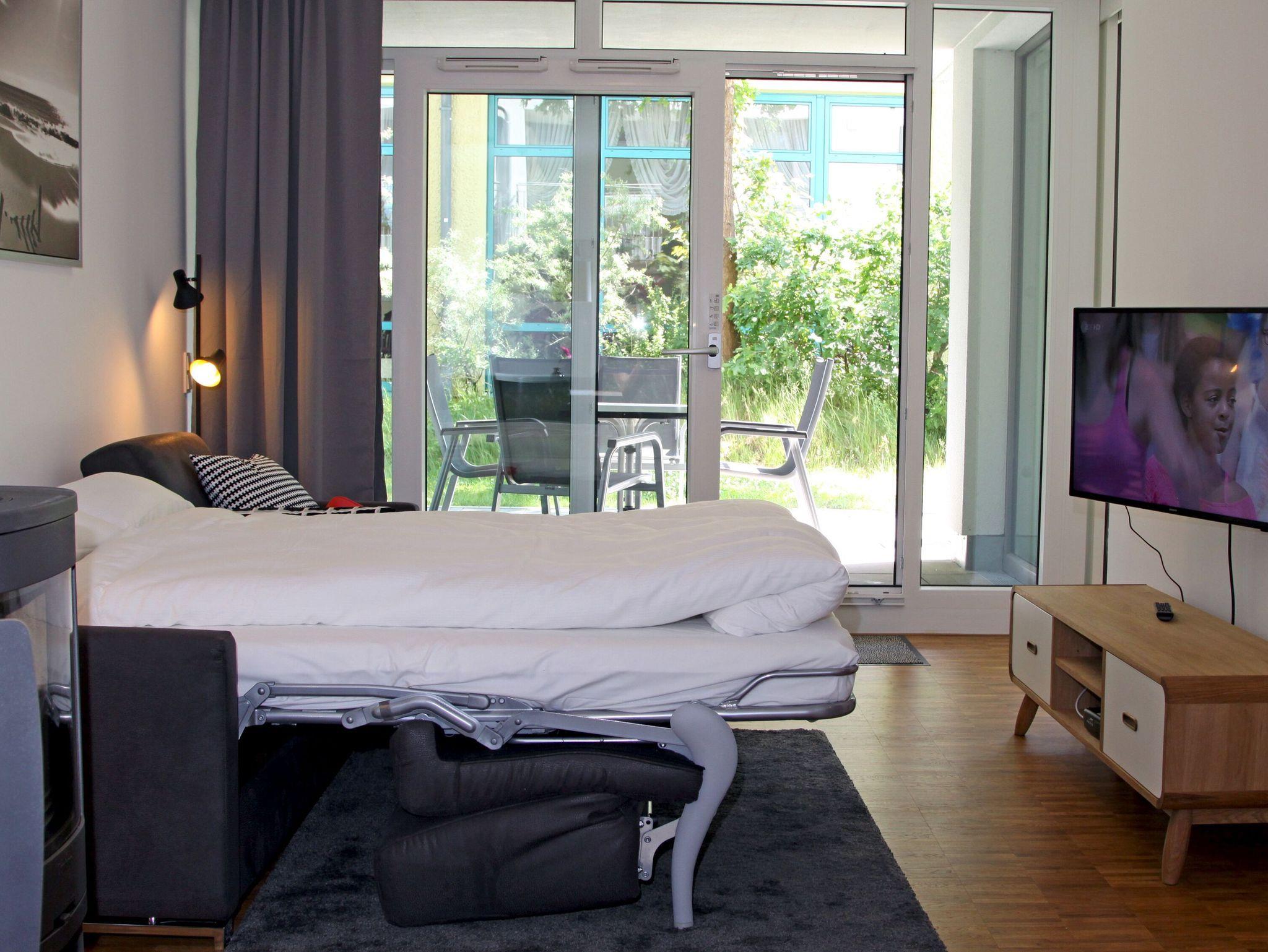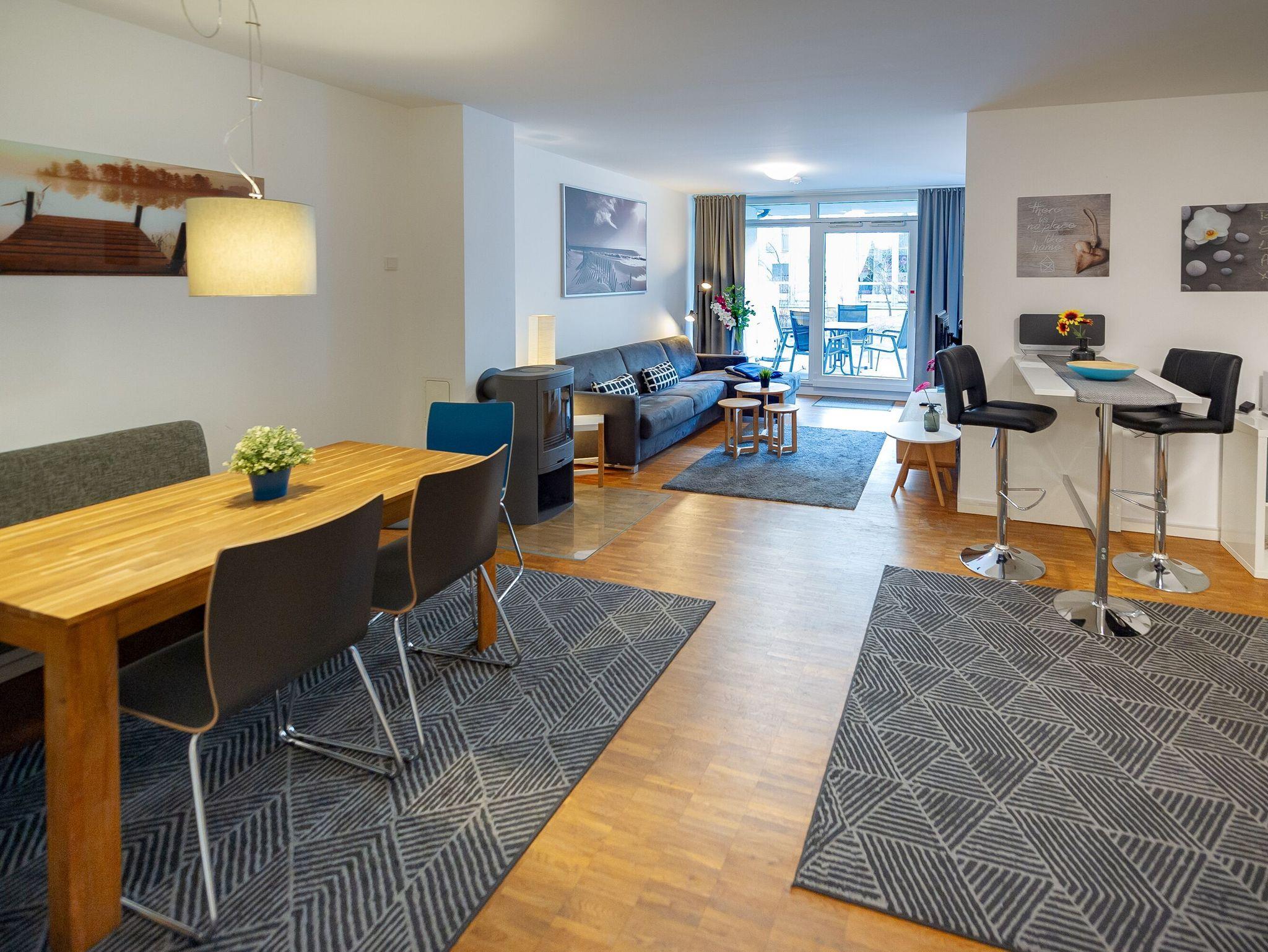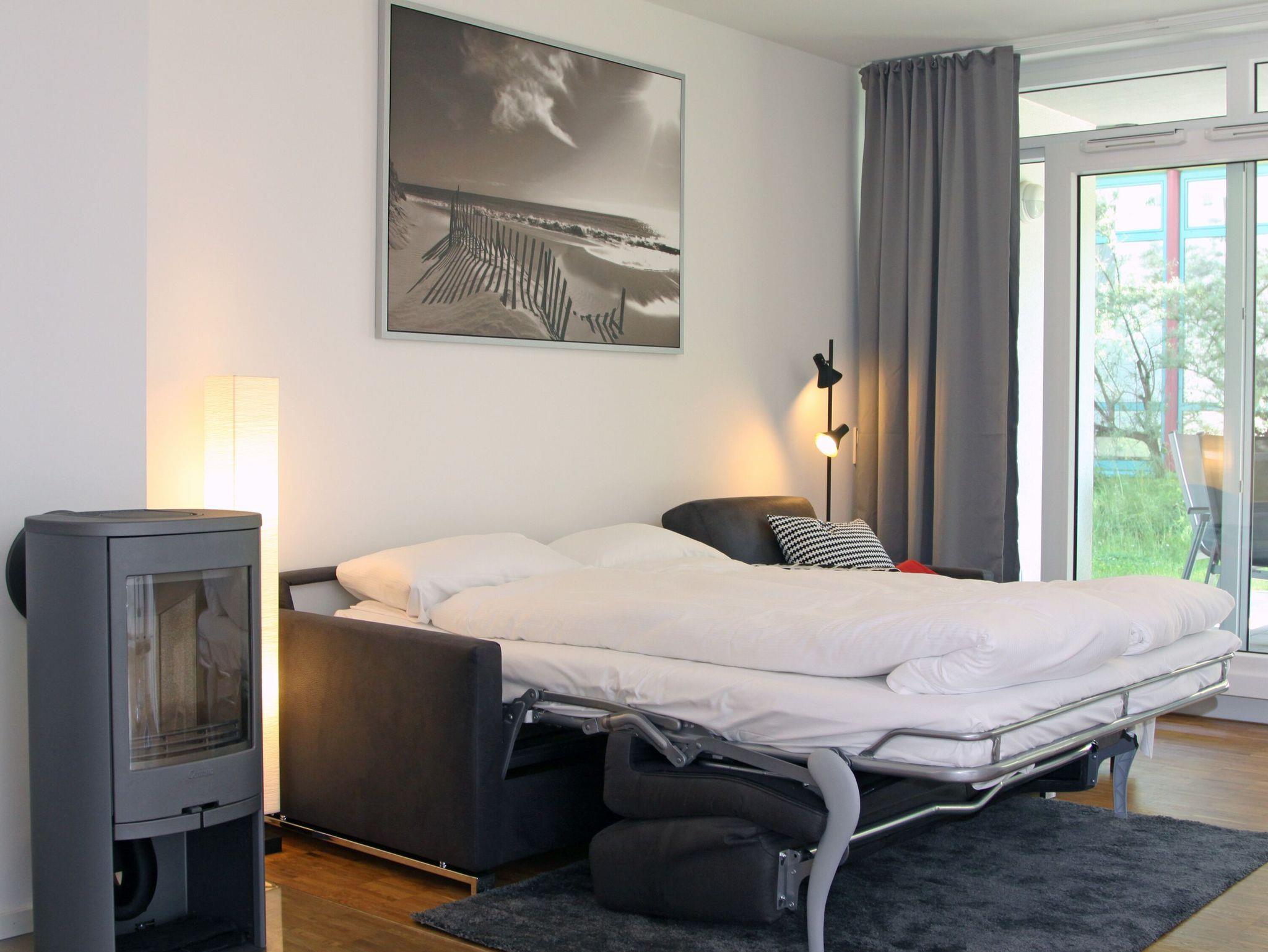 Komfortables 2-Raum-Appartement im DünenResort Binz mit Südterrasse, Kaminofen und strandnaher Lage.