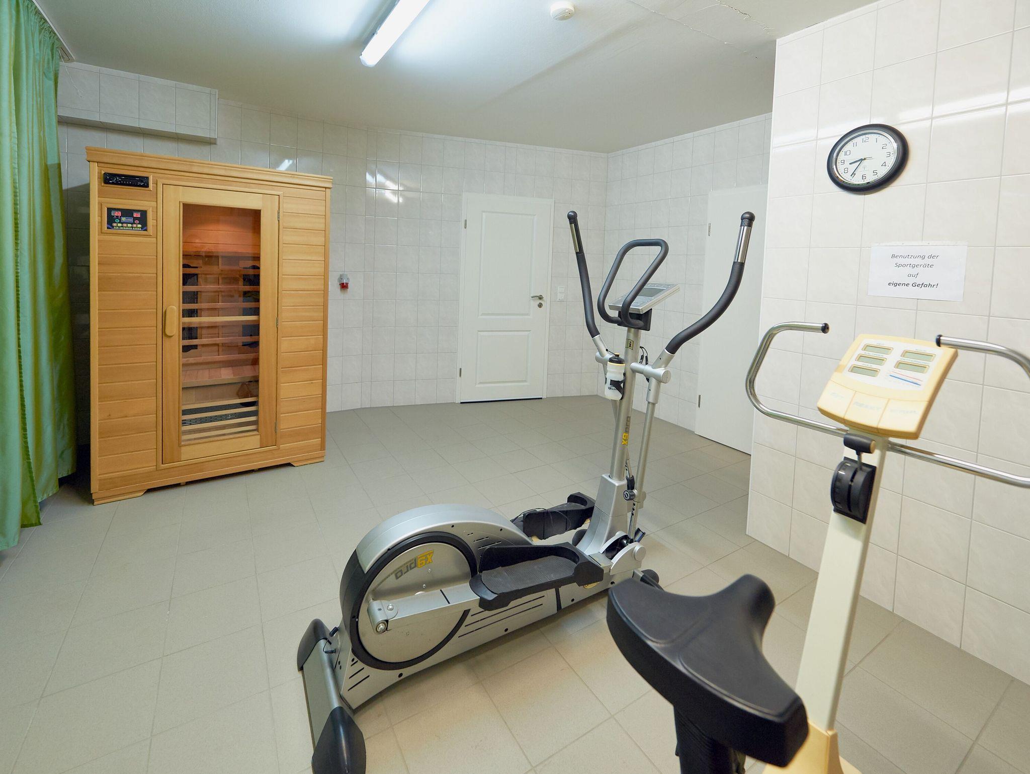 • Im Untergeschoss haben Sie die Möglichkeit, zwei Fitnessgeräte und die wohnungseigene IR-Sauna zu benutzen.