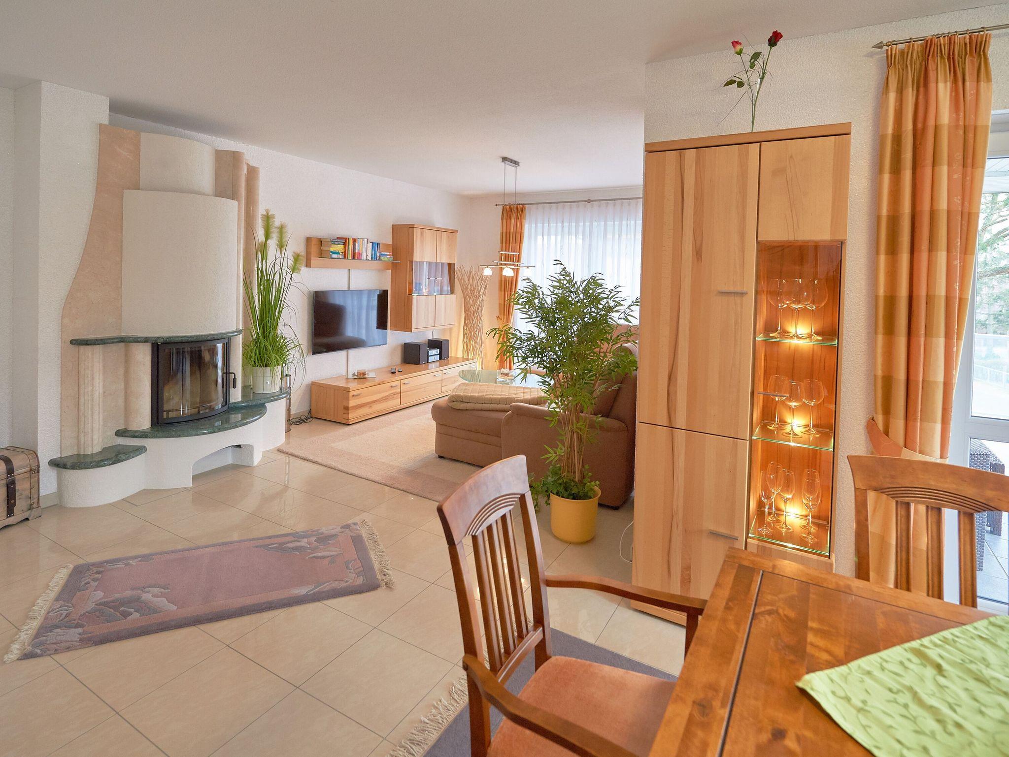 Gemütliches 3-Raum-Appartement in Binz mit Kamin, moderner Küche und eigener IR-Sauna für entspannte Urlaubstage.