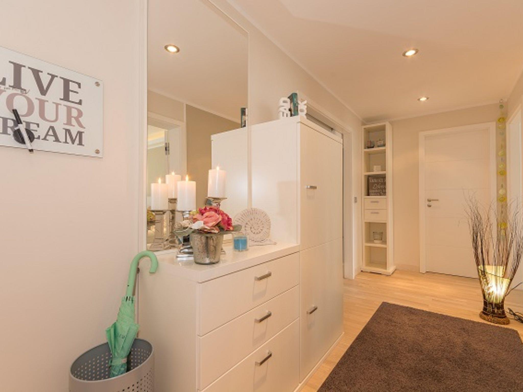 Für höchste Ansprüche, sowie selbstverständlich je einem TV-Gerät(40), welches per moderner Wandhalterung in jede Position gebracht werden kann. Zusätzlich kann man von einem Schlafzimmer einen kleinen gemütlichen Balkon betreten, um evtl. abends in Ruhe ein Glas Wein zu trinken oder am frühen Morgen die erste Tasse Kaffee zu genießen. Ein