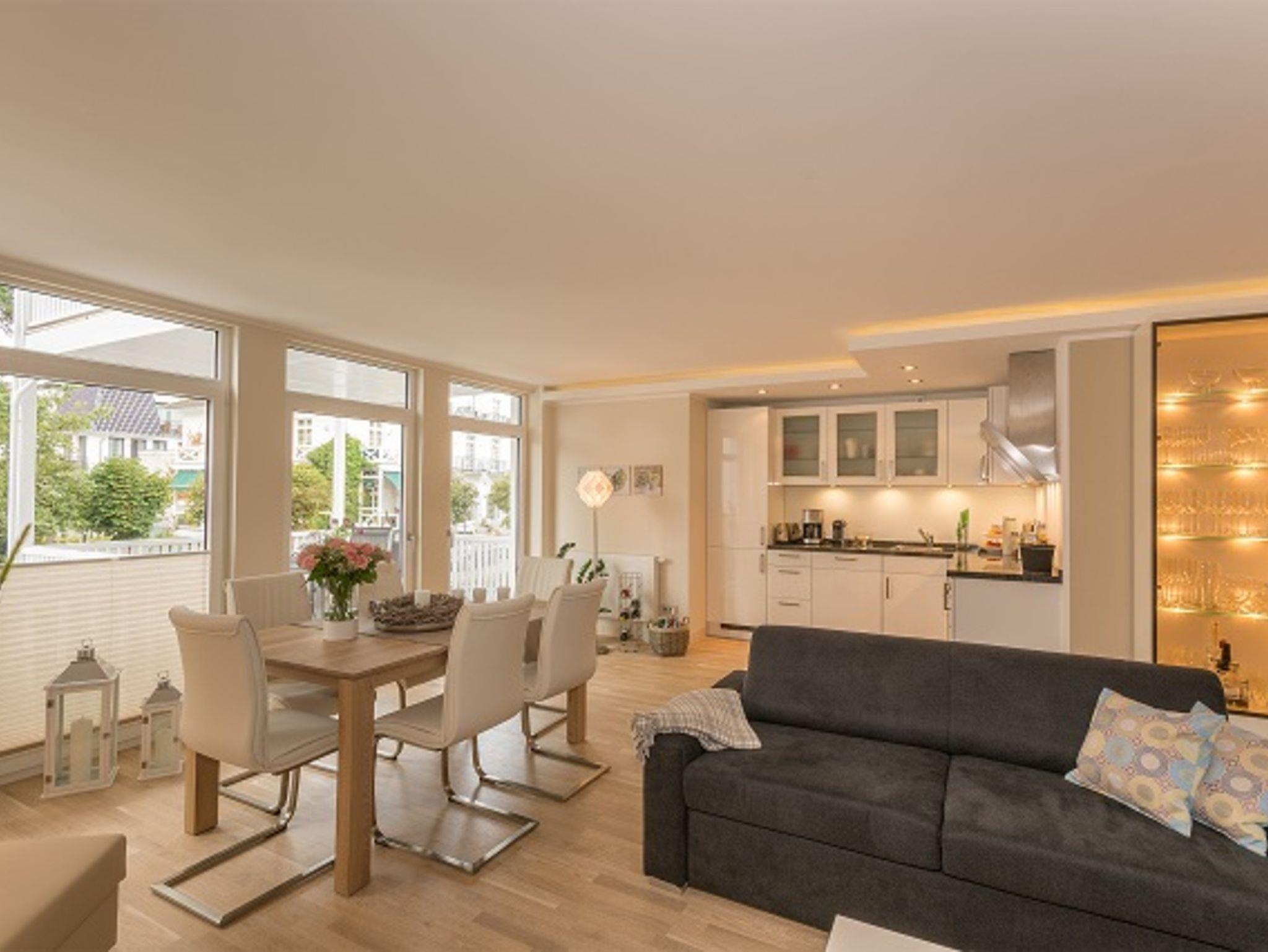 Moderne Ferienwohnung Seestern in Villa Allegra, Binz, mit Balkon, Sauna und WLAN, nur 450m vom Strand entfernt.