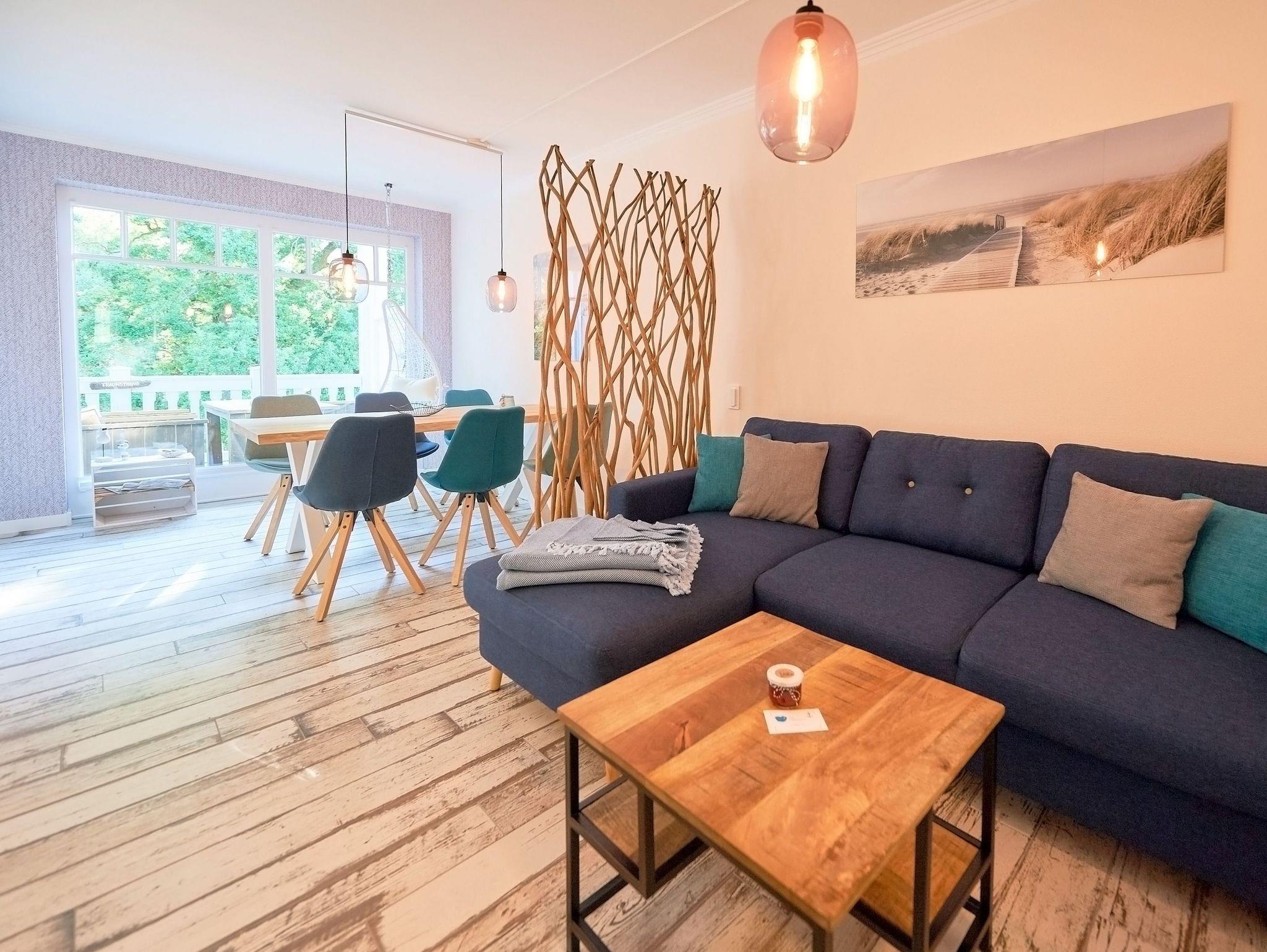 Charmantes 3-Zimmer-Appartement "Treibgut" im Dünenpark Binz, nur wenige Schritte vom Sandstrand entfernt.