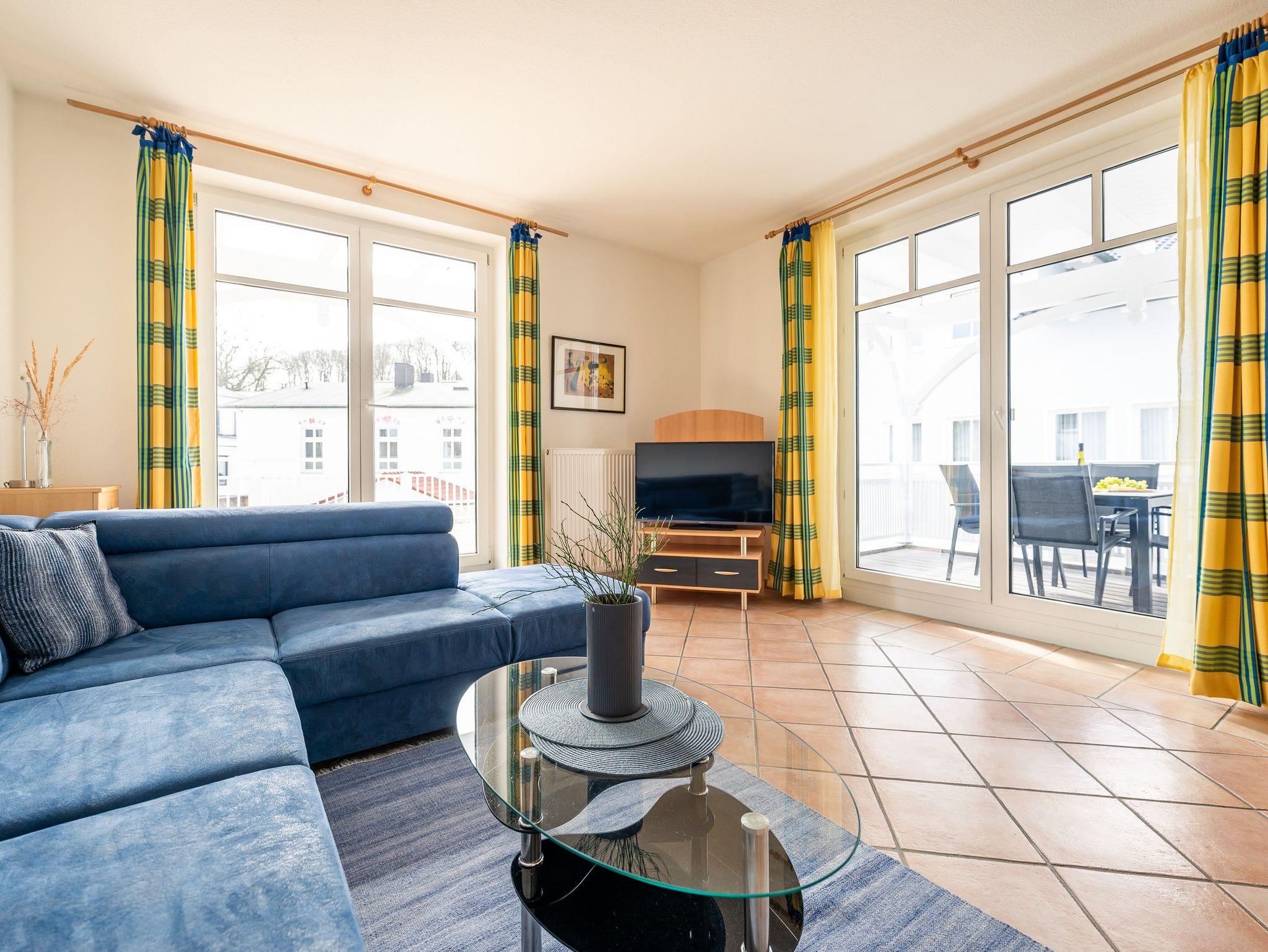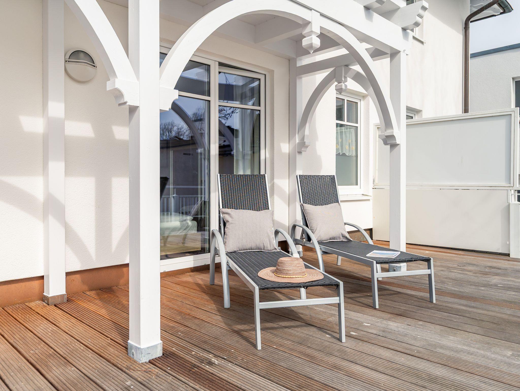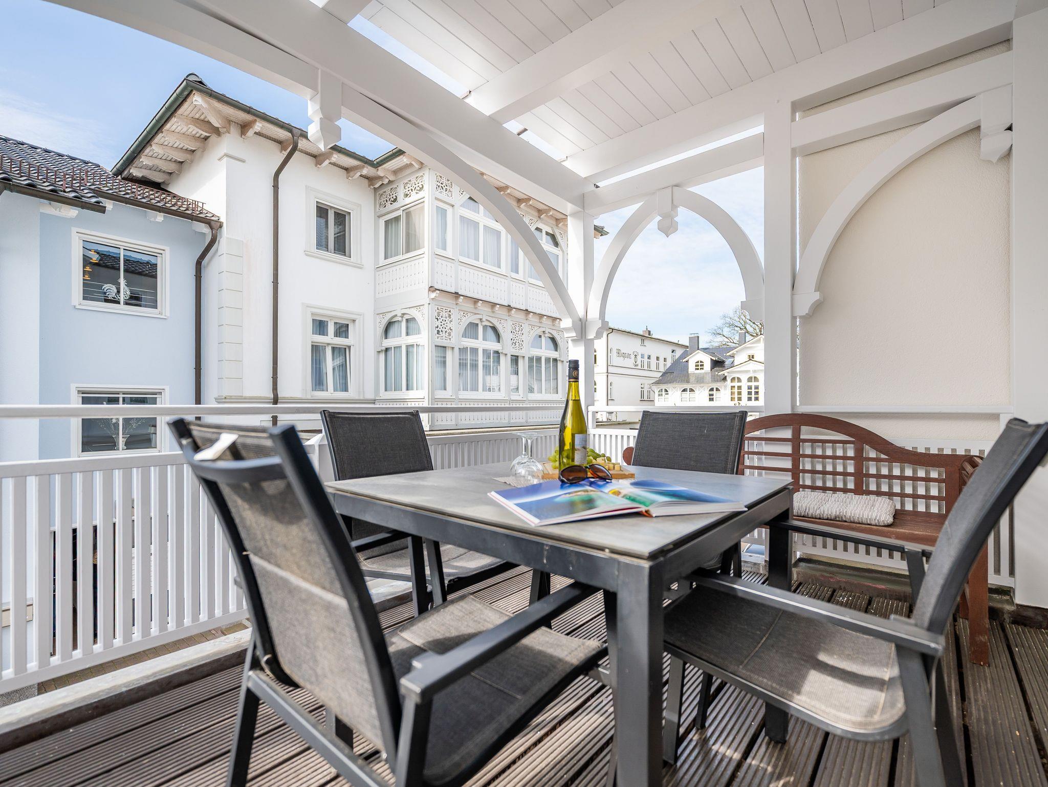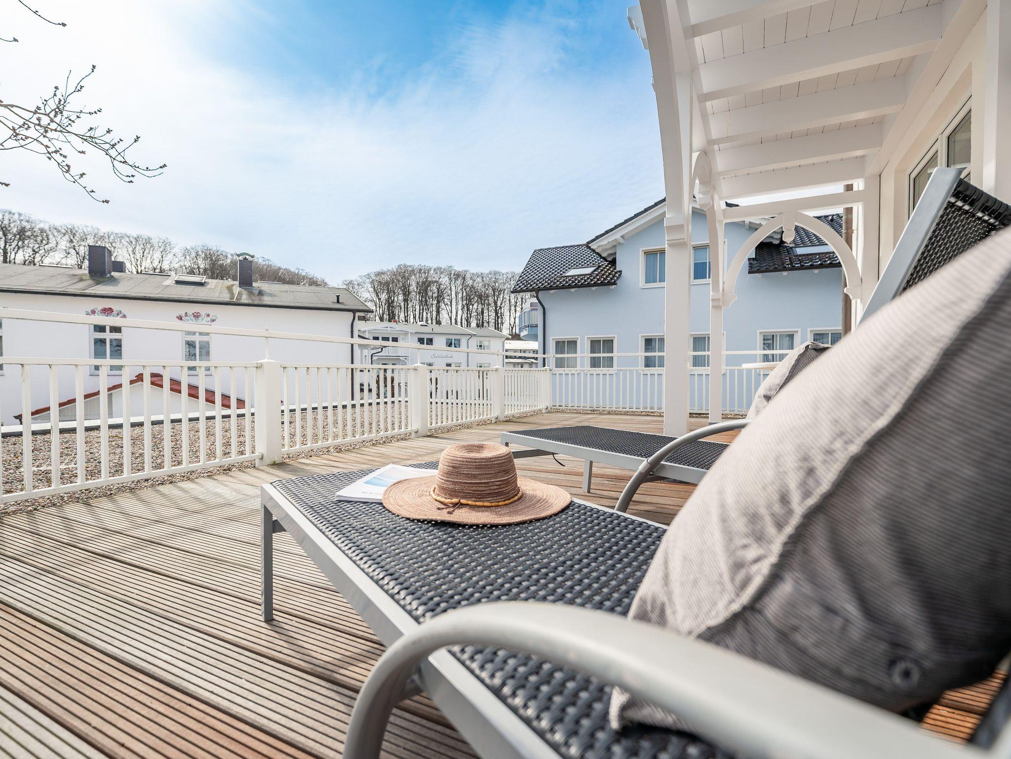 Exklusive Ferienwohnung mit Terrasse, Balkon und Meerblick im Zentrum von Binz, nur wenige Schritte vom Strand entfernt.